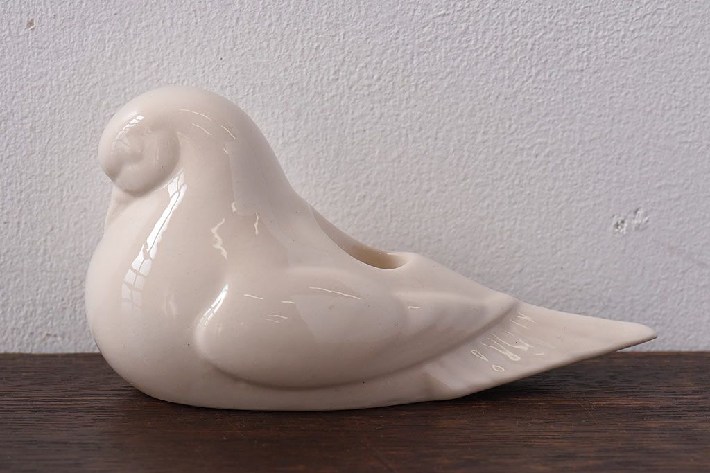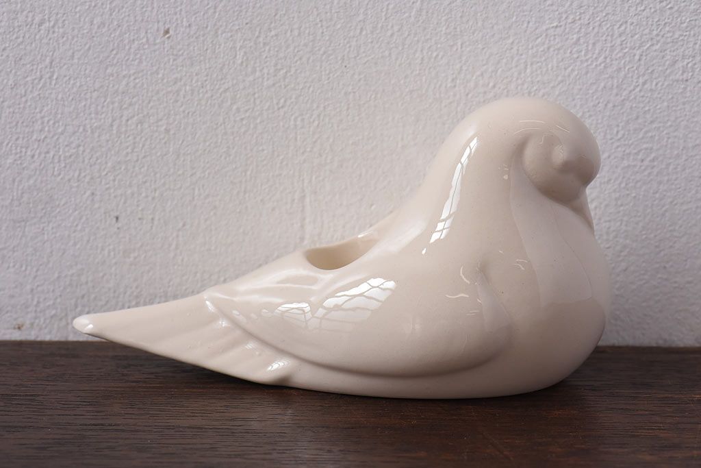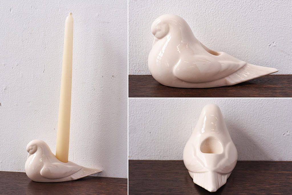 アンティーク雑貨 イギリス製 陶器製 鳥のモチーフのキャンドルスタンド(ろうそく立て)