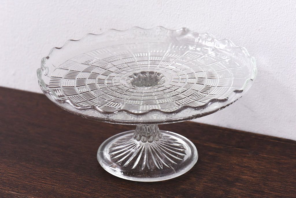 アンティーク雑貨 イギリスビンテージ チェックのような模様が魅力のケーキスタンド