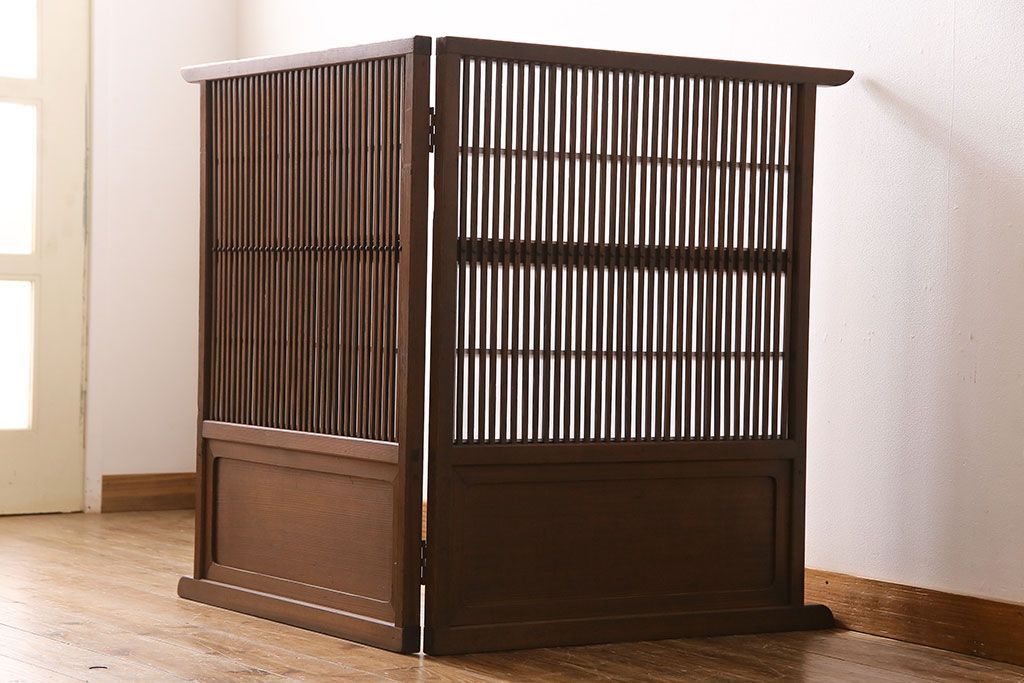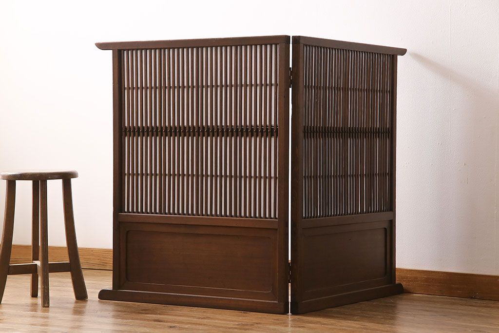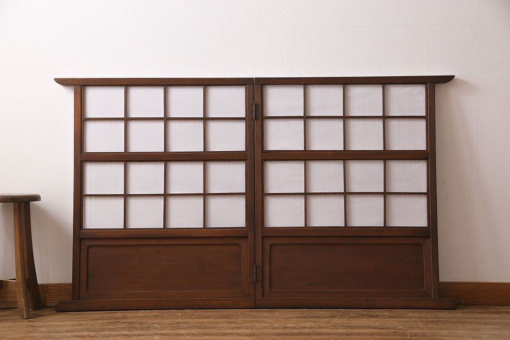ラフジュ工房> 衝立・パーテーション > 和製アンティーク 大正昭和初期 ヒノキ材 裏障子付き 上品な和のパーテーション(衝立て)