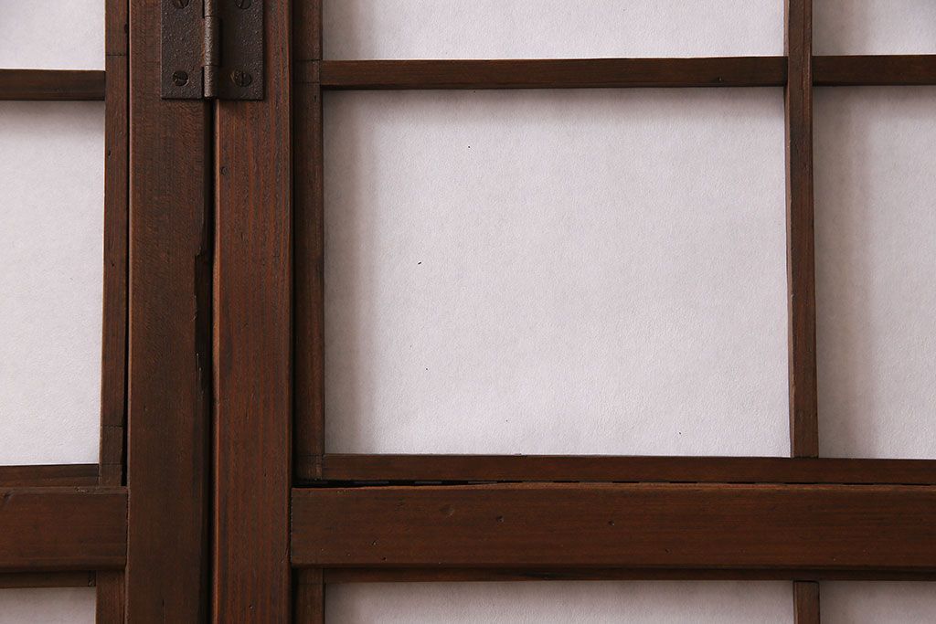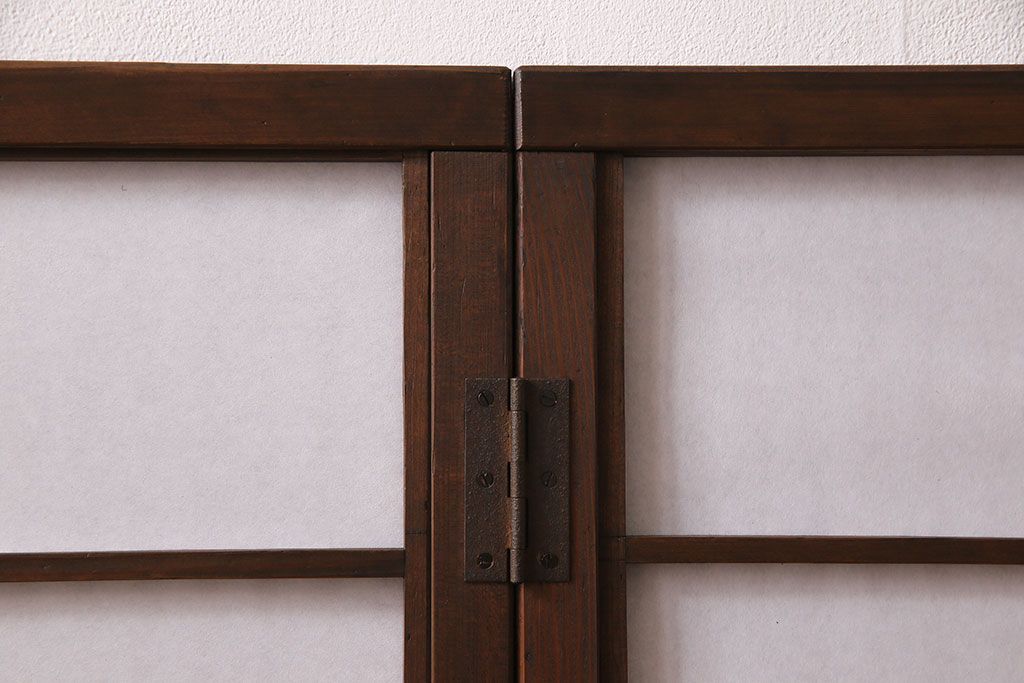ラフジュ工房> 衝立・パーテーション> 折りたたみパーテーション > 和製アンティーク 大正昭和初期 ヒノキ材 裏障子付き 上品な和のパーテーション(衝立て)