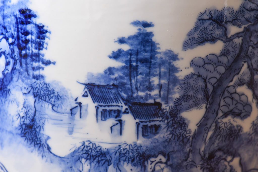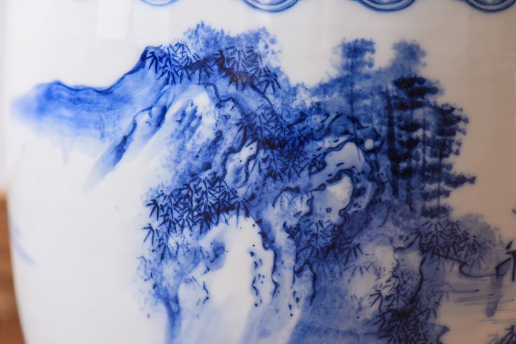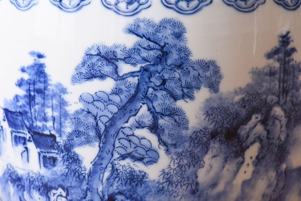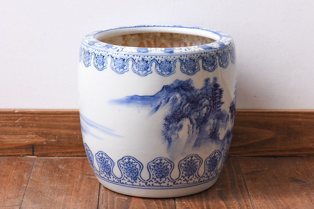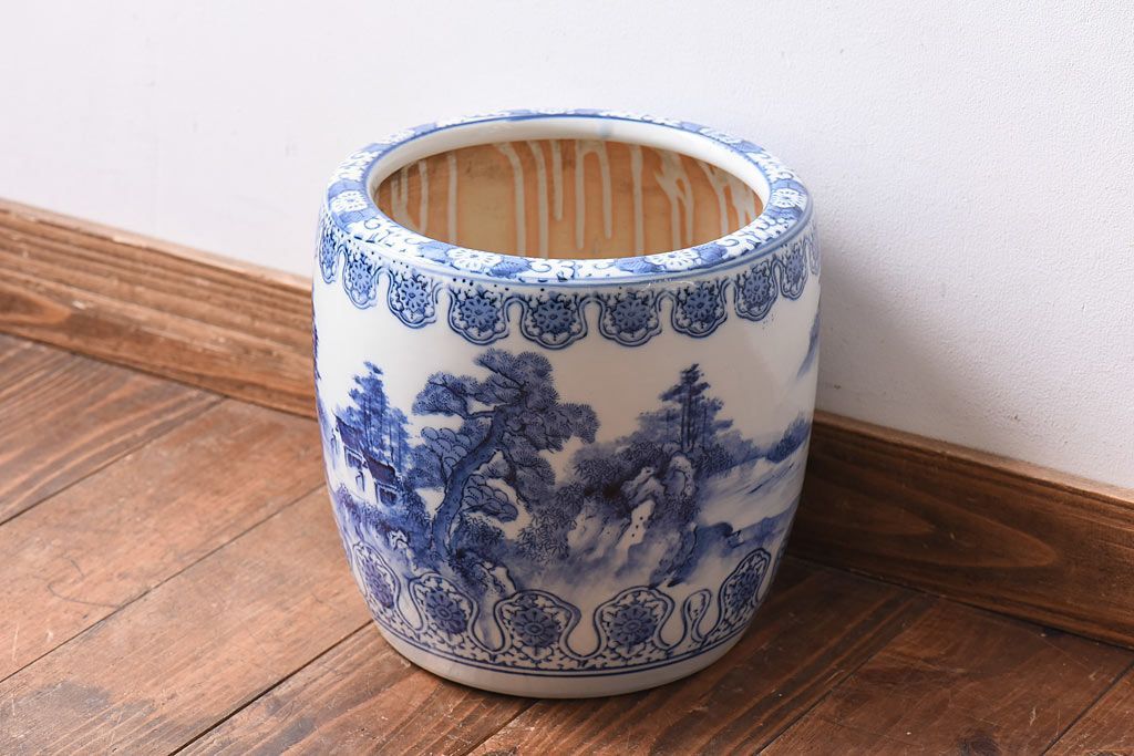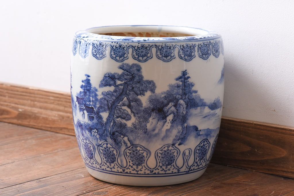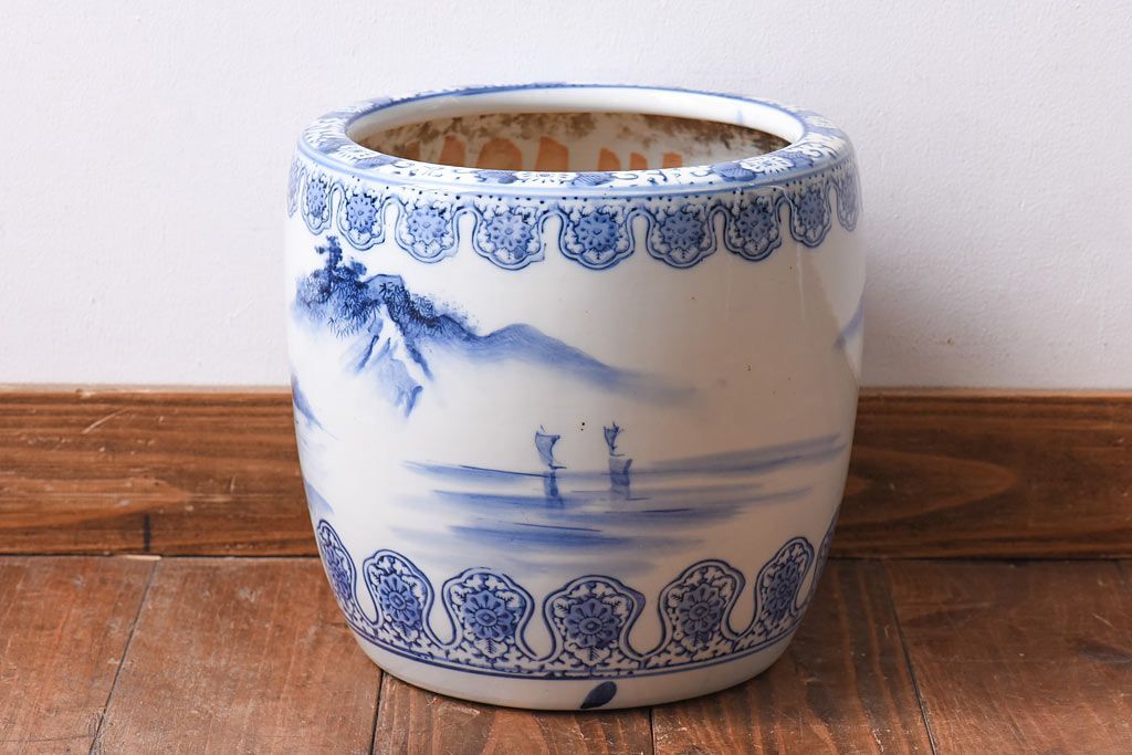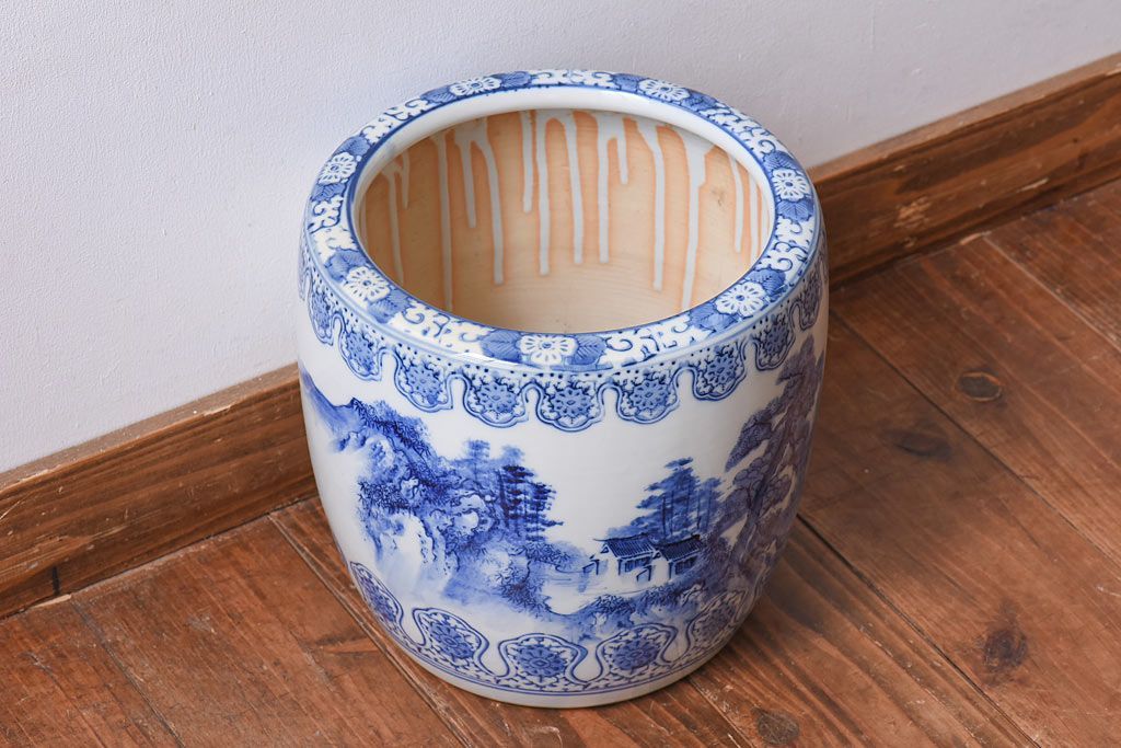 アンティーク雑貨 山水図 日本らしい雰囲気を高める瀬戸火鉢(鉢カバー)