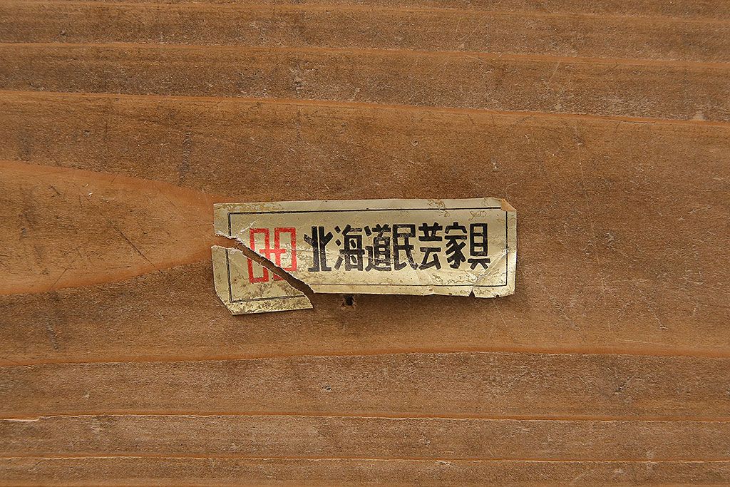 引き出しには、北海道民芸家具の証であるブランドシールが貼られています。