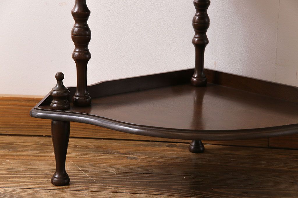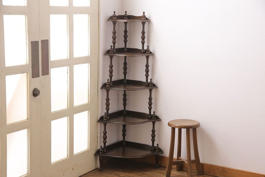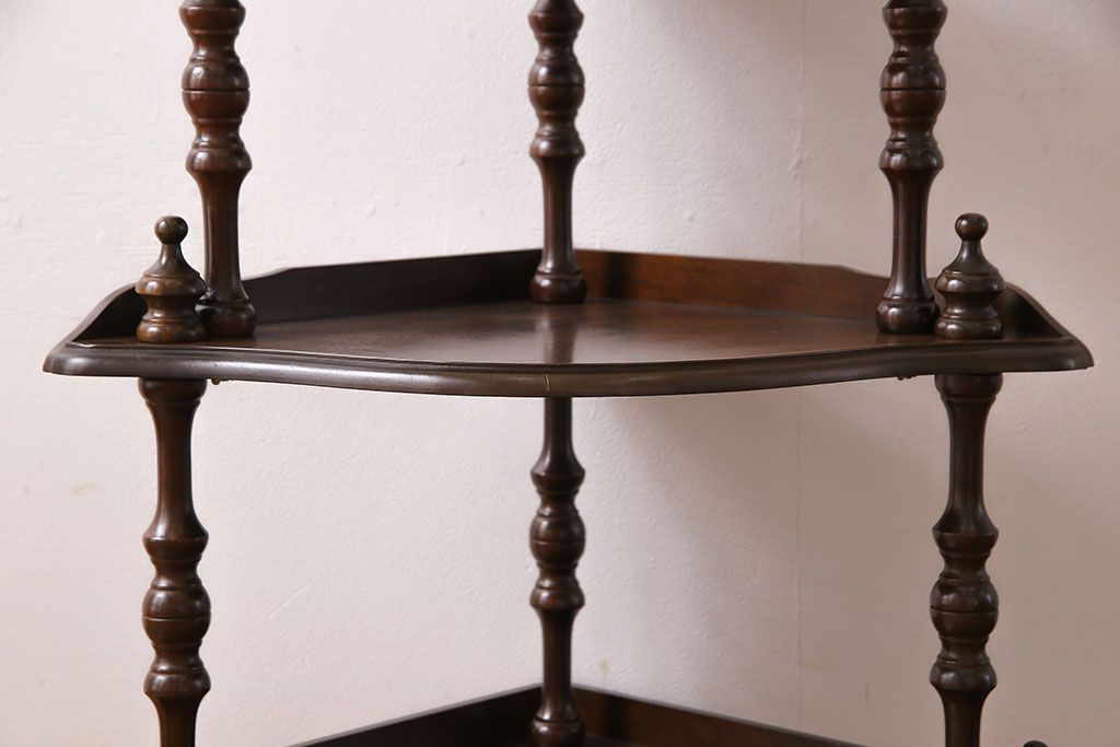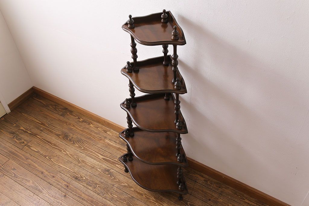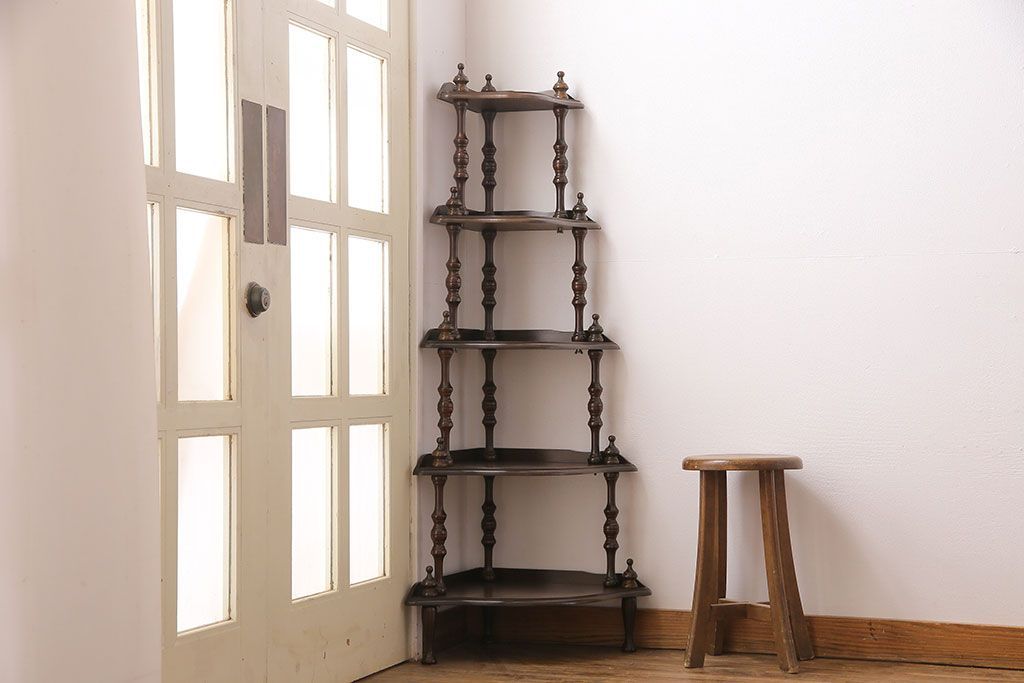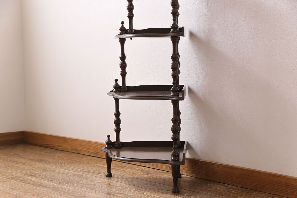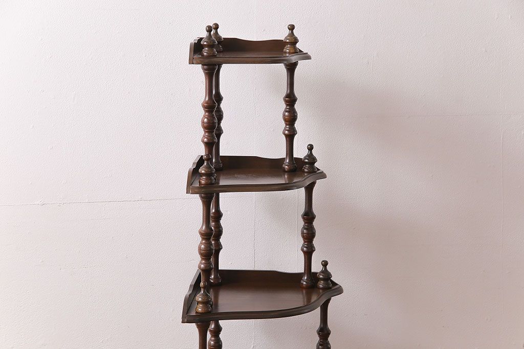 ラフジュ工房> オープンラック・シェルフ> ディスプレイラック > アンティーク雑貨 イギリスビンテージ ウォールナット材 エレガンスなコーナーラック(飾り台、花台)