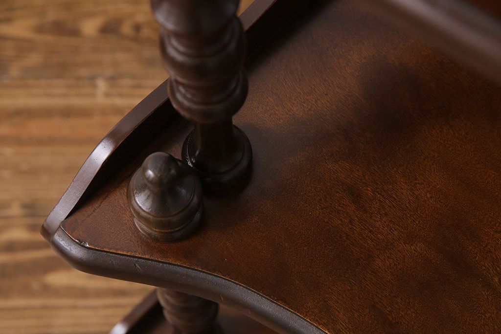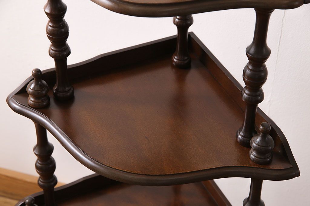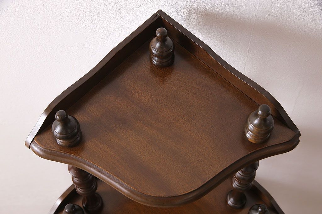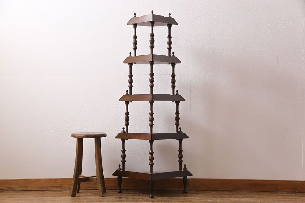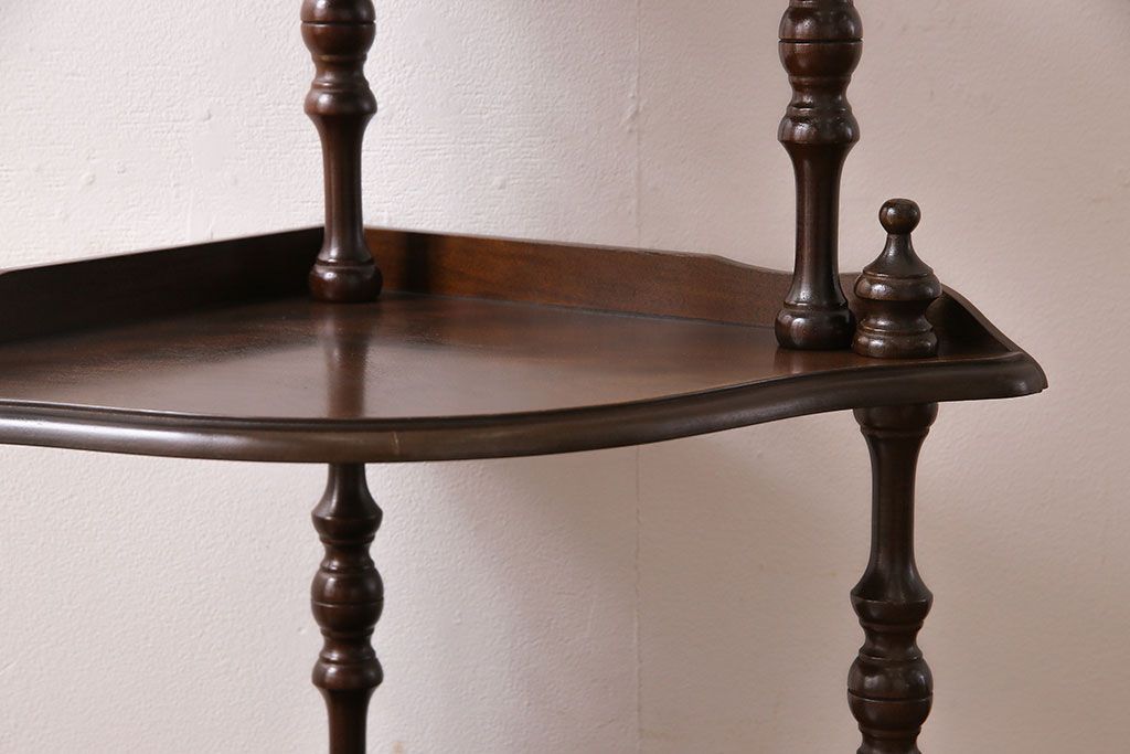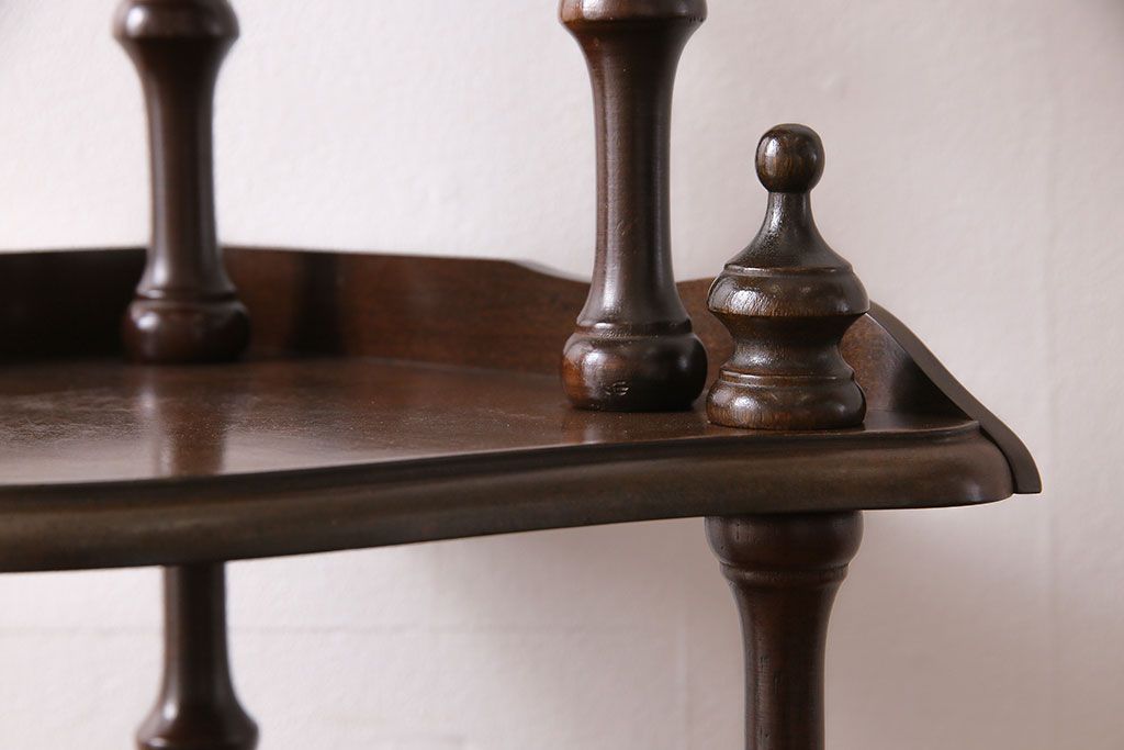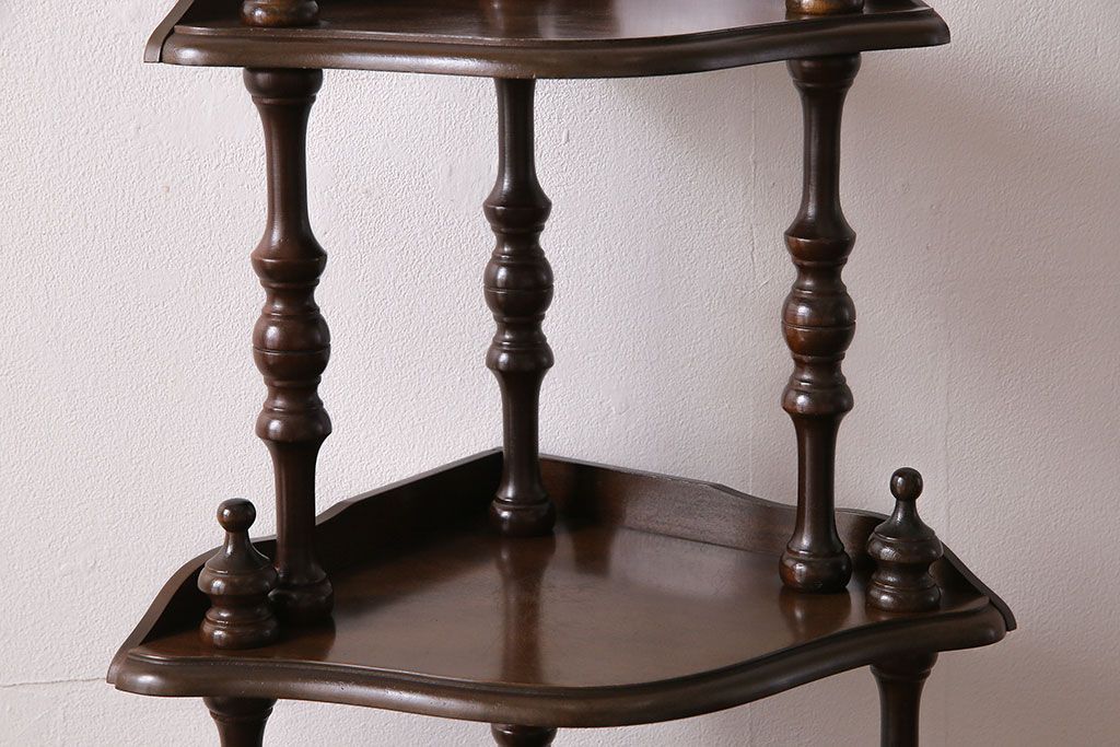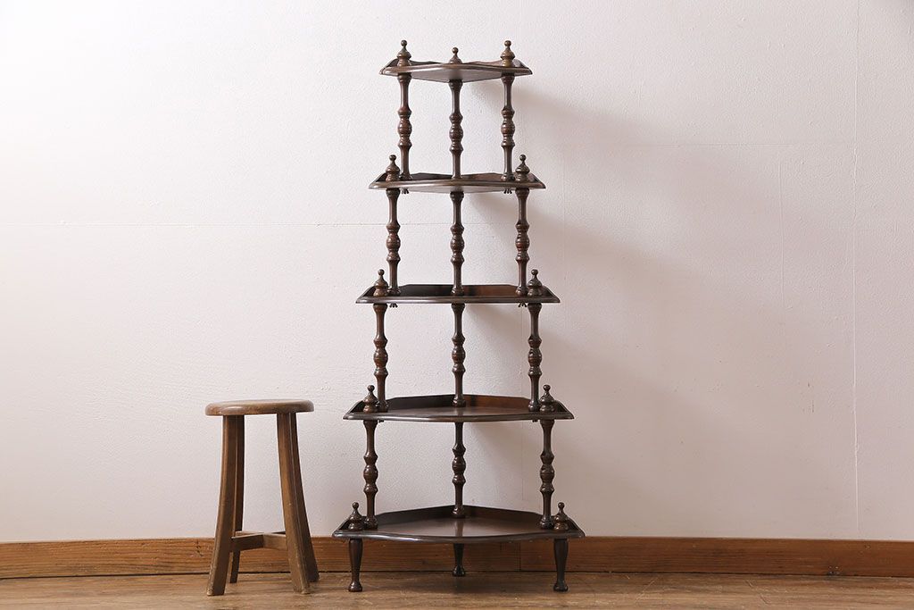 ラフジュ工房> オープンラック・シェルフ> ディスプレイラック > アンティーク雑貨 イギリスビンテージ ウォールナット材 エレガンスなコーナーラック(飾り台、花台)