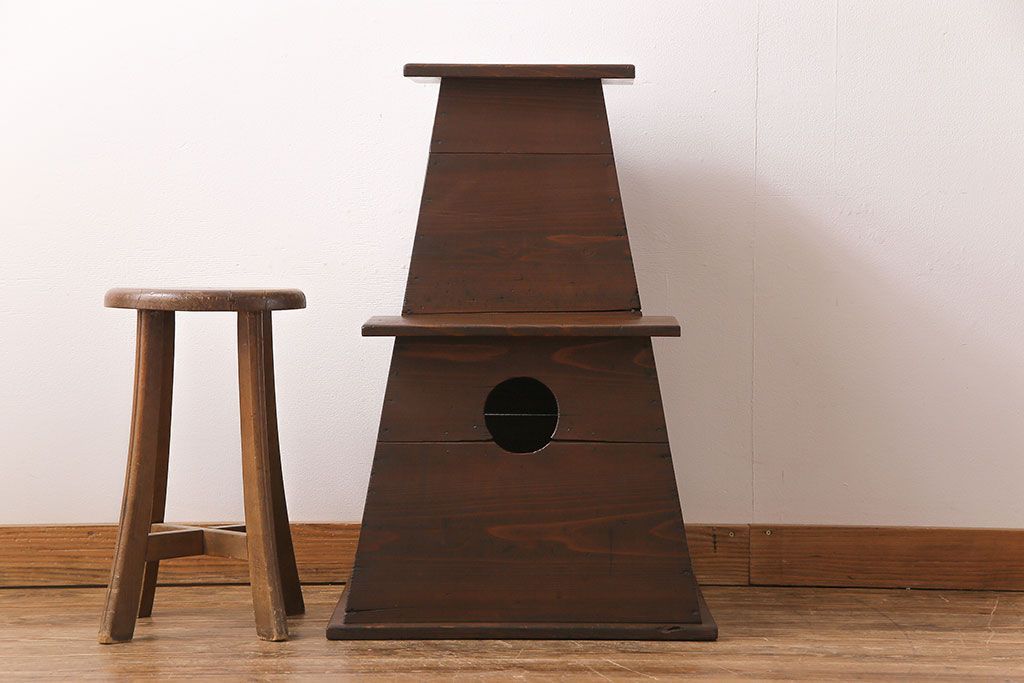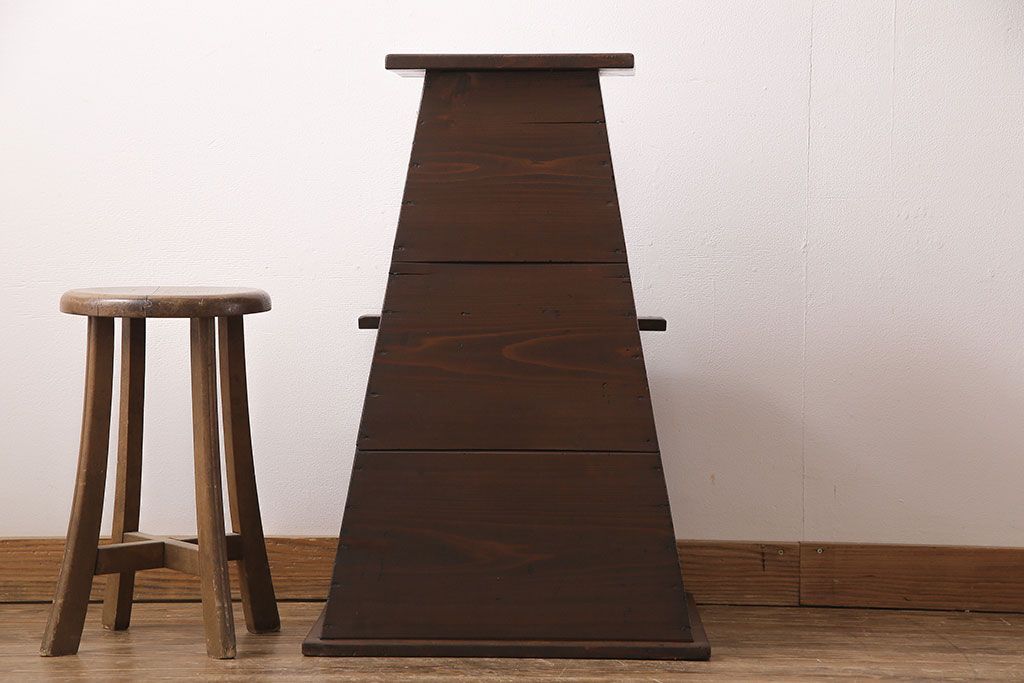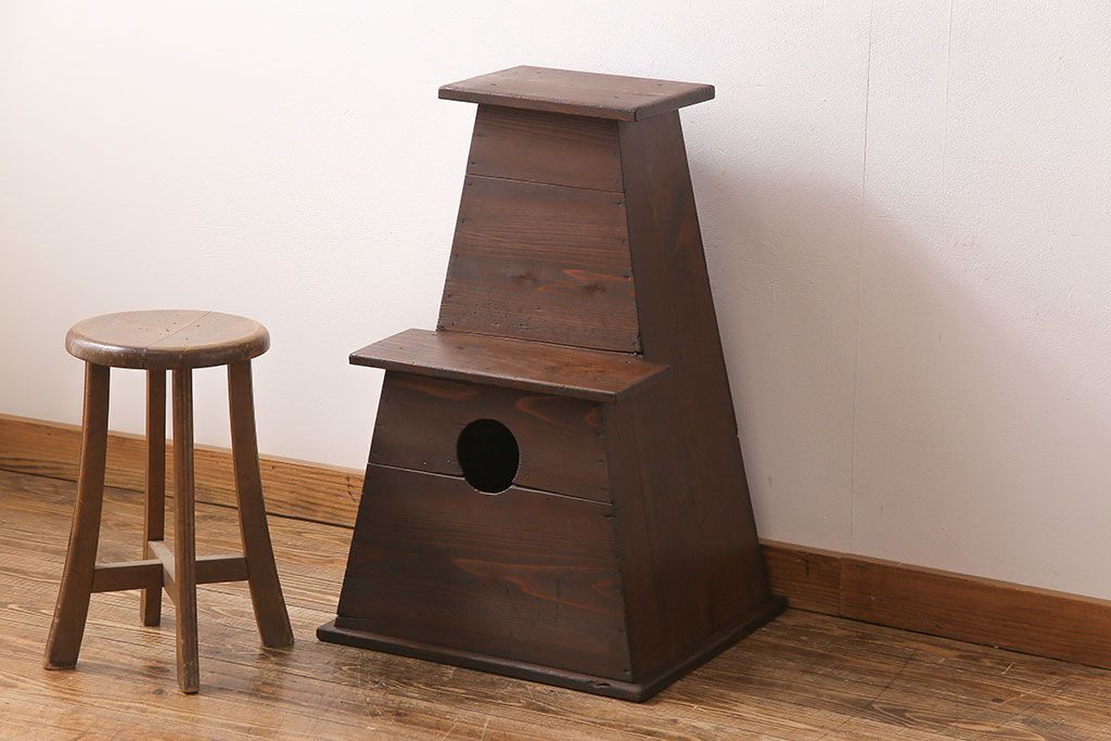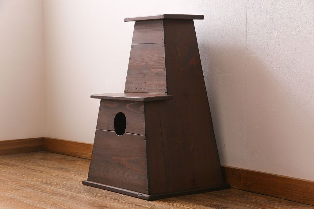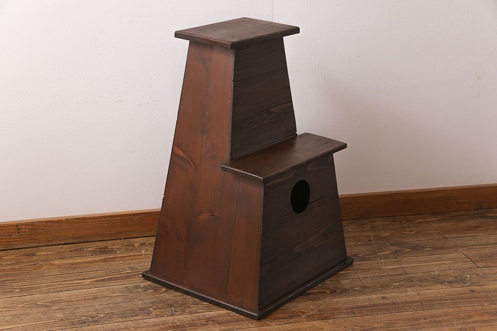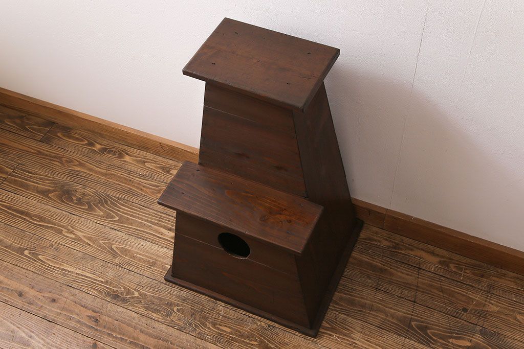 アンティーク雑貨 昭和レトロ ヒノキ材 味わいのある雰囲気が魅力の踏み台(花台)