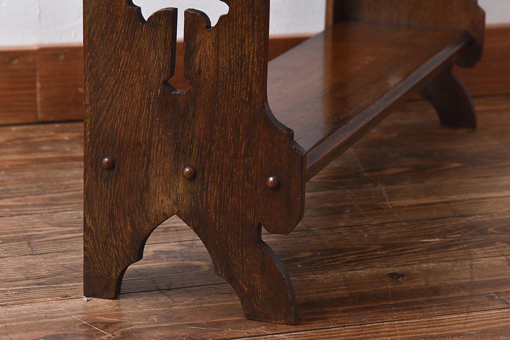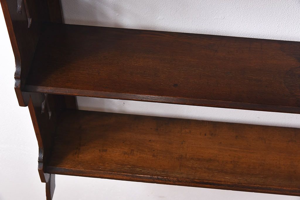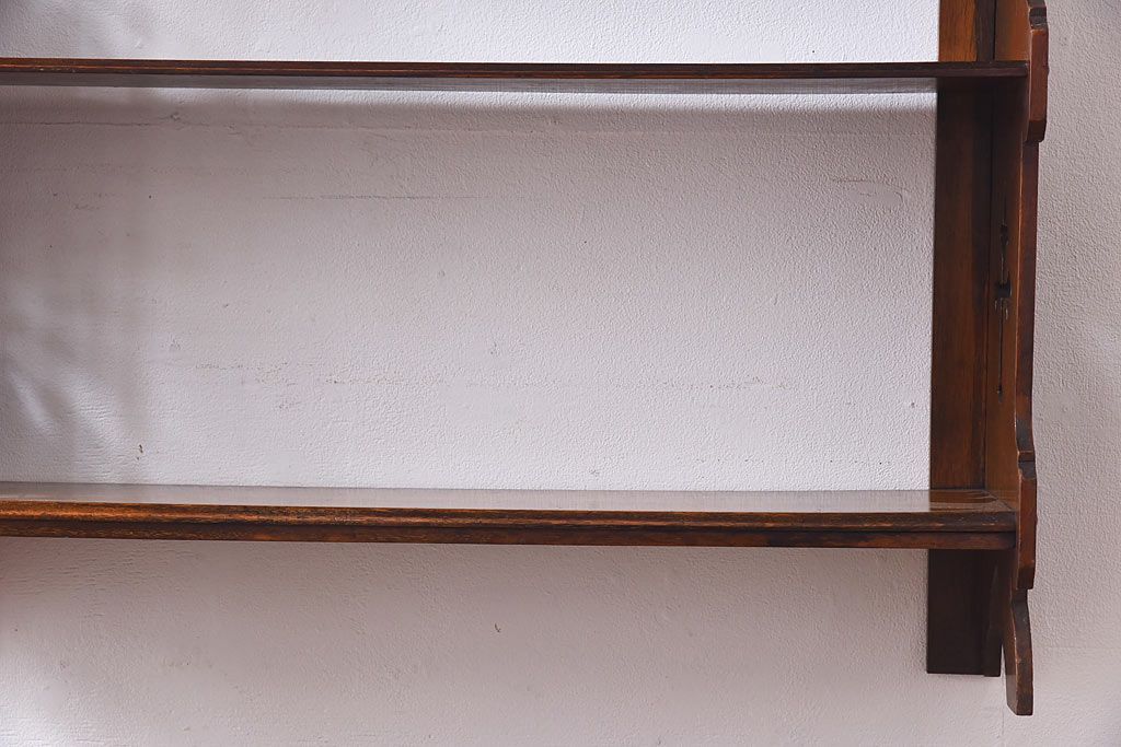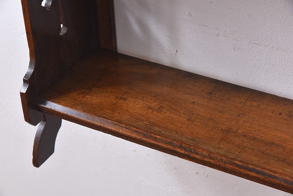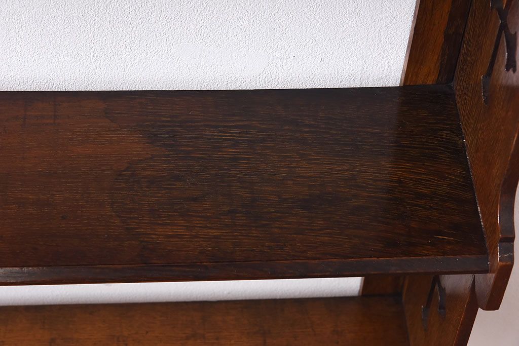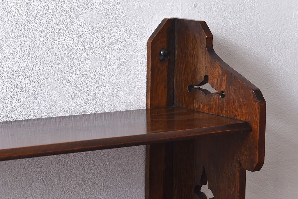 アンティーク家具 イギリスアンティーク 十字架の透かし彫りが美しいウォールラック(壁掛け飾り棚)