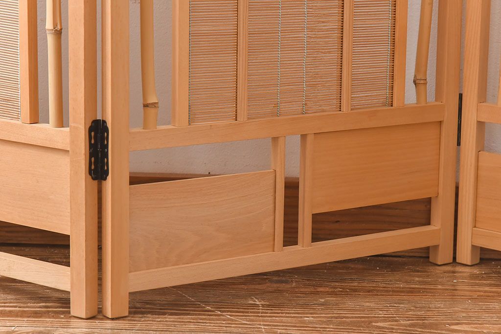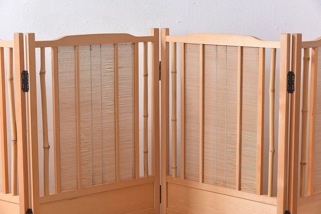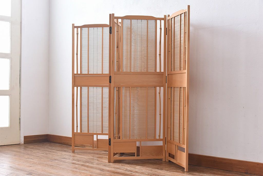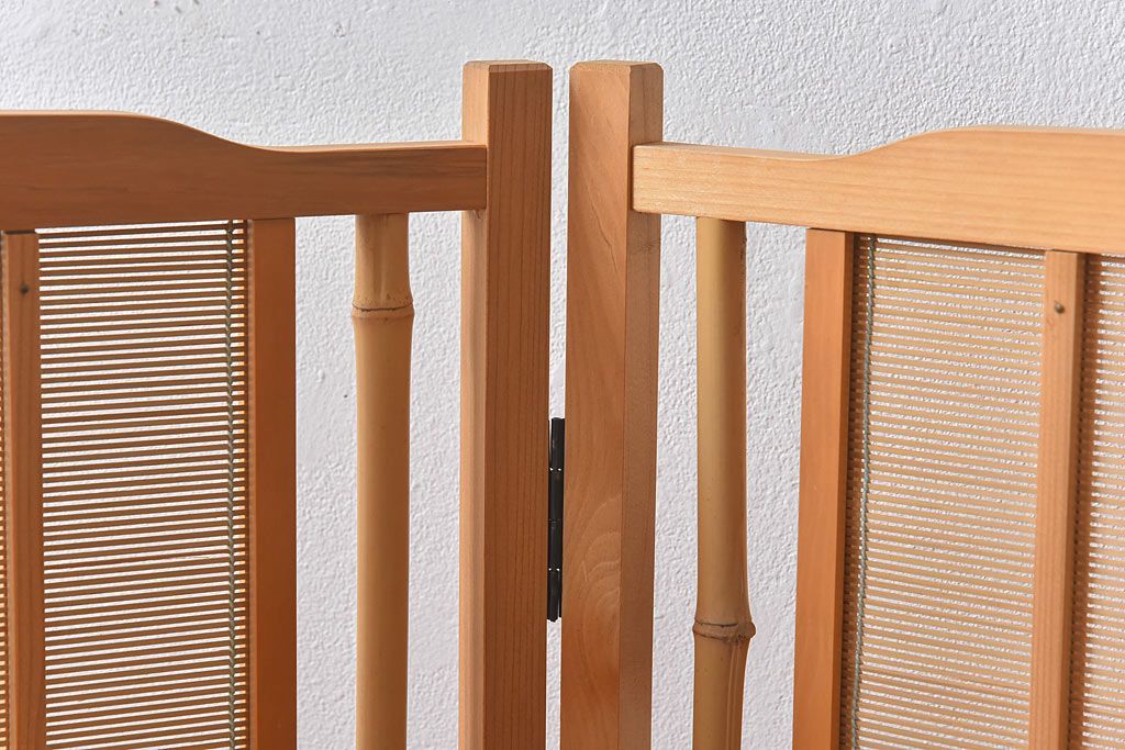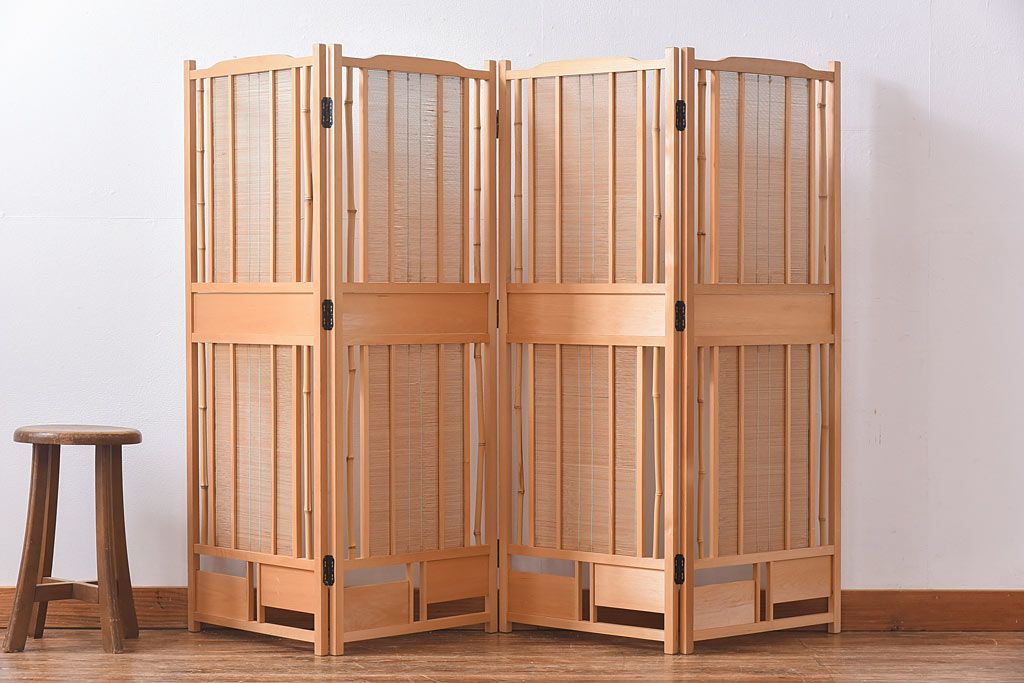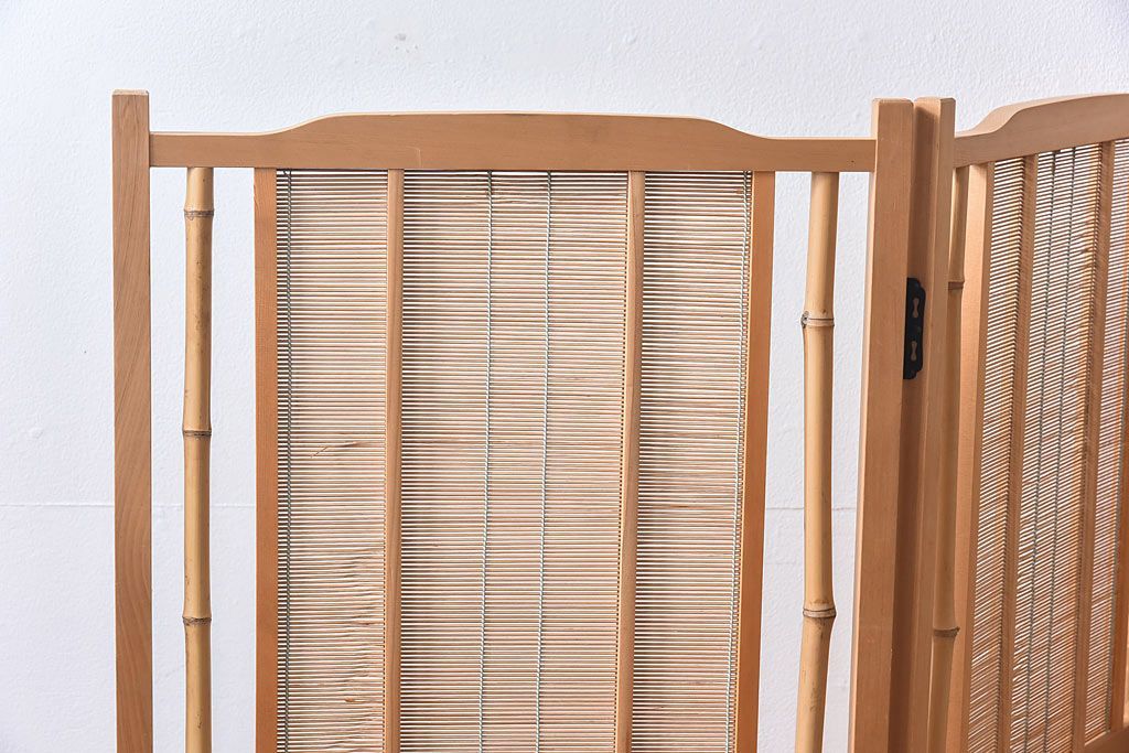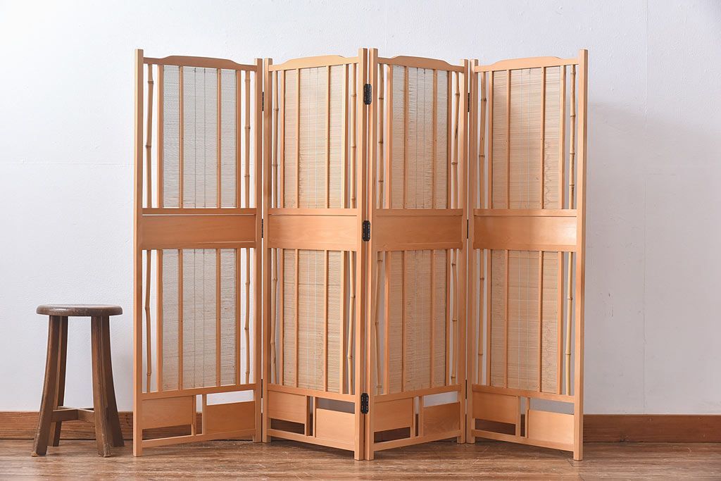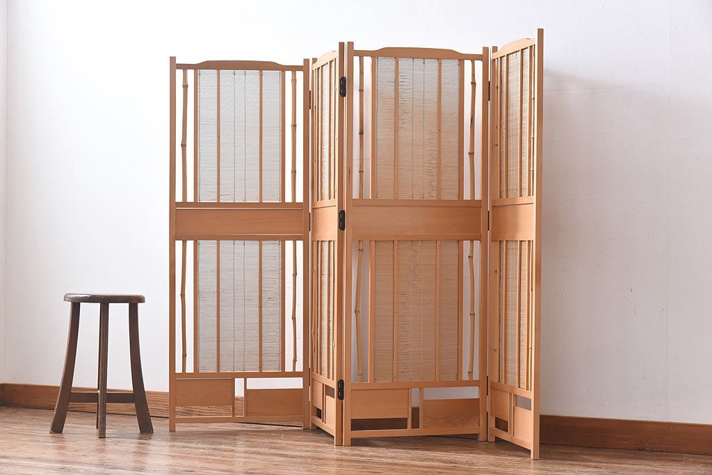 ラフジュ工房> 衝立・パーテーション > アンティーク雑貨 昭和期 竹を取り入れたモダンなデザインの四連折り畳み式パーテーション(衝立、仕切り)