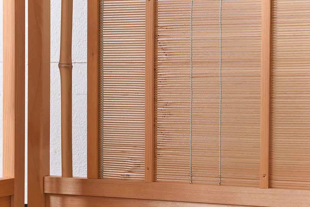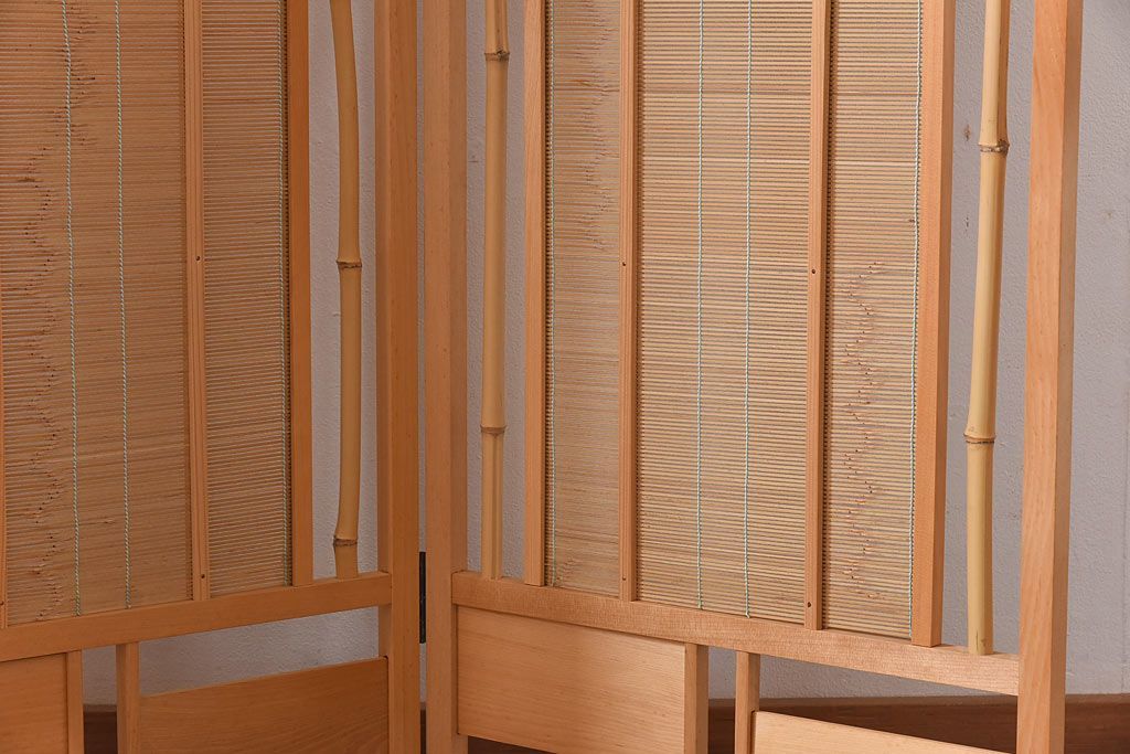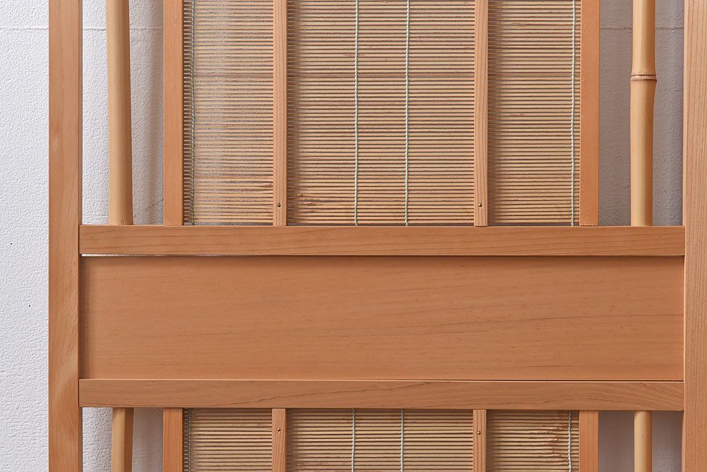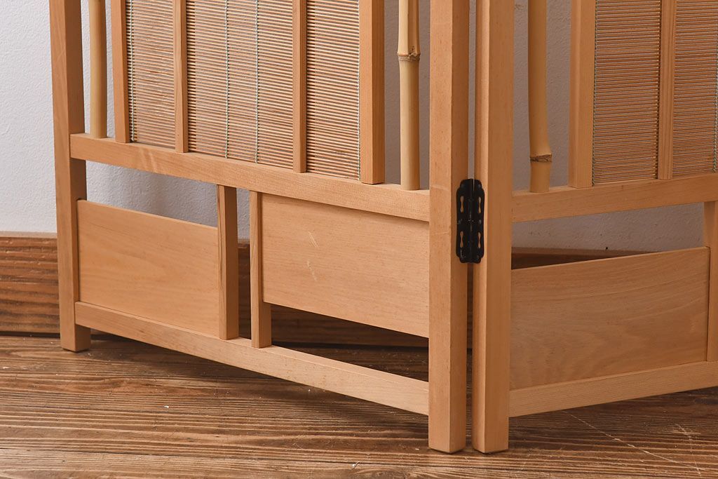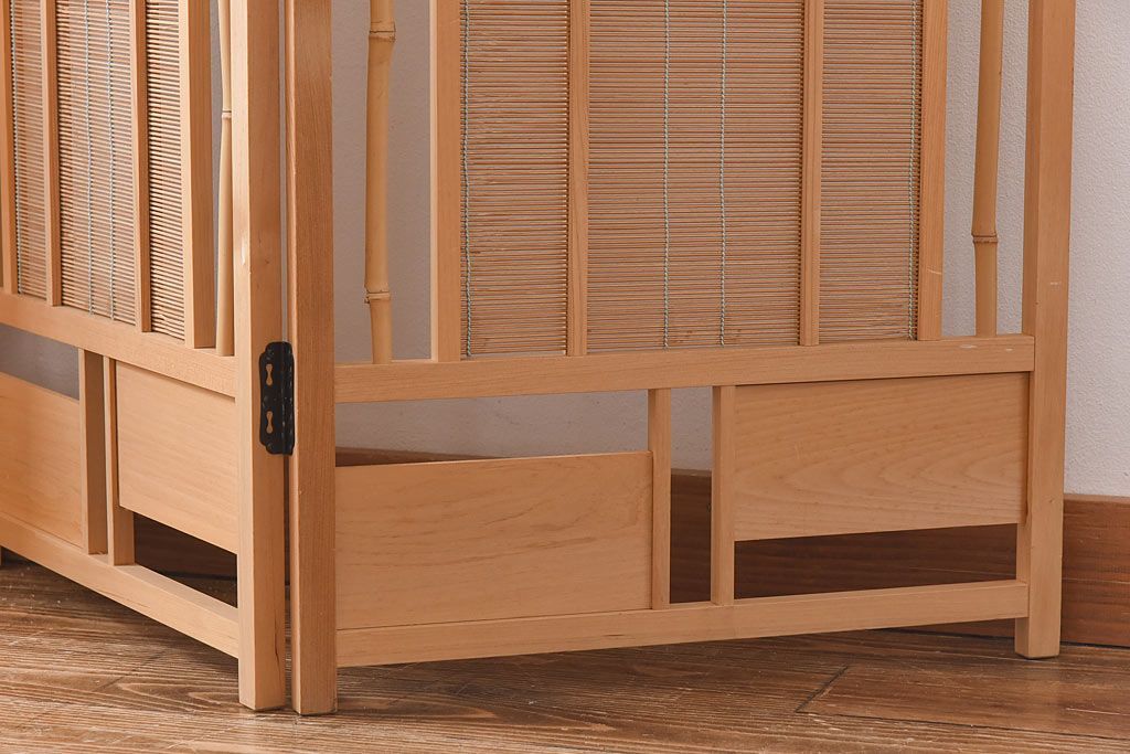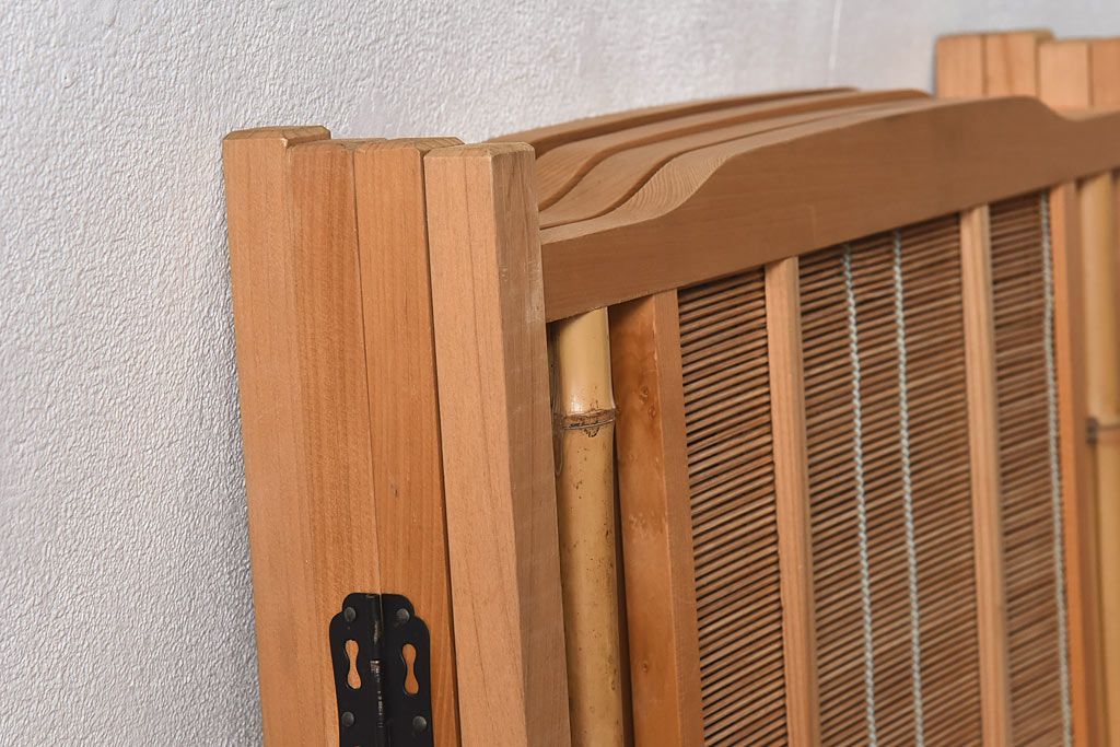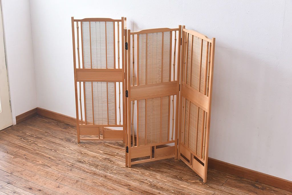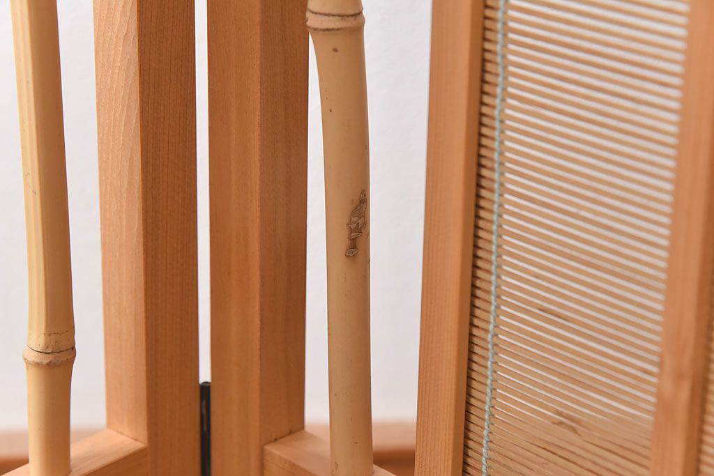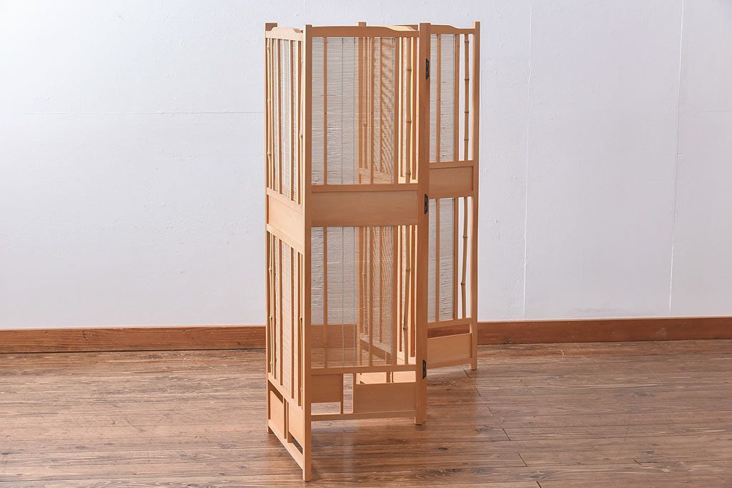ラフジュ工房> 衝立・パーテーション > アンティーク雑貨 昭和期 竹を取り入れたモダンなデザインの四連折り畳み式パーテーション(衝立、仕切り)