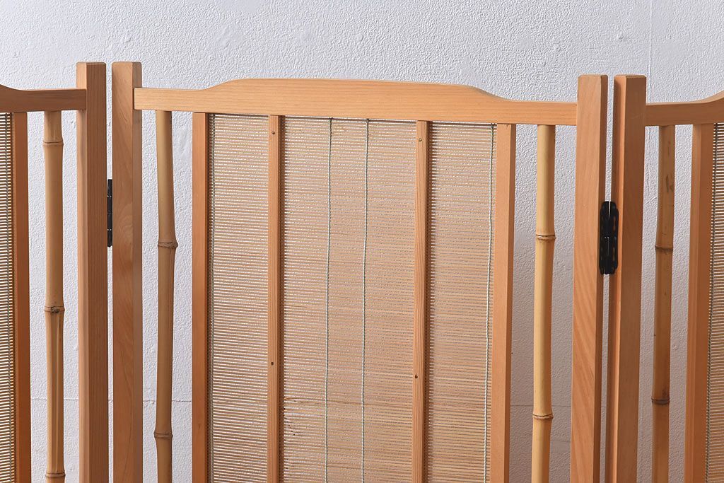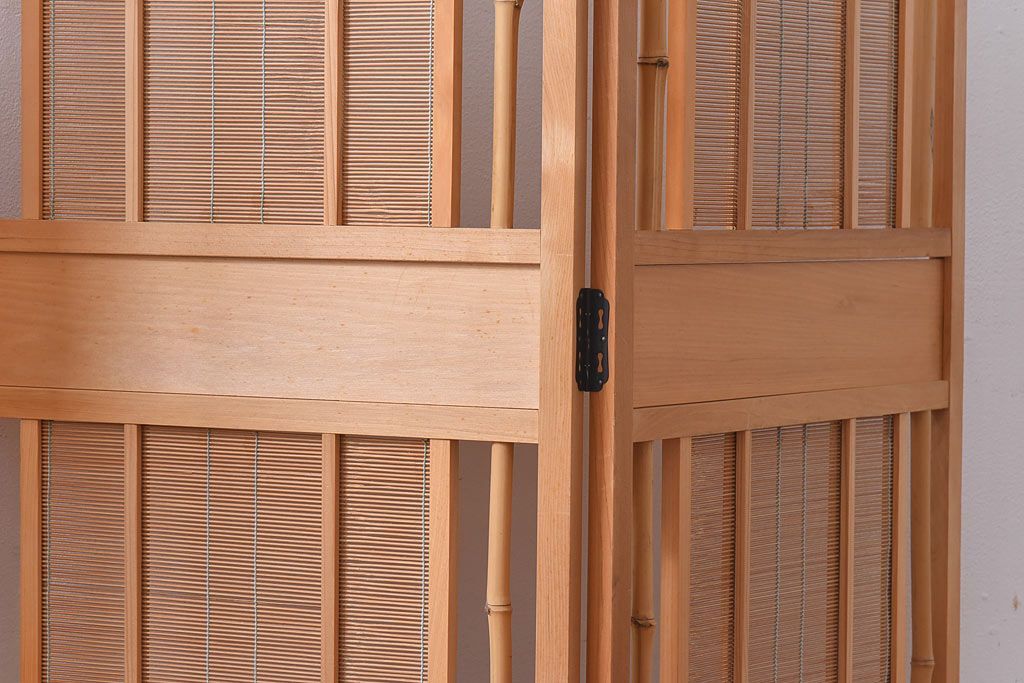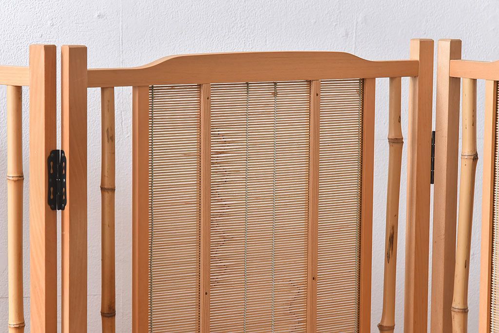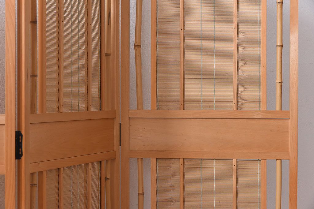 アンティーク雑貨 昭和期 竹を取り入れたモダンなデザインの四連折り畳み式パーテーション(衝立、仕切り)