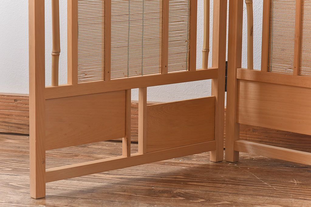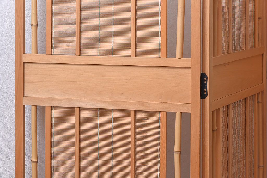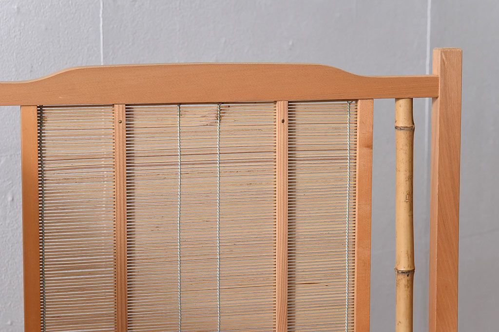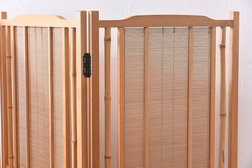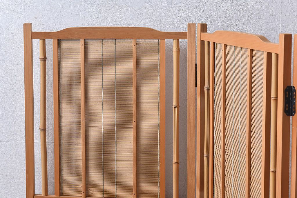 アンティーク雑貨 昭和期 竹を取り入れたモダンなデザインの四連折り畳み式パーテーション(衝立、仕切り)
