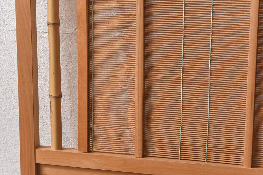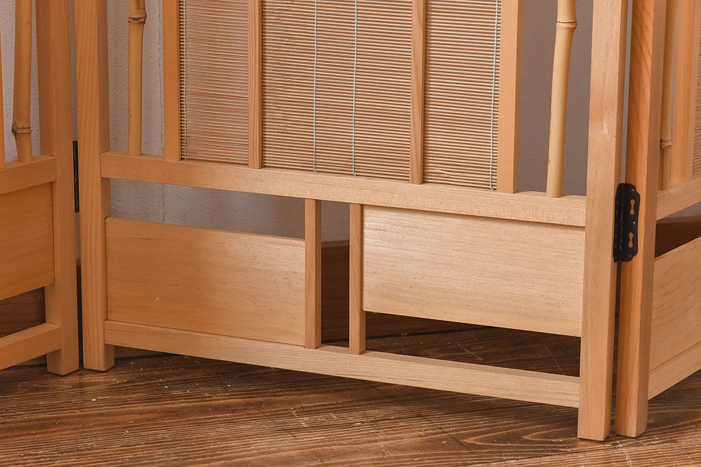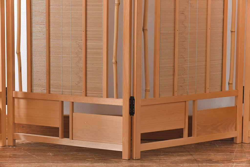 ラフジュ工房> 衝立・パーテーション> 折りたたみパーテーション > アンティーク雑貨 昭和期 竹を取り入れたモダンなデザインの四連折り畳み式パーテーション(衝立、仕切り)