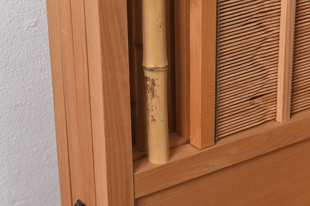 ラフジュ工房> ドア・建具> 4枚〜セット > アンティーク雑貨 昭和期 竹を取り入れたモダンなデザインの四連折り畳み式パーテーション(衝立、仕切り)