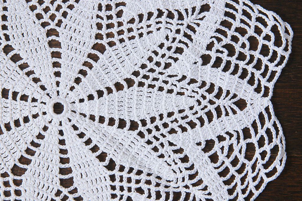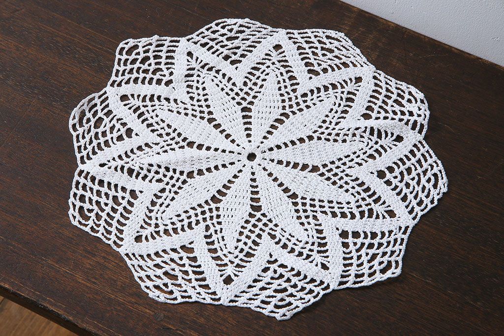 アンティーク雑貨 イギリス製 テーブルに映えるデザインのドイリー(レース、クロス)