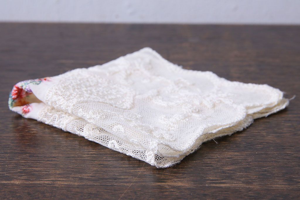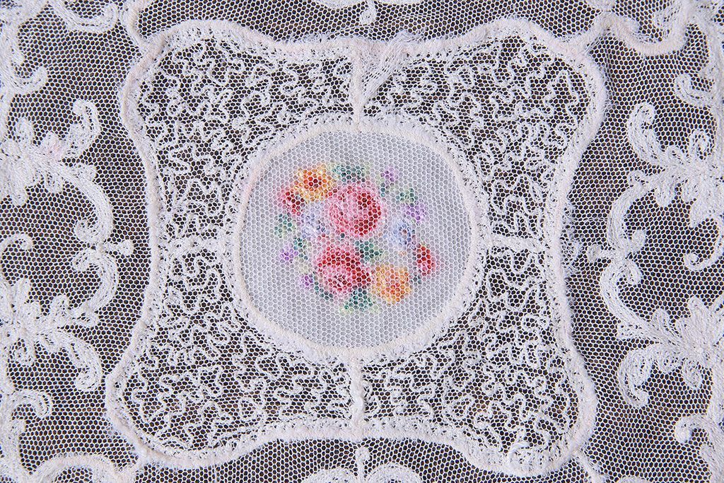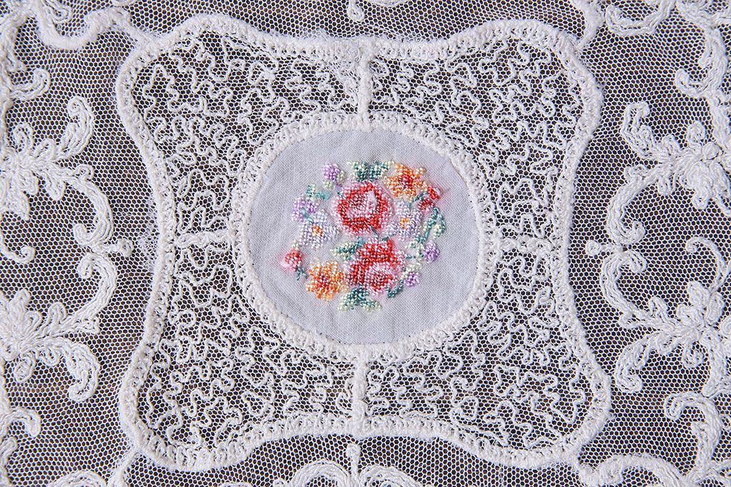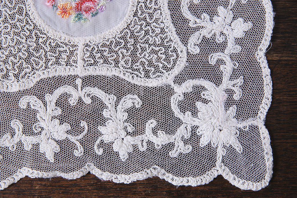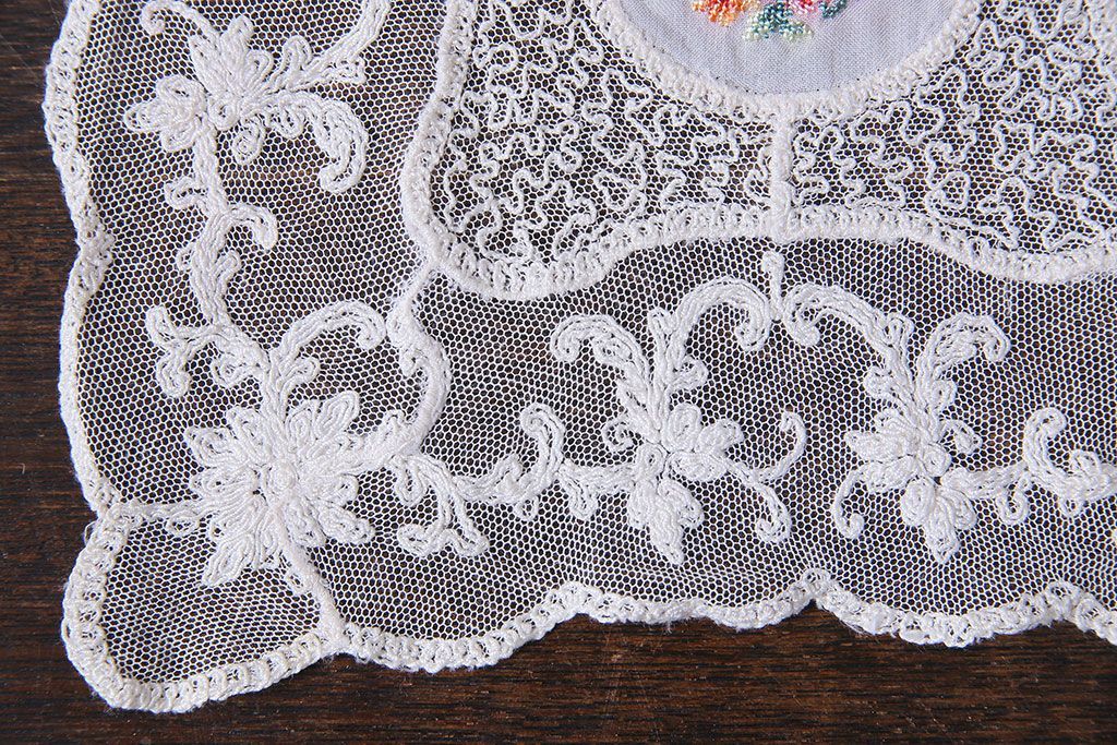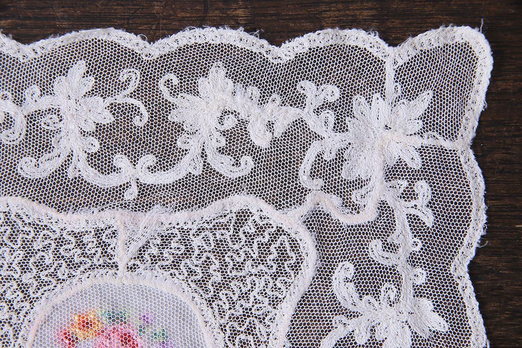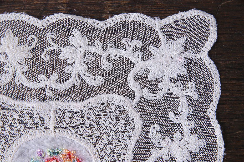 アンティーク雑貨 イギリスビンテージ カラフルな花のプチポワン刺繍が愛らしいドイリー(レース、クロス)(1)