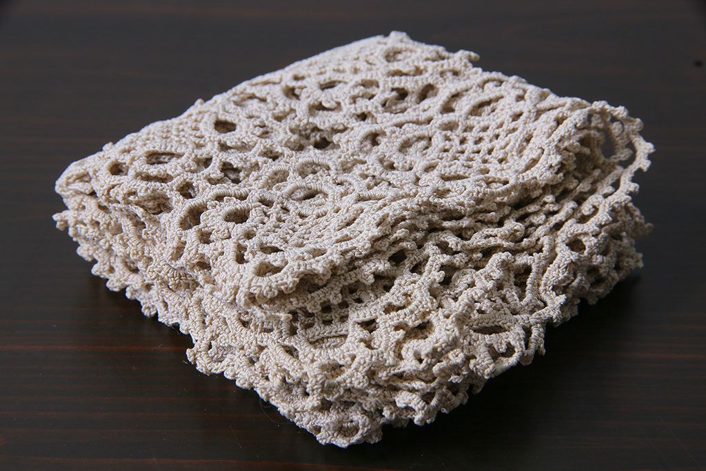 アンティーク雑貨 イギリス製 薄茶色であたたかな印象のドイリー(レース、クロス)