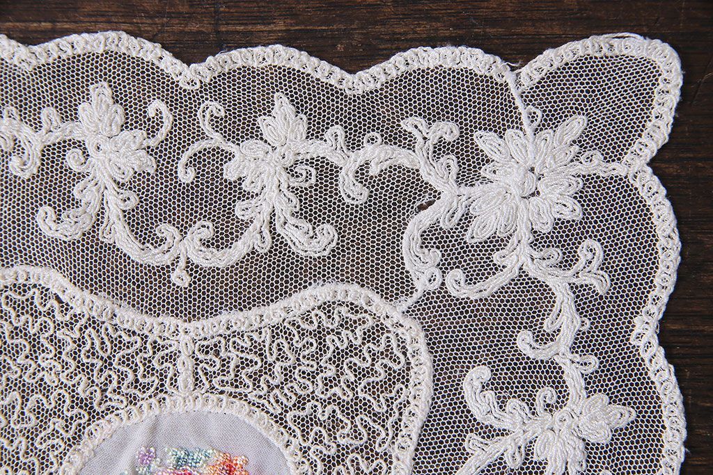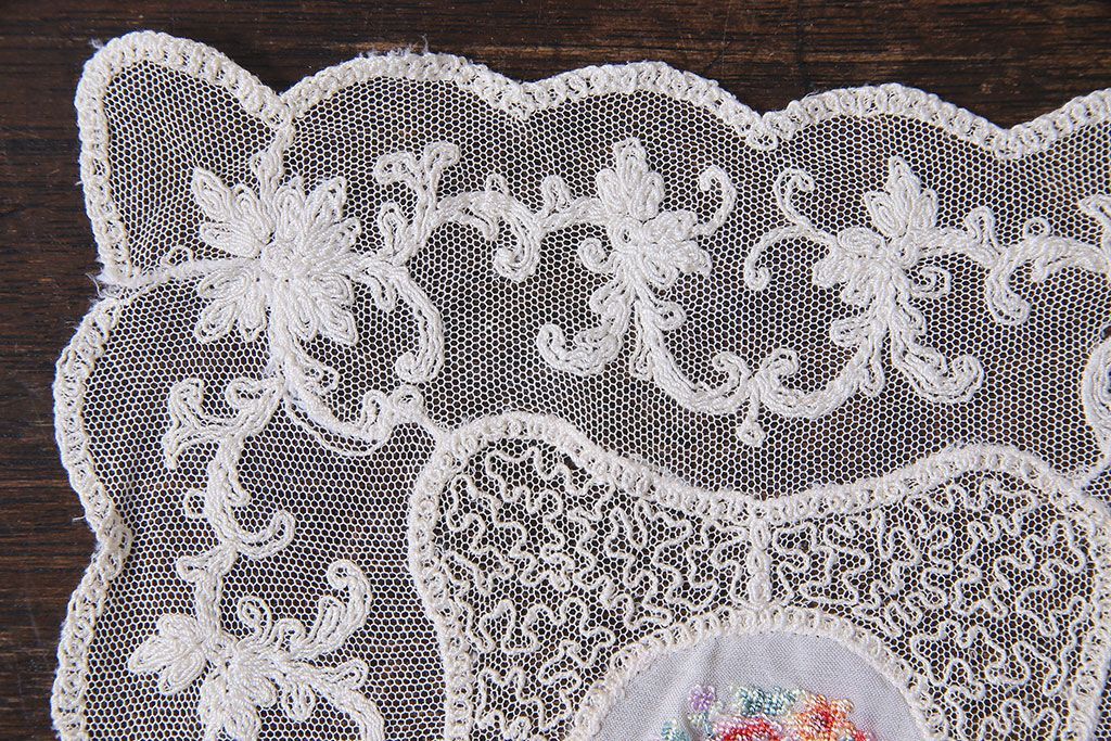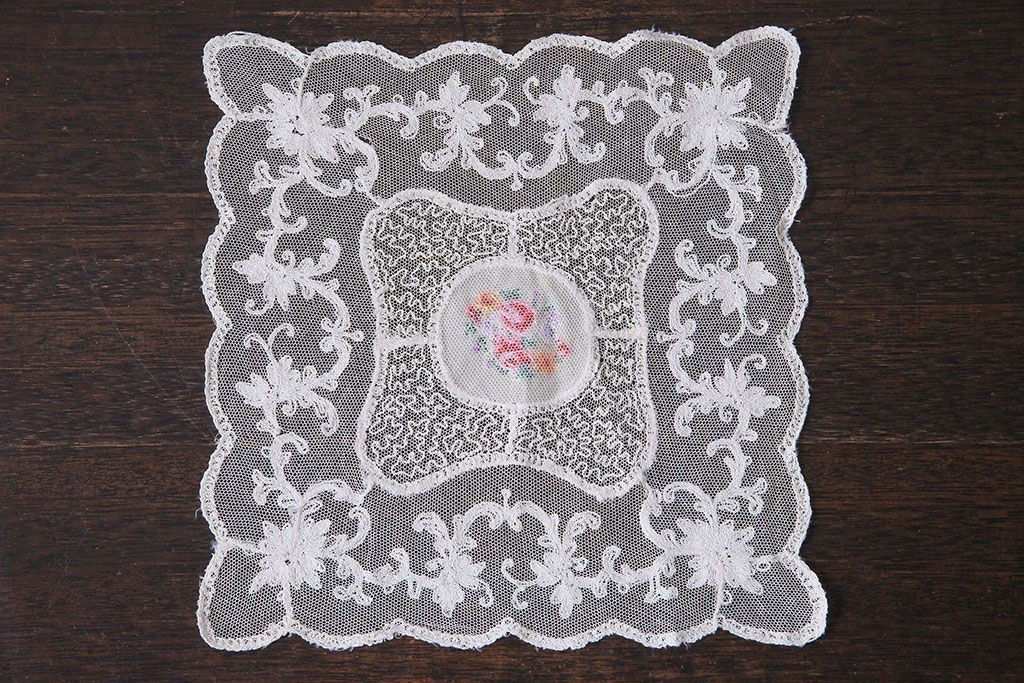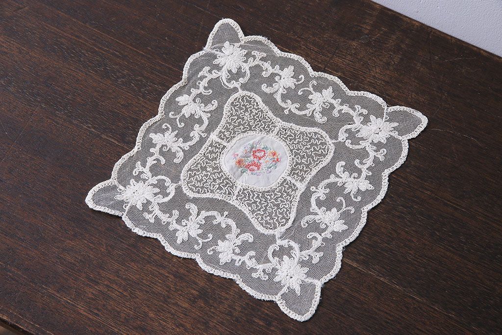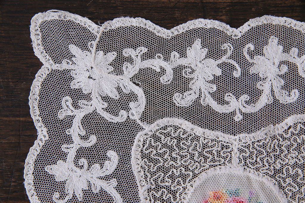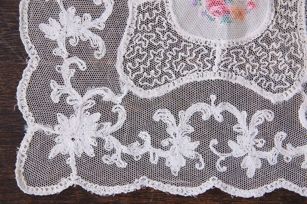 アンティーク雑貨 イギリスビンテージ カラフルな花のプチポワン刺繍が愛らしいドイリー(レース、クロス)(2)