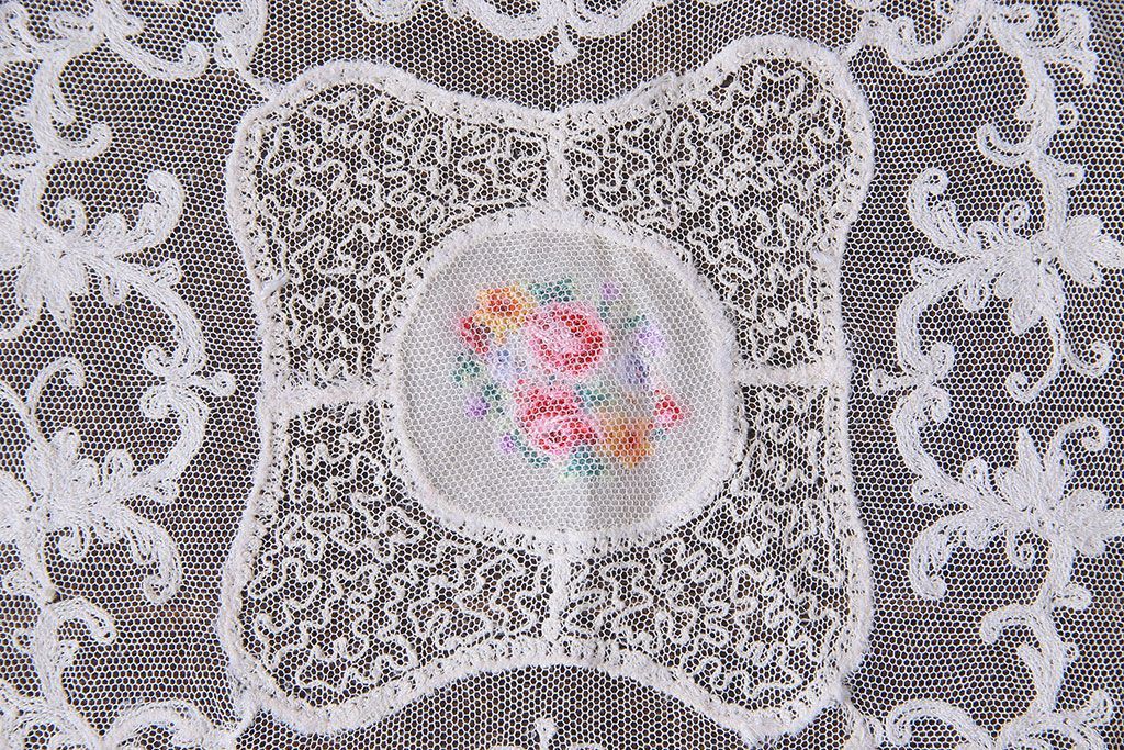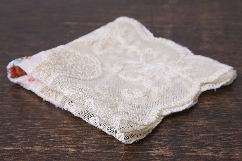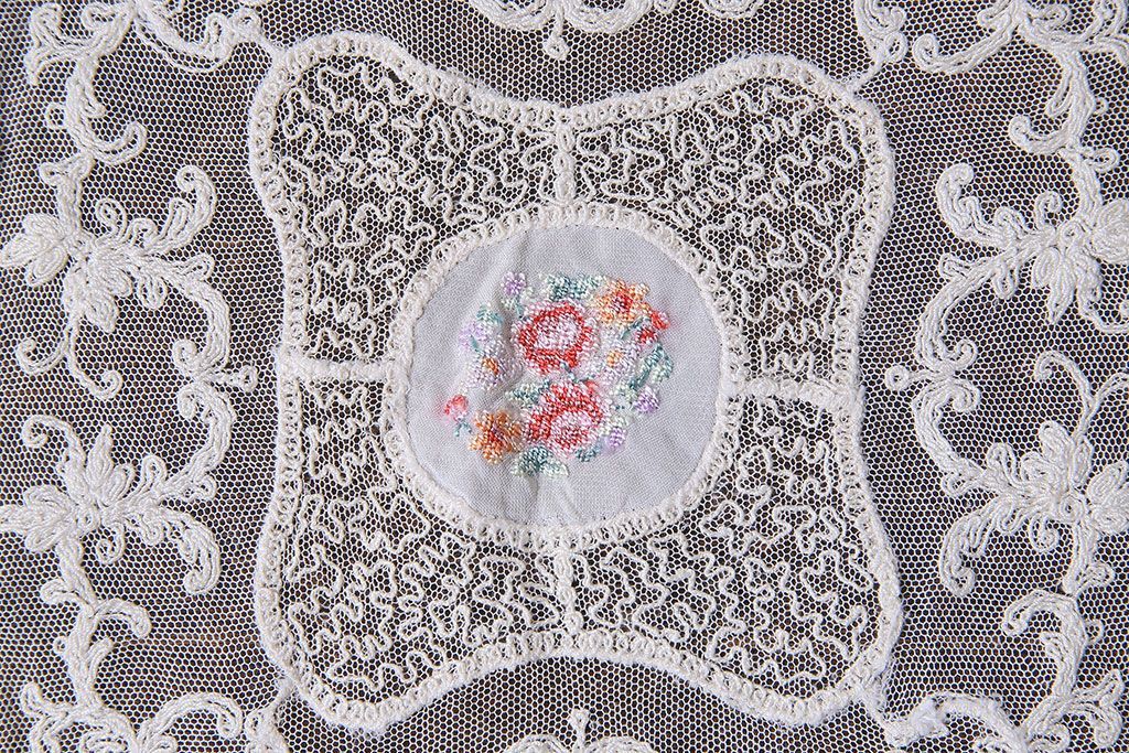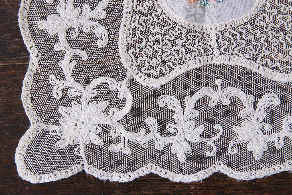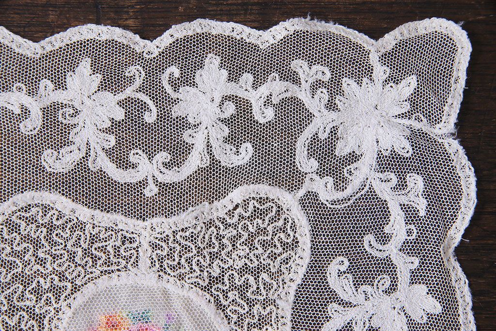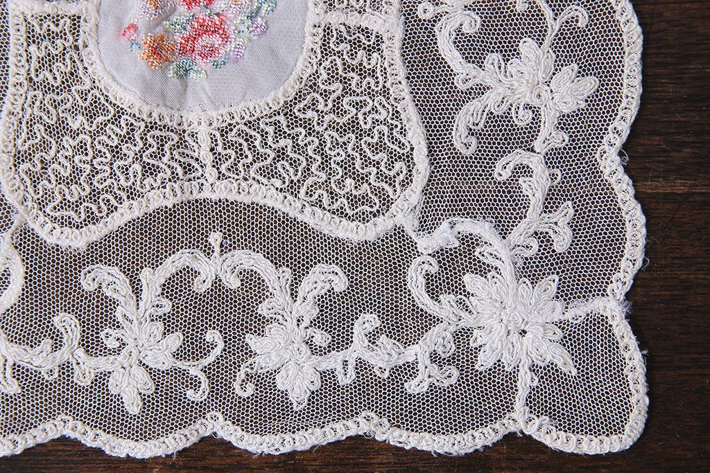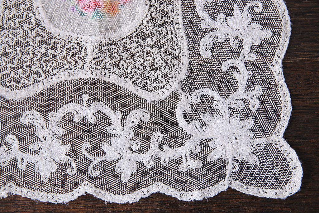 アンティーク雑貨 イギリスビンテージ カラフルな花のプチポワン刺繍が愛らしいドイリー(レース、クロス)(2)