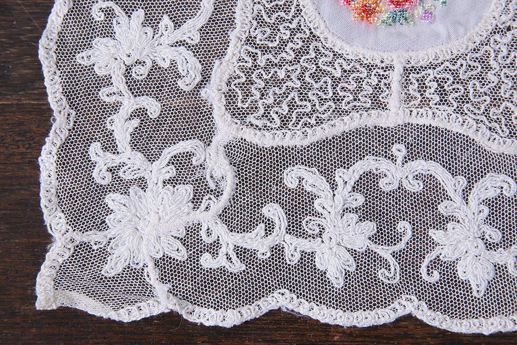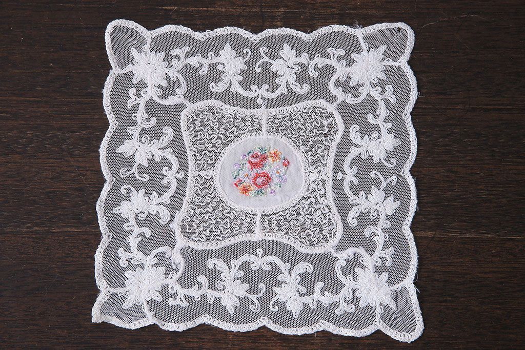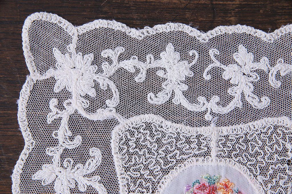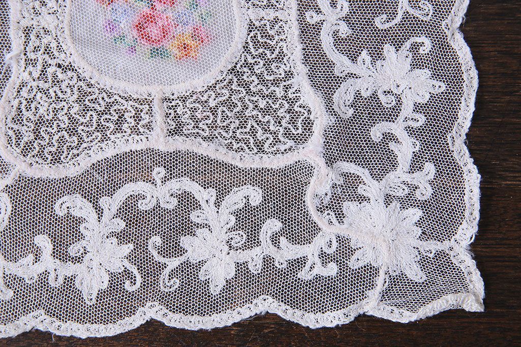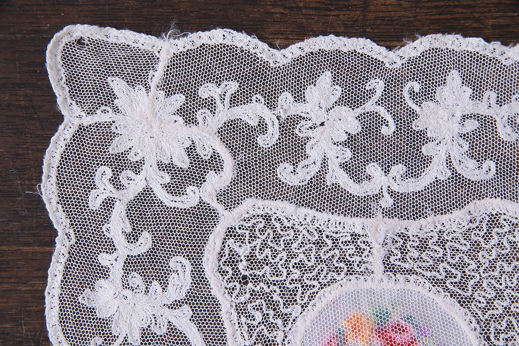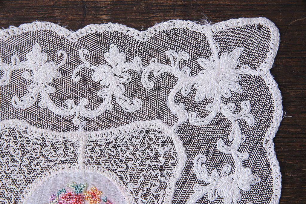 アンティーク雑貨 イギリスビンテージ カラフルな花のプチポワン刺繍が愛らしいドイリー(レース、クロス)(3)