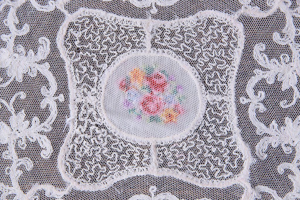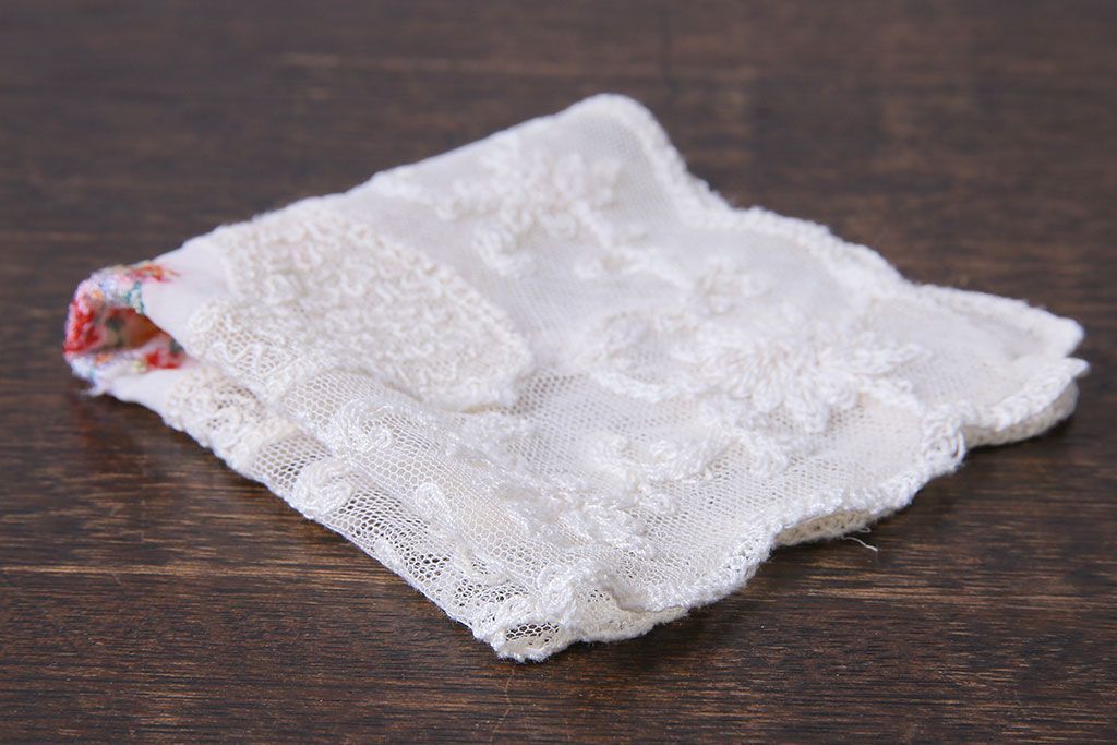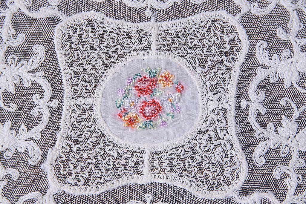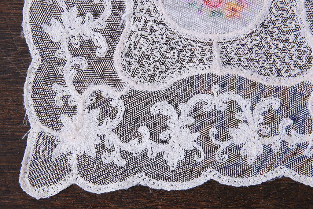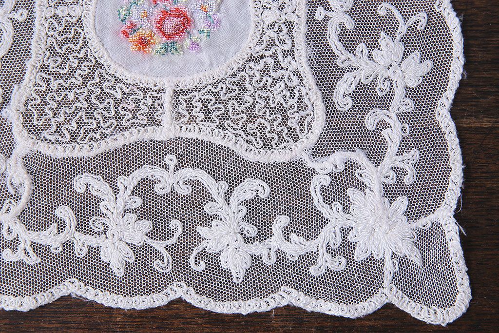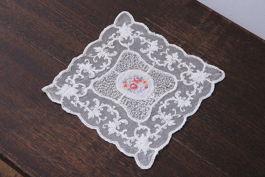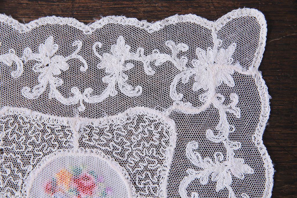 アンティーク雑貨 イギリスビンテージ カラフルな花のプチポワン刺繍が愛らしいドイリー(レース、クロス)(3)