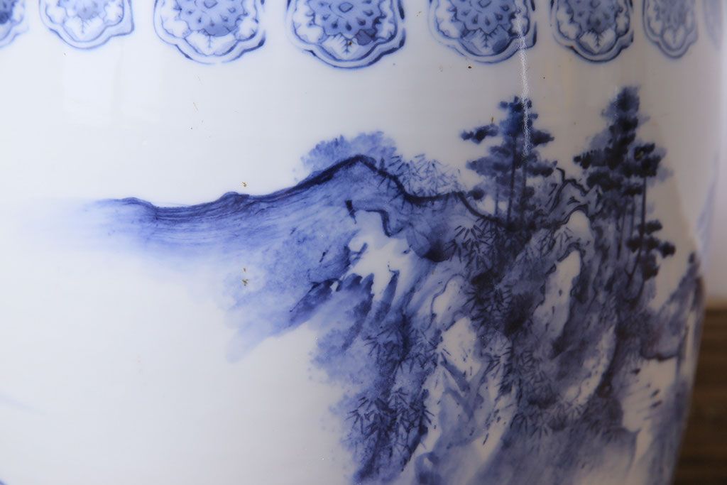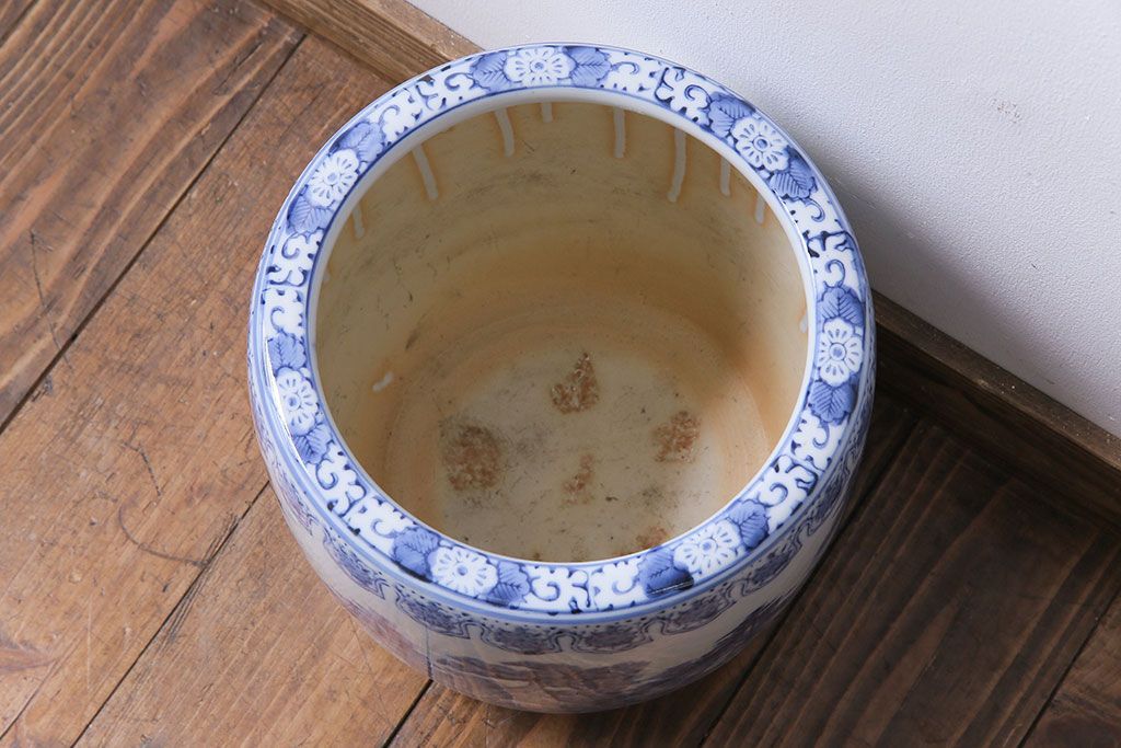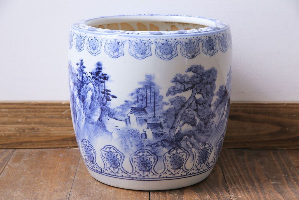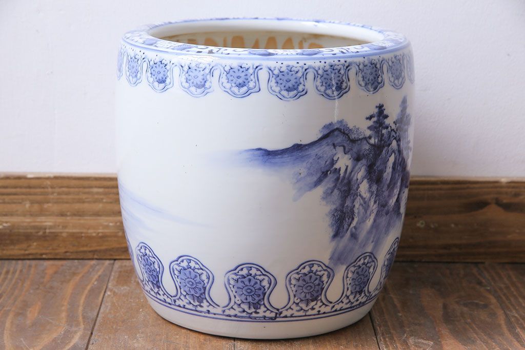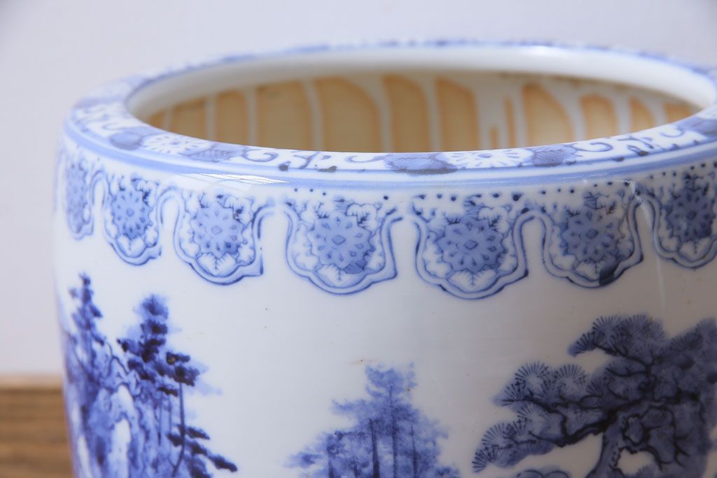 アンティーク雑貨 山水図 日本らしい雰囲気を高める瀬戸火鉢(鉢カバー)(1)