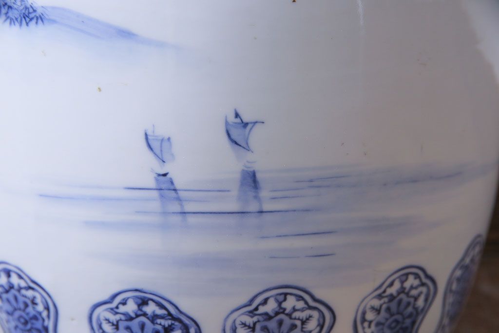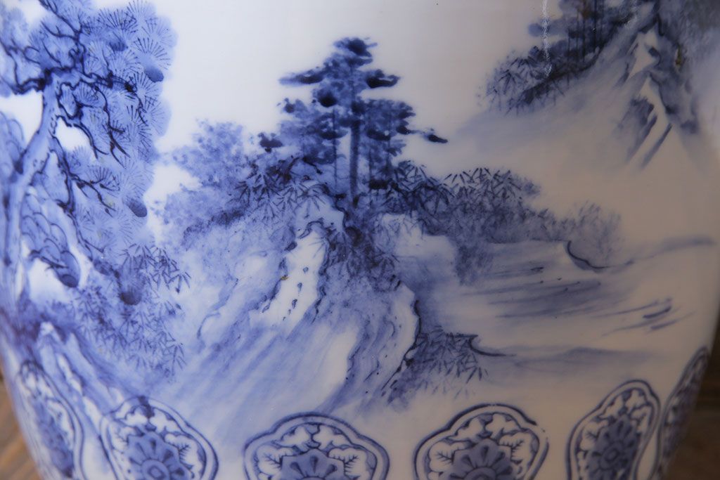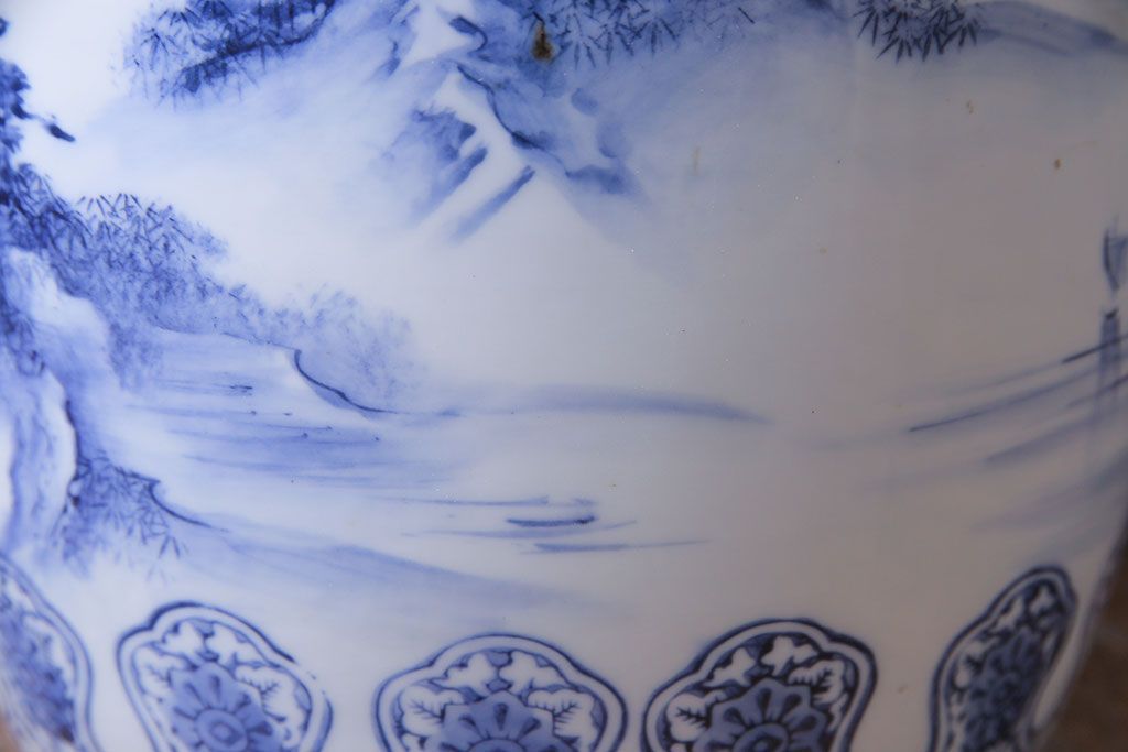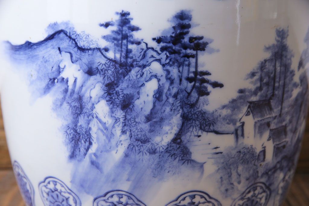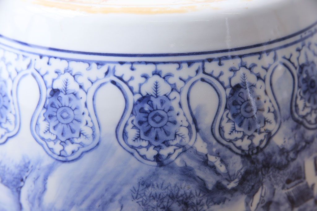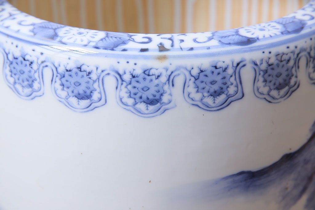 アンティーク雑貨 山水図 日本らしい雰囲気を高める瀬戸火鉢(鉢カバー)(1)