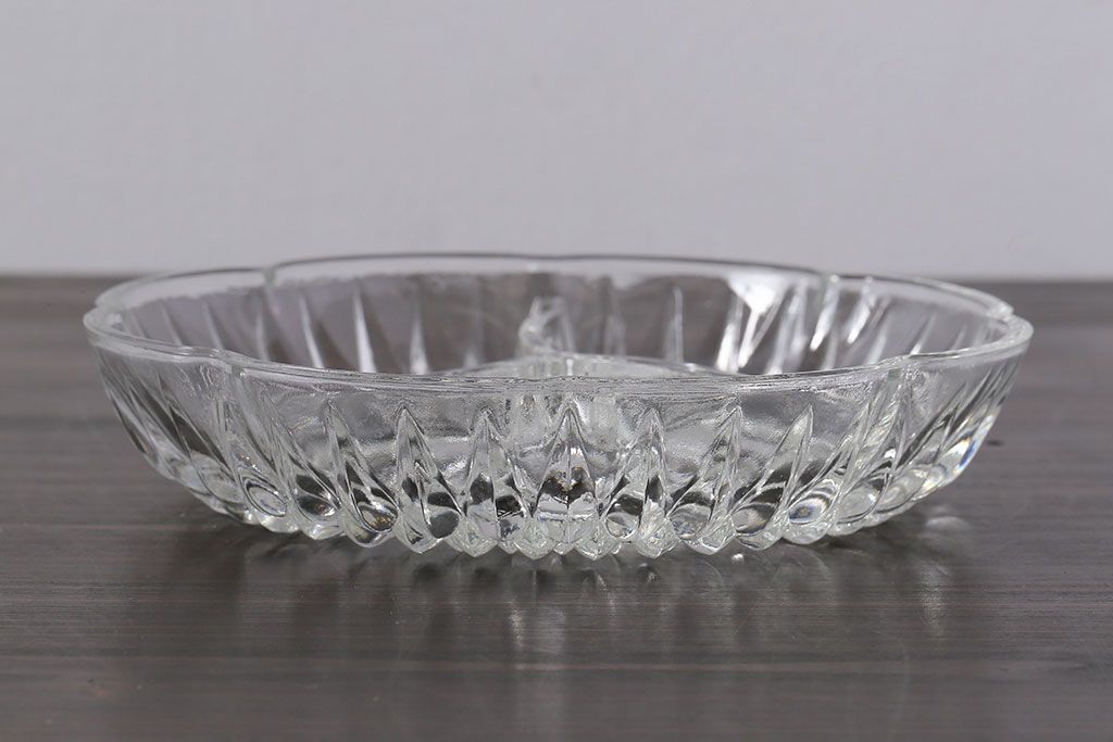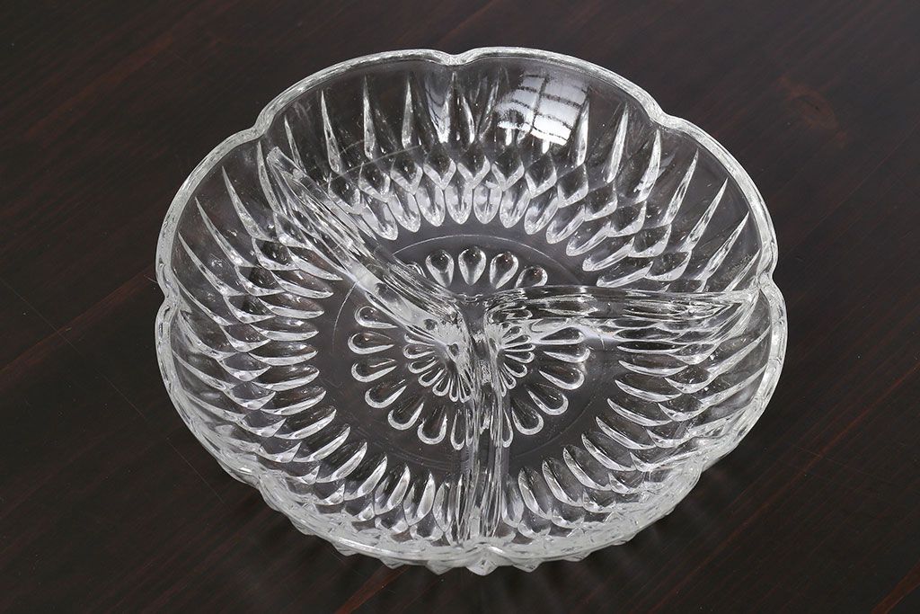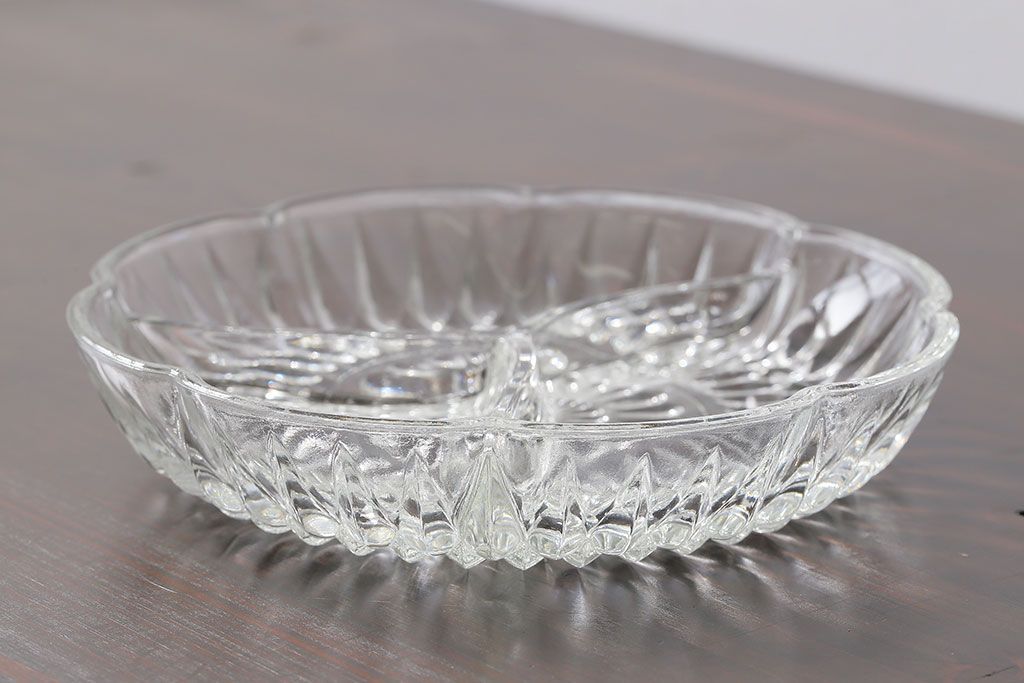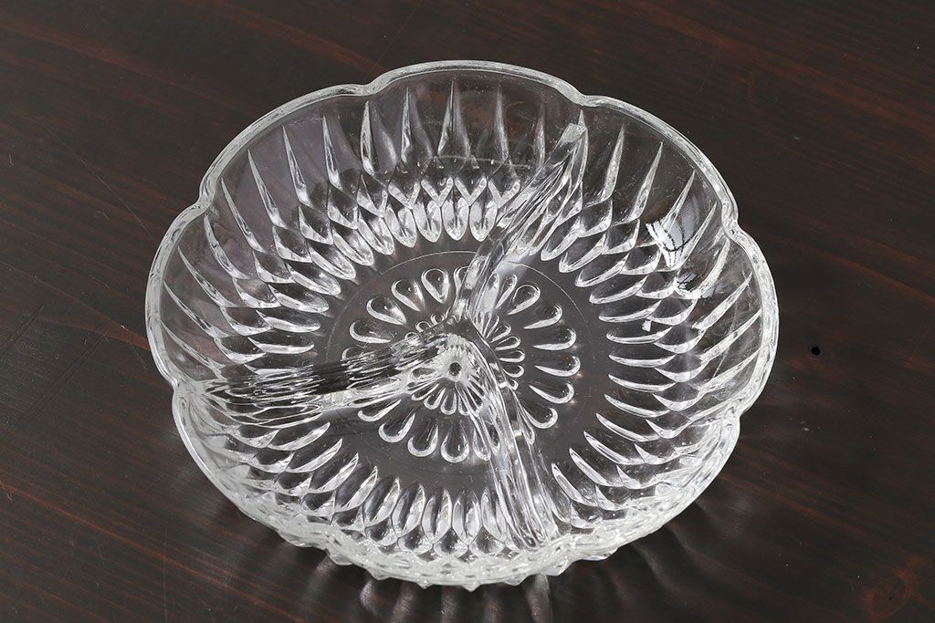 ラフジュ工房> 洋食器・キッチン用品> 皿・プレート > アンティーク雑貨 イギリス製 仕切り付きのデザインが魅力のキャンディプレート(小皿、プレスガラス)