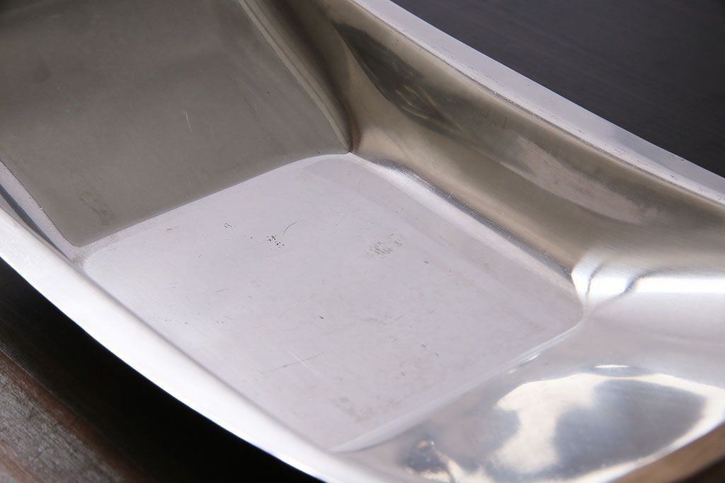 ラフジュ工房> 洋食器・キッチン用品> 皿・プレート > アンティーク雑貨 イギリスビンテージ 木製取っ手付き 舟形のデザインが魅力のステンレストレー(お盆)