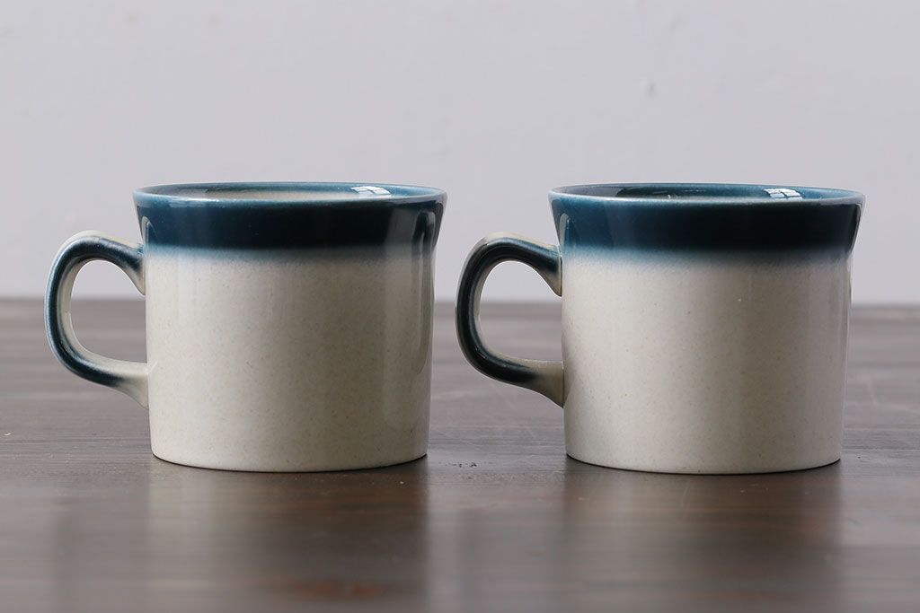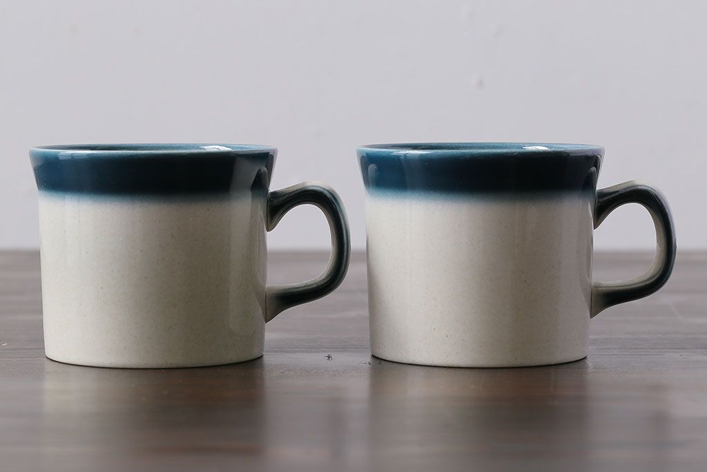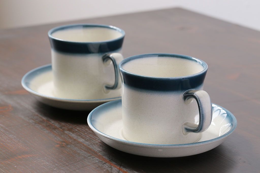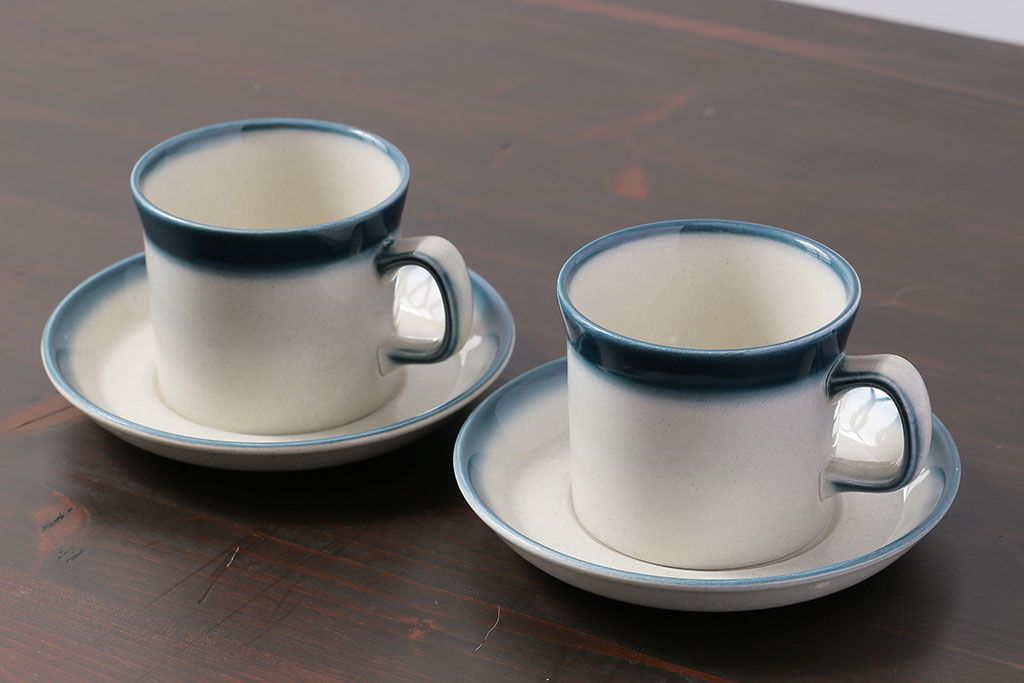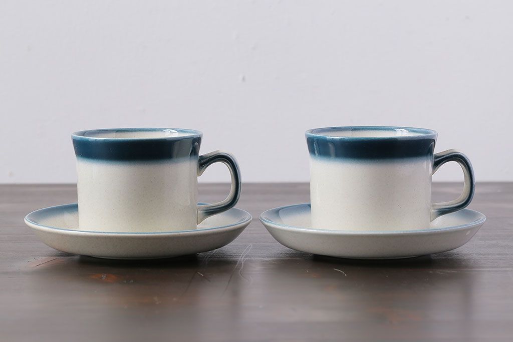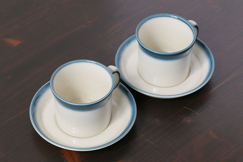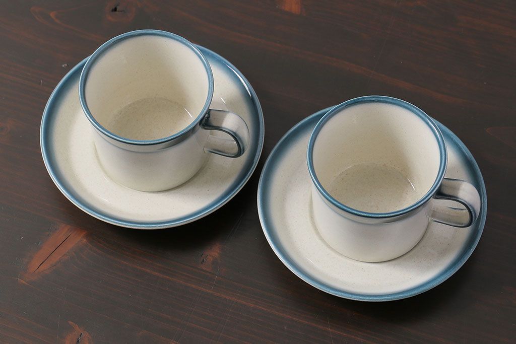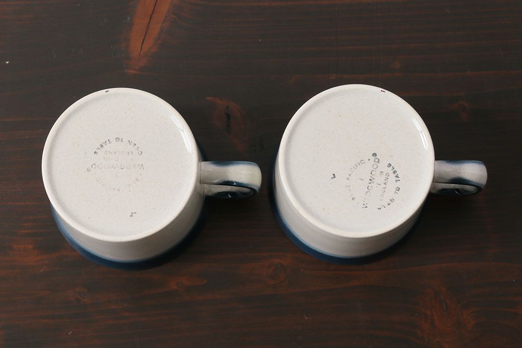 アンティーク雑貨 イギリスビンテージ WEDGWOOD(ウェッジウッド) BLUE PACIFIC(ブルーパシフィック) カップ&ソーサー(洋食器、コーヒーカップ)2客セット
