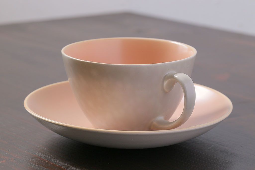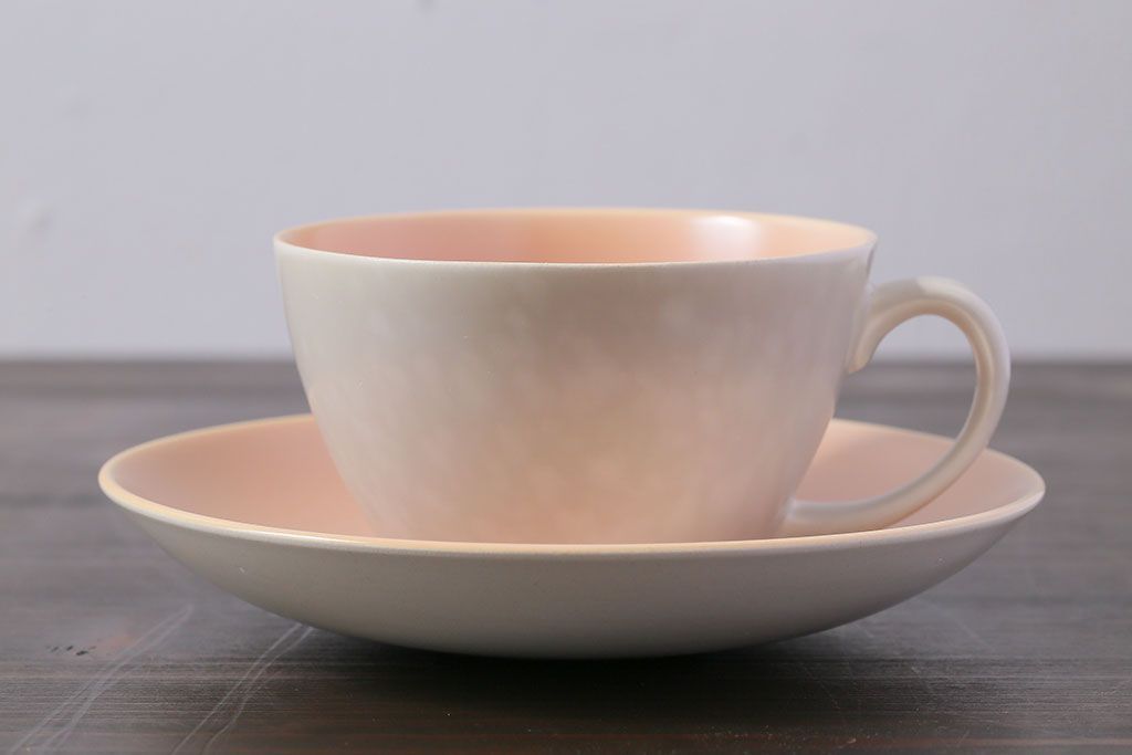 ラフジュ工房> 洋食器・キッチン用品> カップ&ソーサー > イギリスビンテージ Poole Pottery(プール・ポタリー) Twintone(ツイントーン) Peach Bloom×Seagull カップ&ソーサー