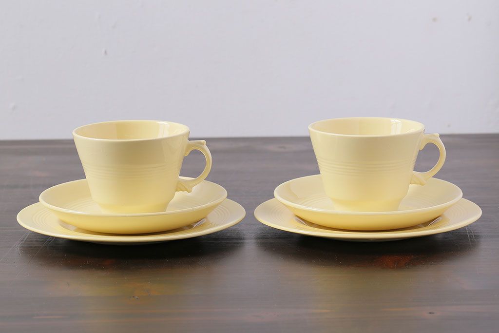 アンティーク雑貨 イギリスビンテージ Woods ware(ウッズウエア) Jasmine(ジャスミン) レトロなトリオ2客セット