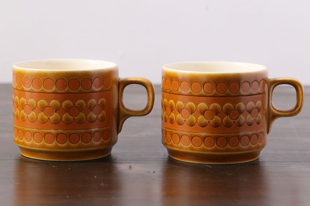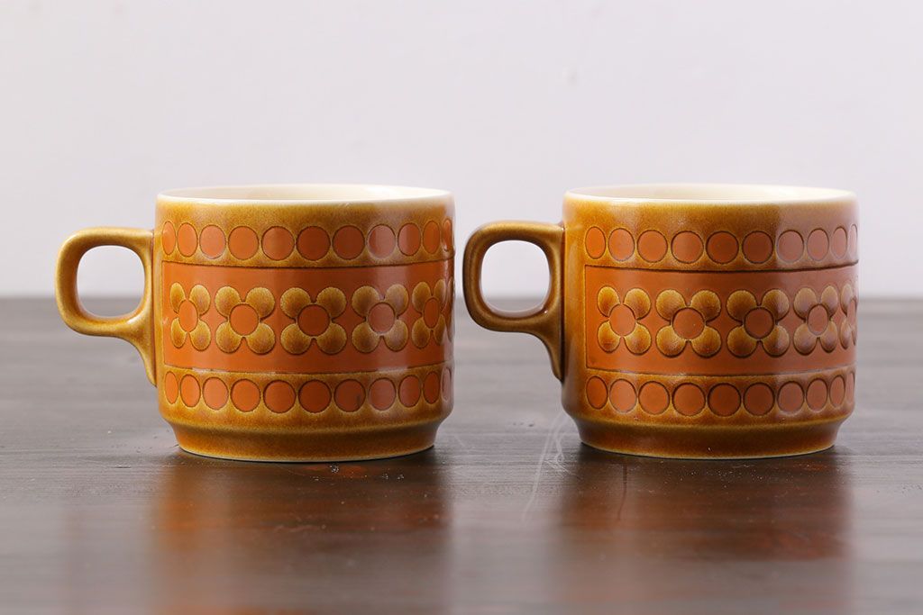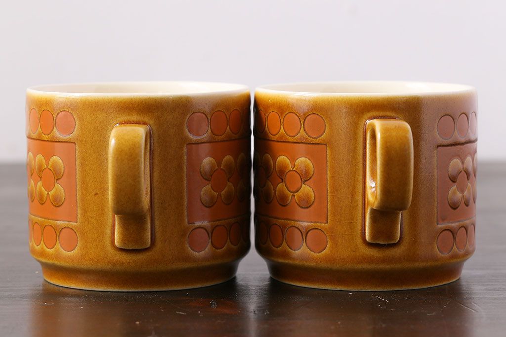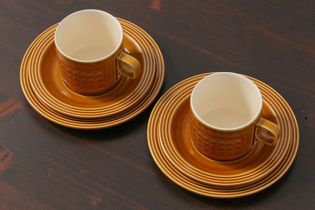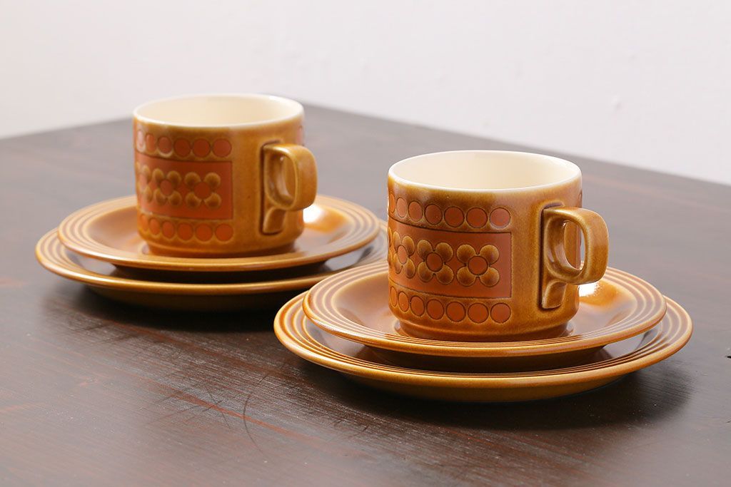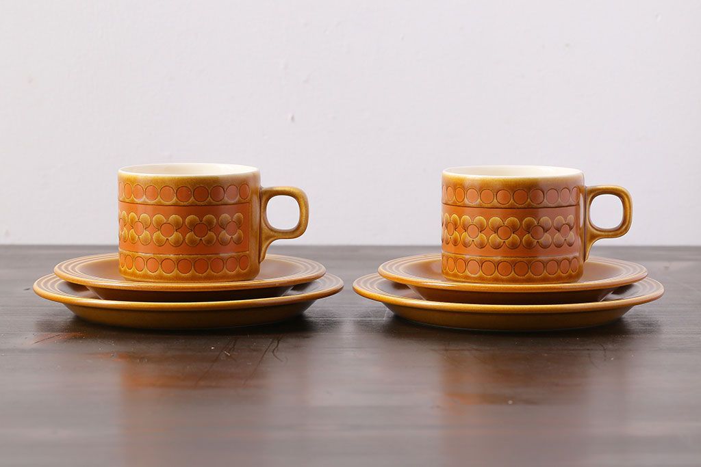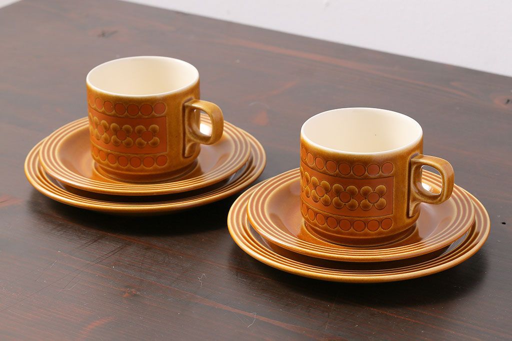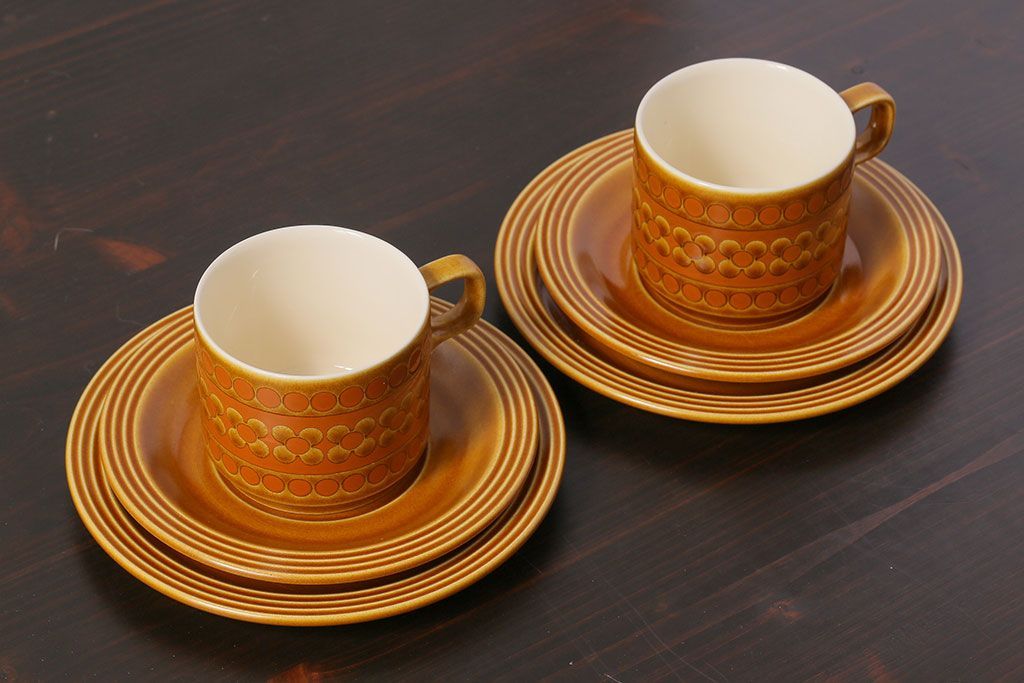 アンティーク雑貨 イギリスビンテージ HORNSEA(ホーンジー) Saffron(サフラン) レトロでかわいらしいトリオ2客セット(1)