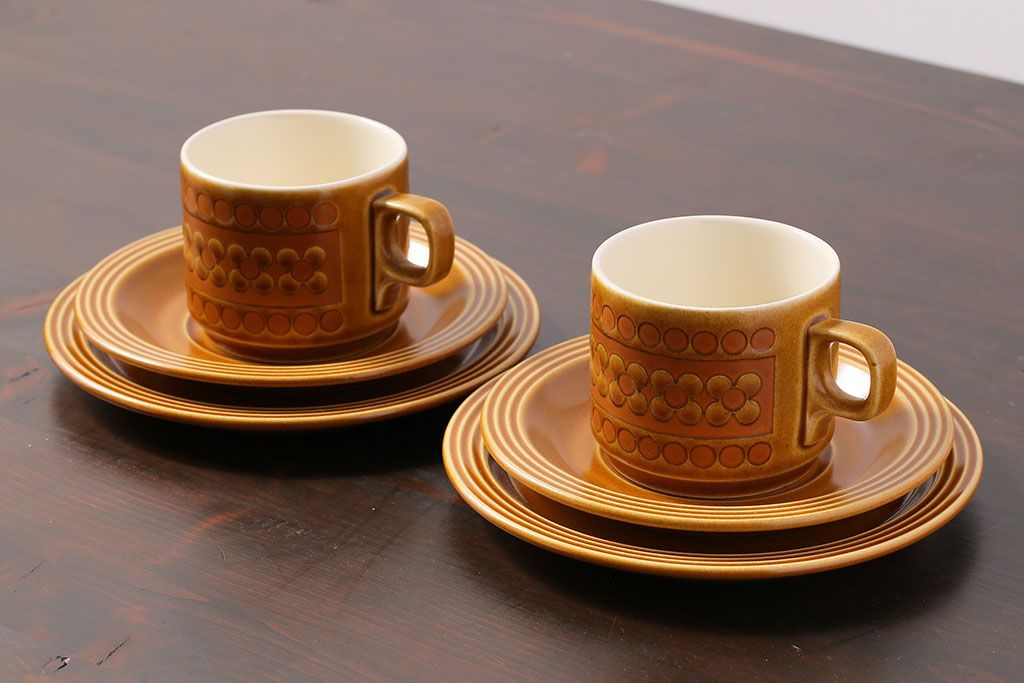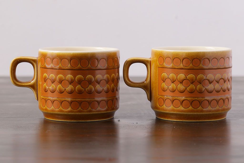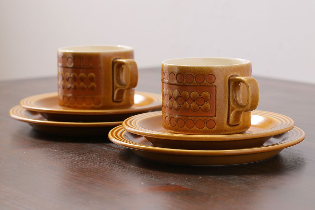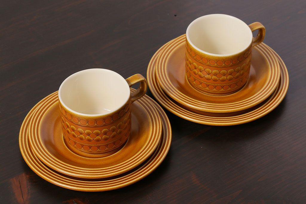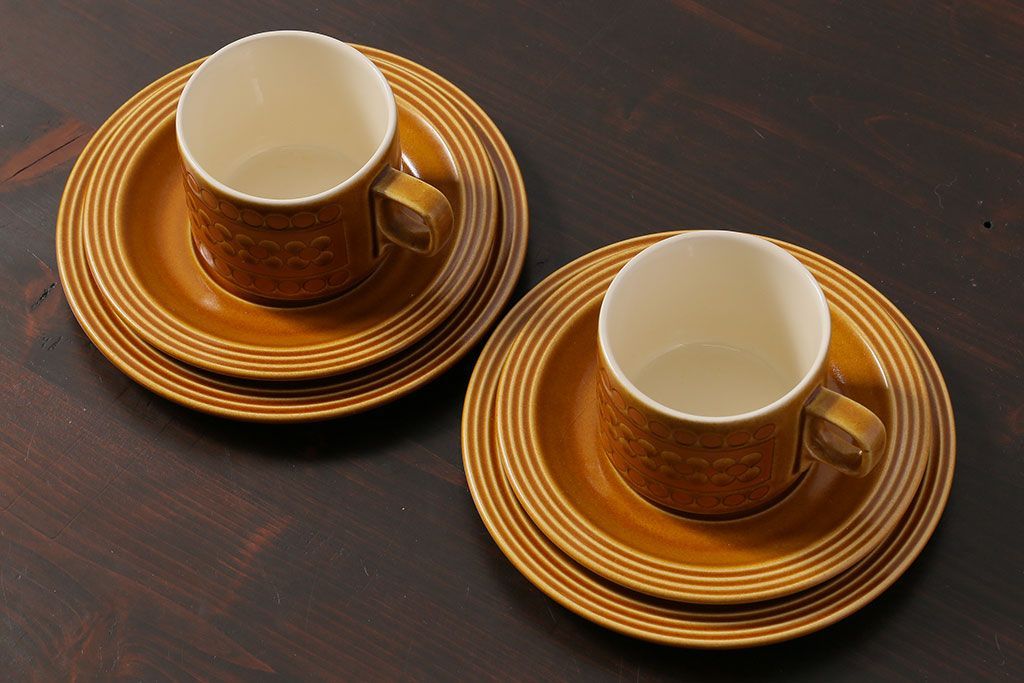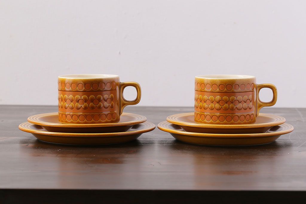 アンティーク雑貨 イギリスビンテージ HORNSEA(ホーンジー) Saffron(サフラン) レトロでかわいらしいトリオ2客セット(2)