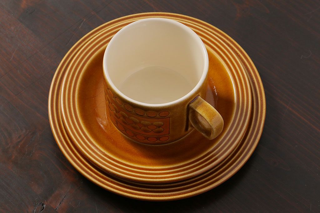 イギリスビンテージ HORNSEA(ホーンジー) Saffron(サフラン) レトロでかわいらしいトリオ1客です。