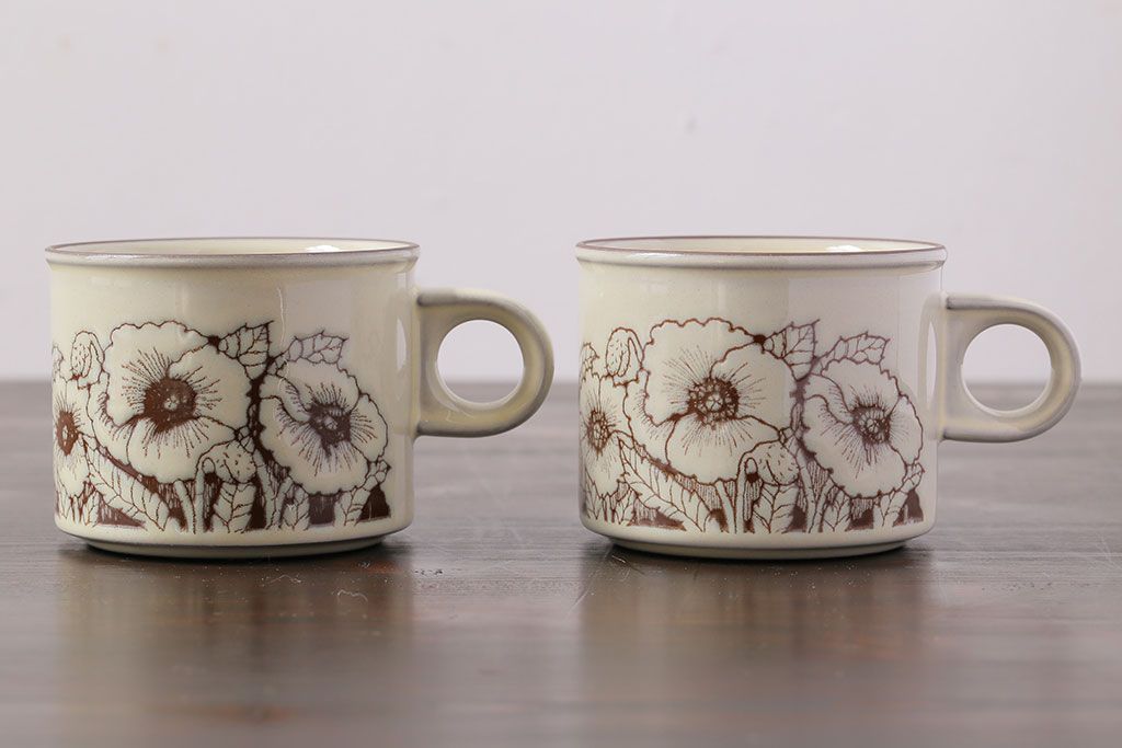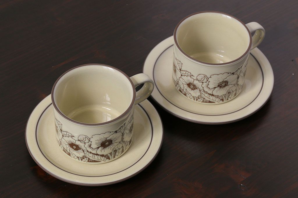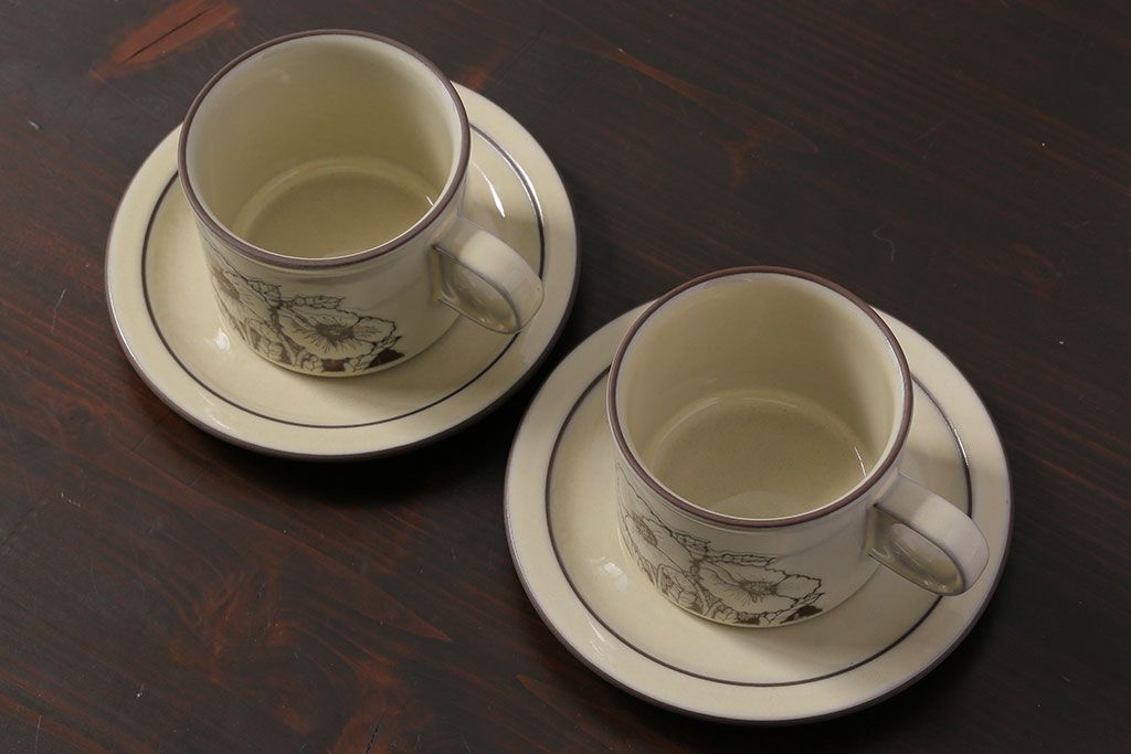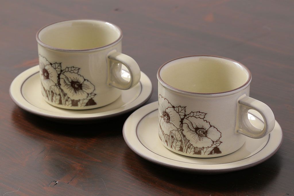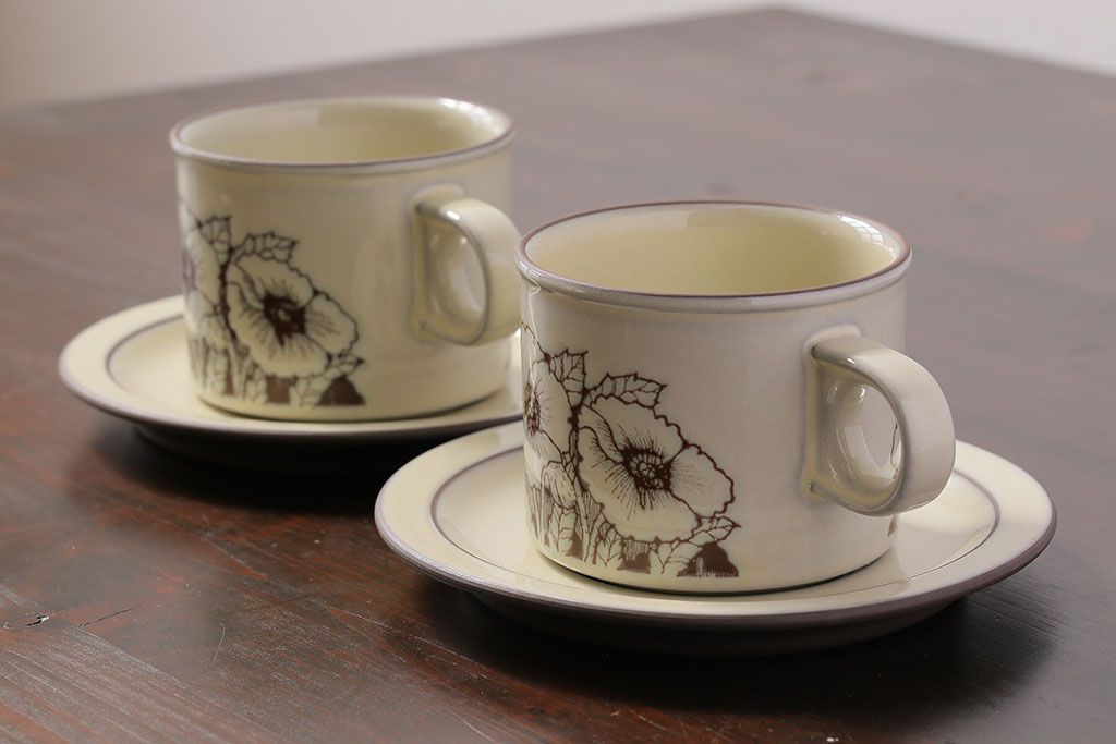 アンティーク雑貨 イギリスビンテージ HORNSEA(ホーンジー) Cornrose(コーンローズ) カップ&ソーサー2客セット(1)