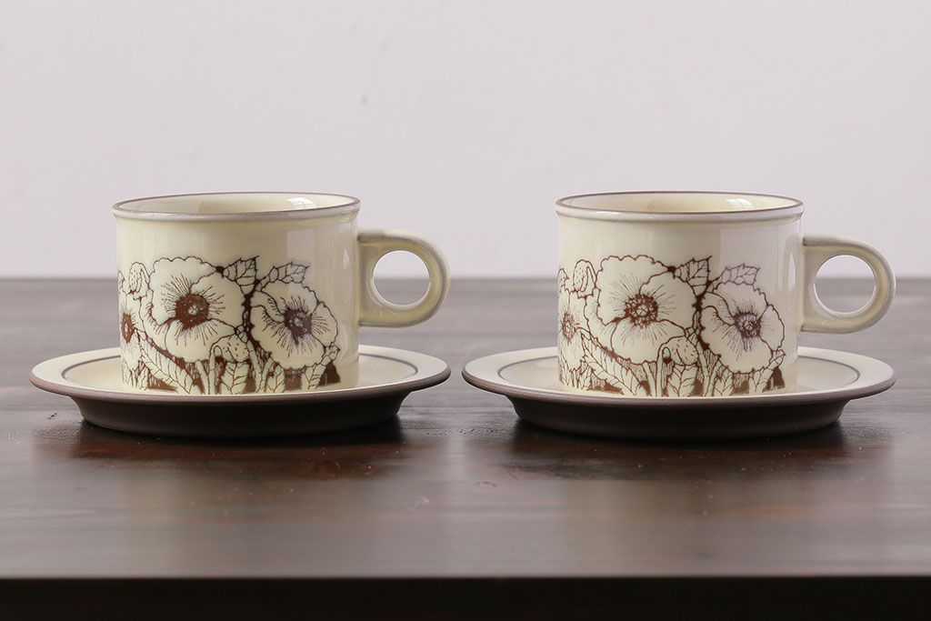 ラフジュ工房> 洋食器・キッチン用品> 皿・プレート > アンティーク雑貨 イギリスビンテージ HORNSEA(ホーンジー) Cornrose(コーンローズ) カップ&ソーサー2客セット(1)