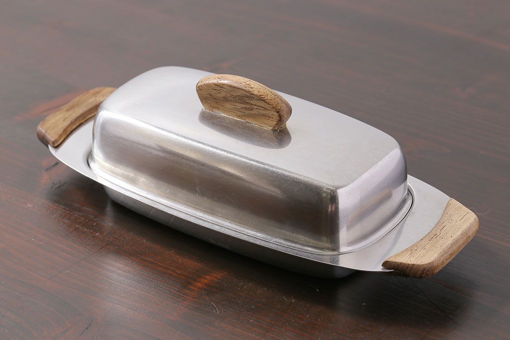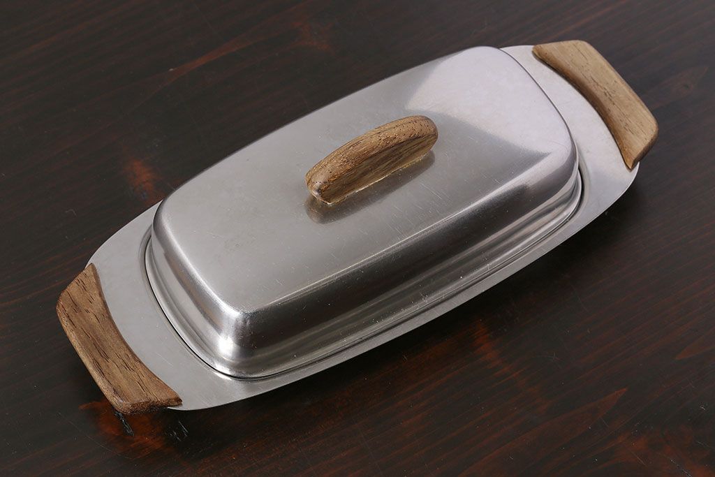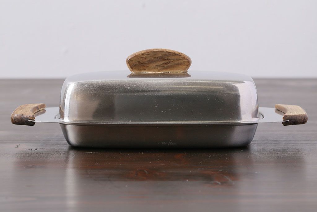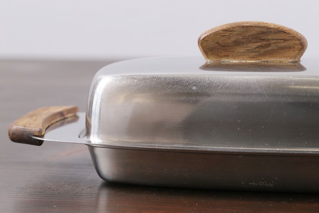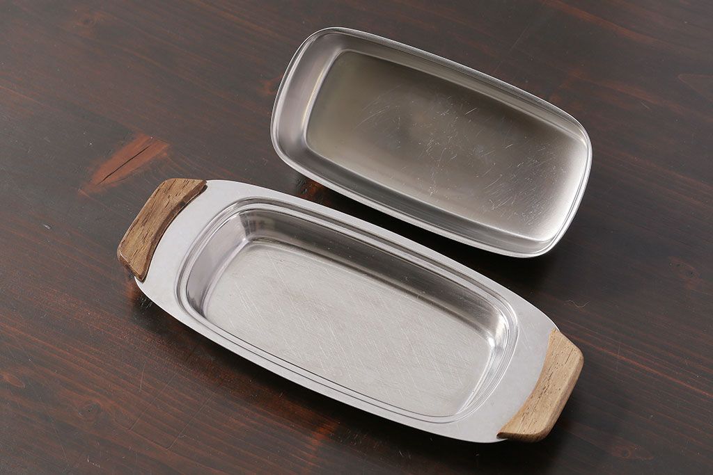 ラフジュ工房> 洋食器・キッチン用品> トレー > イギリスビンテージ 丸みを帯びたつまみが可愛らしい蓋付き長皿(トレー)