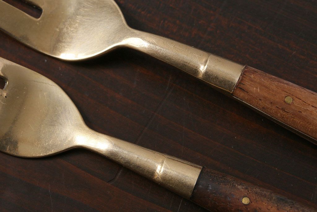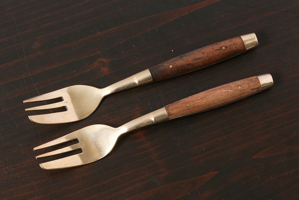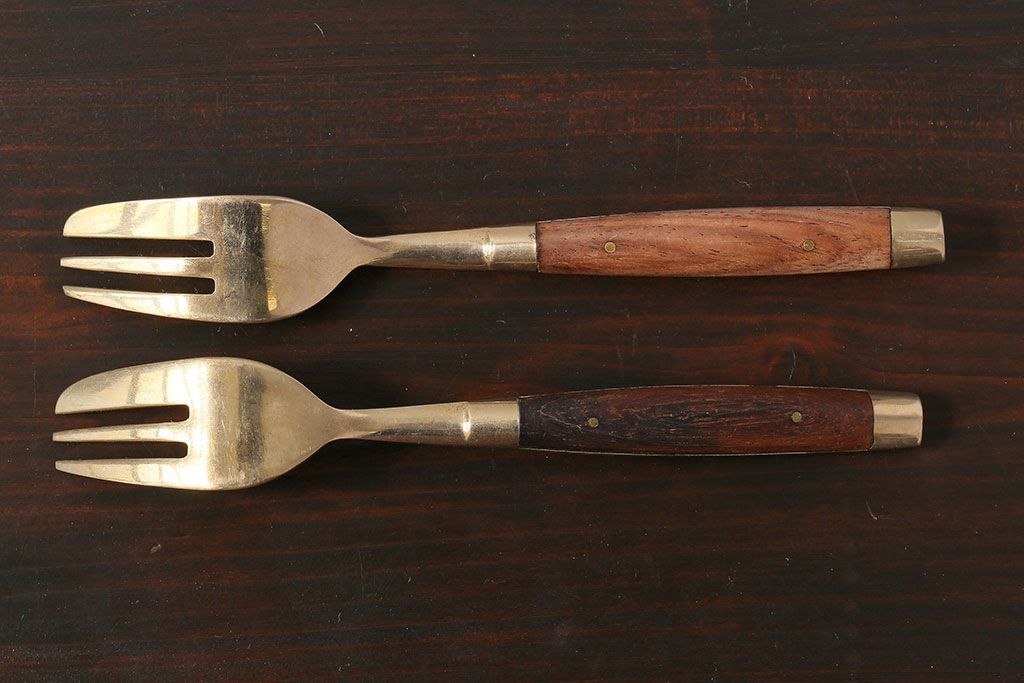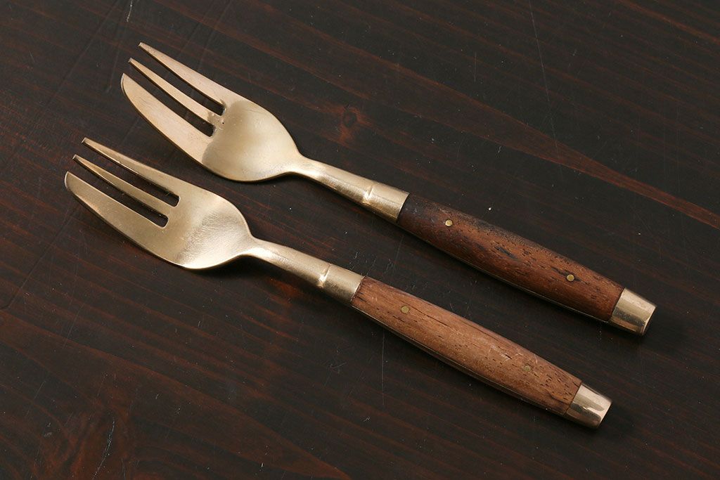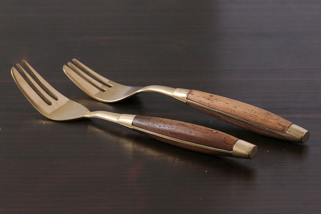 イギリスビンテージ 味のある木製持ち手のフォーク(カトラリー)2本セット
