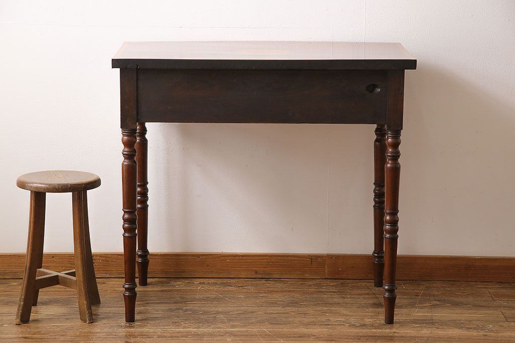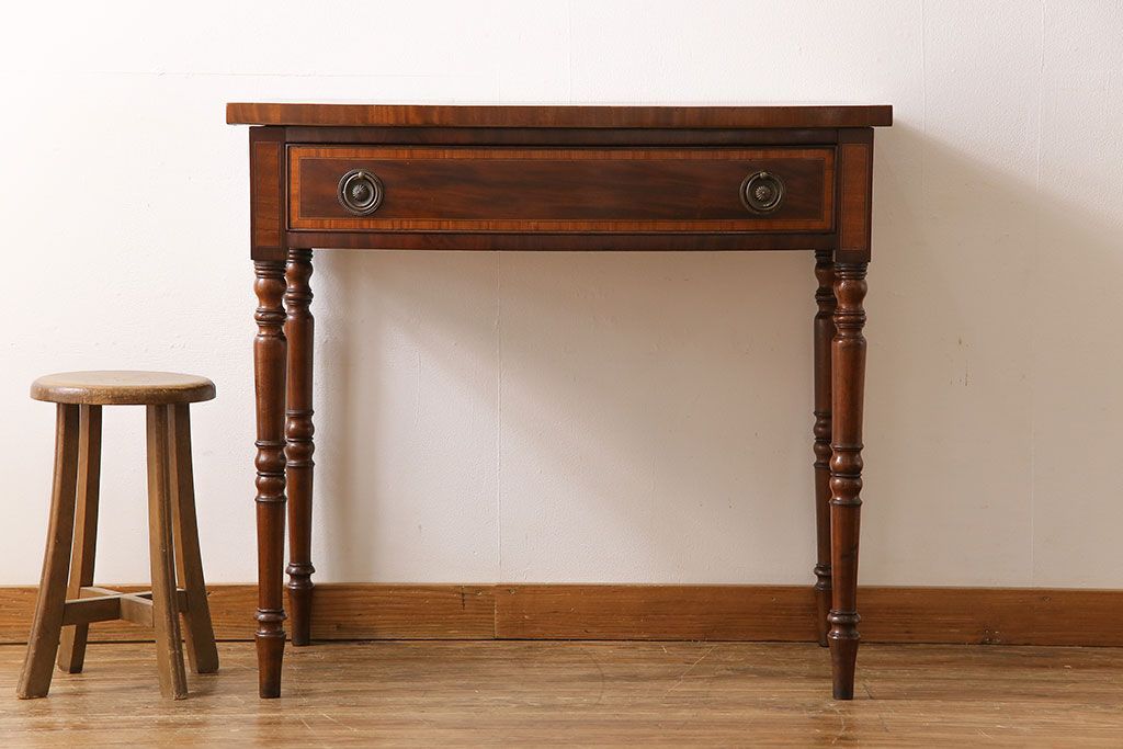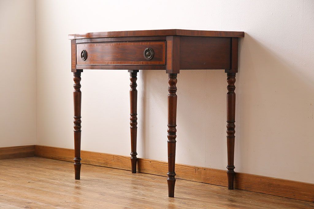 ラフジュ工房> テーブル> サイドテーブル > アンティーク家具 イギリスアンティーク ウォールナット材 クラシカルなコンソールテーブル(引き出し、飾り台、サイドテーブル)