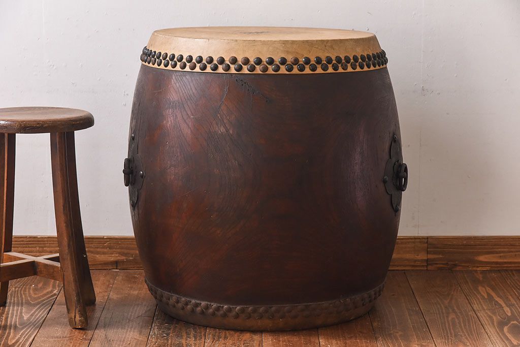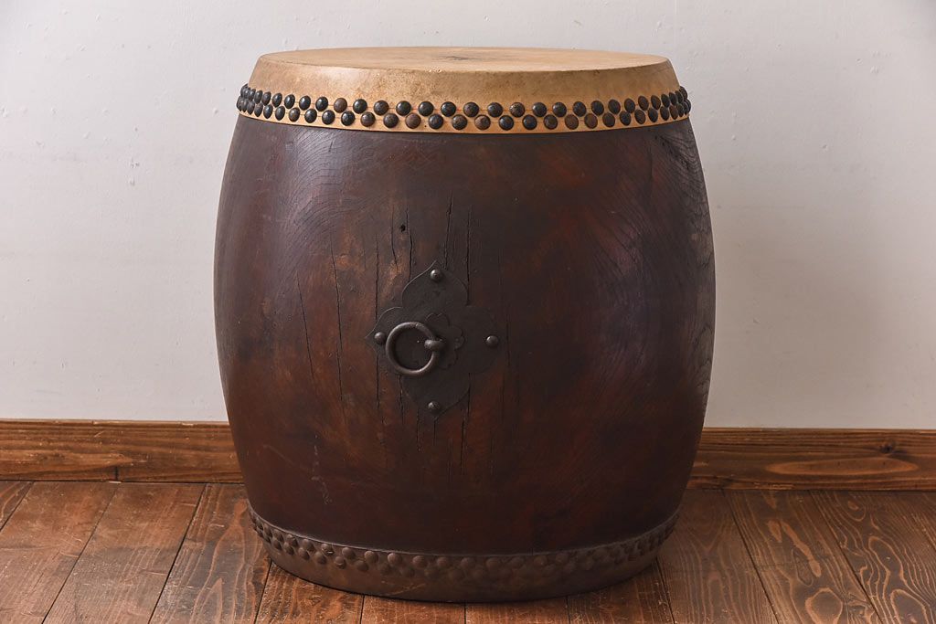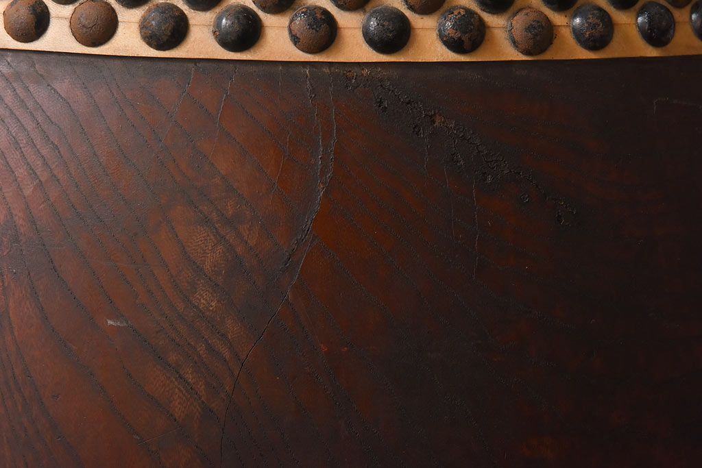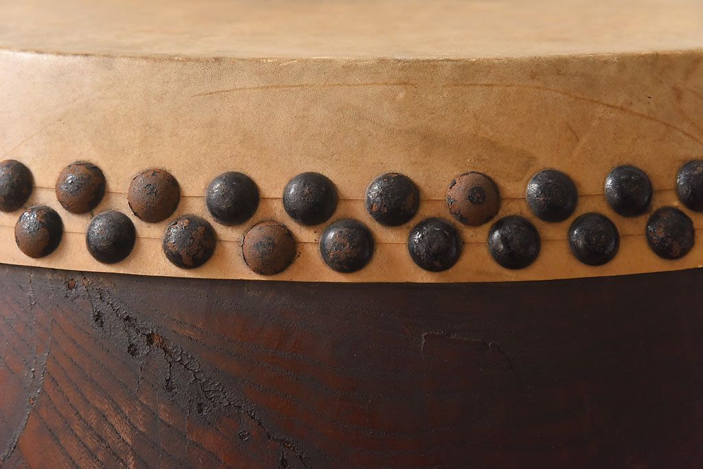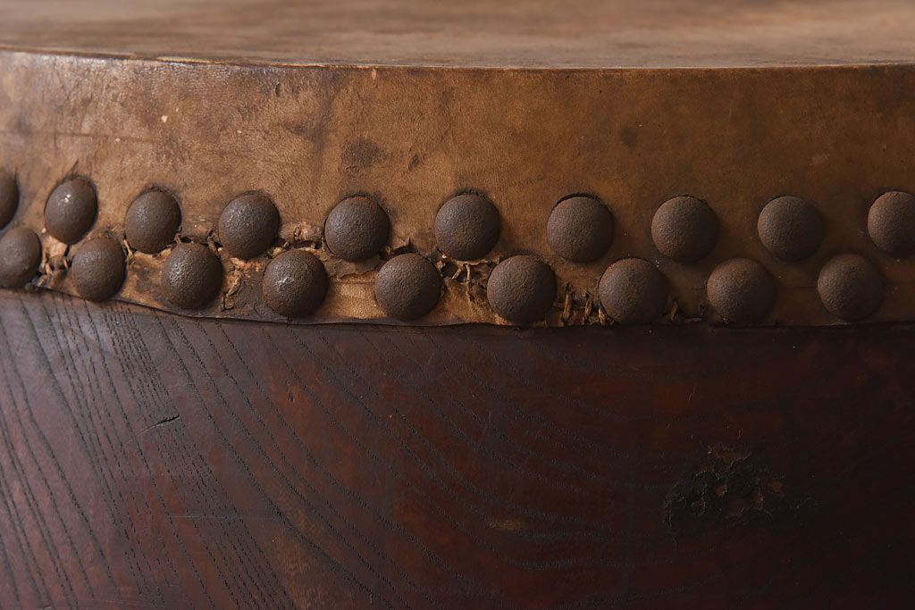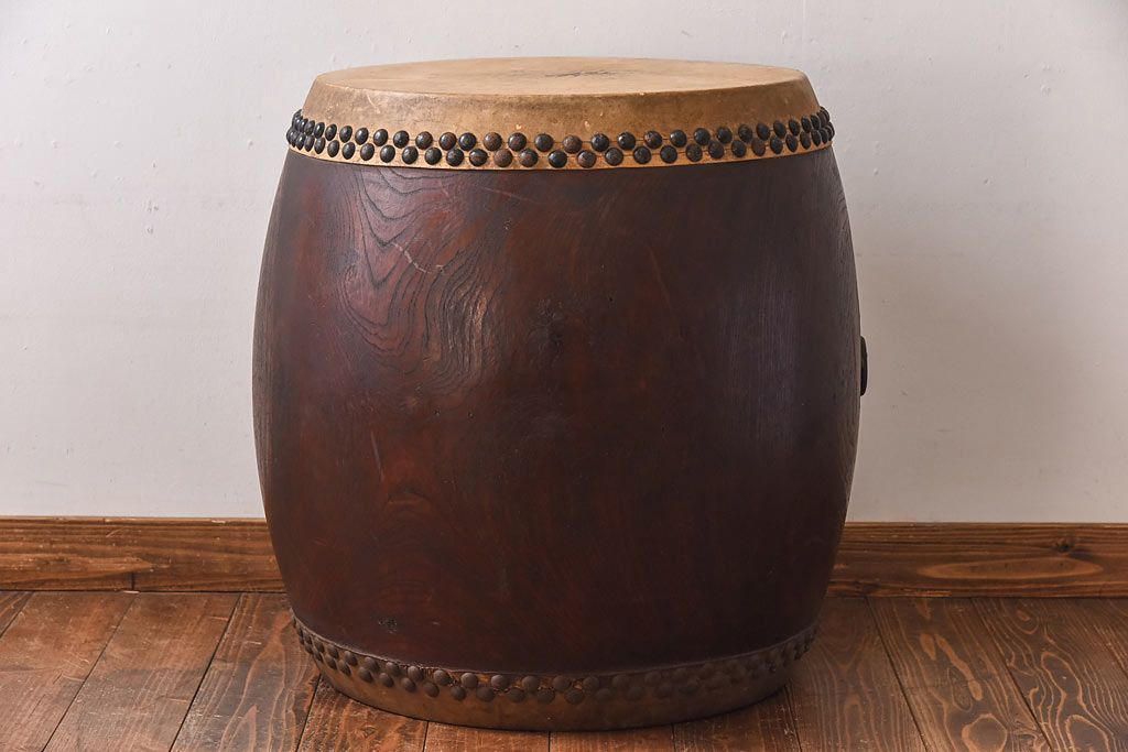 ラフジュ工房> 骨董・美術品> 和楽器 > アンティーク雑貨 時代物 欅刳り貫き胴 明治大正期の和太鼓(1尺6寸)
