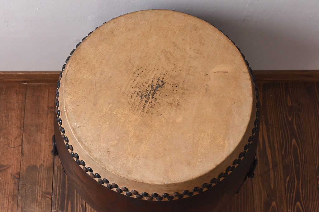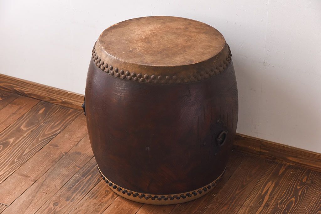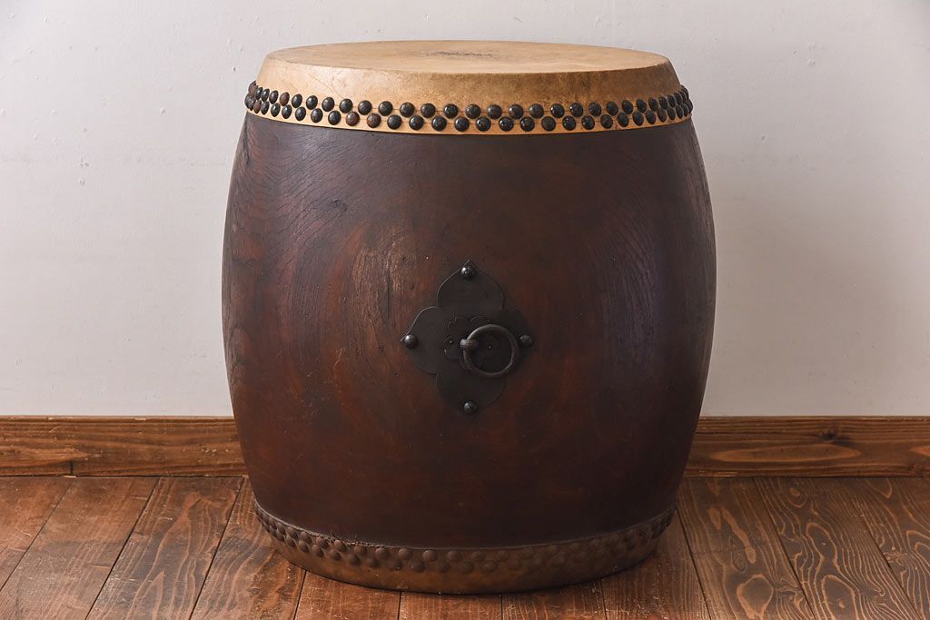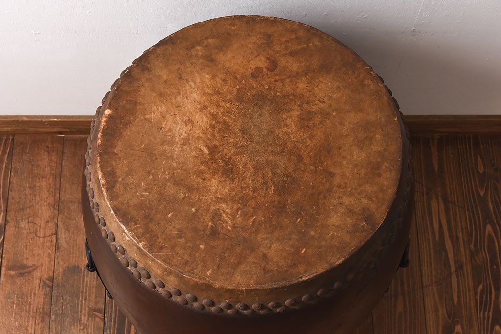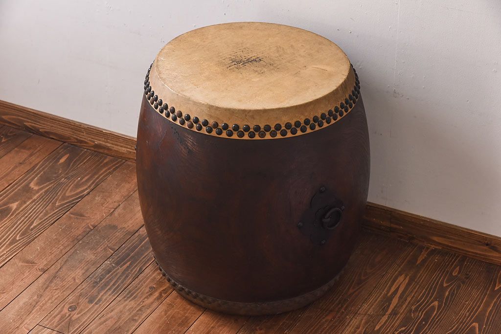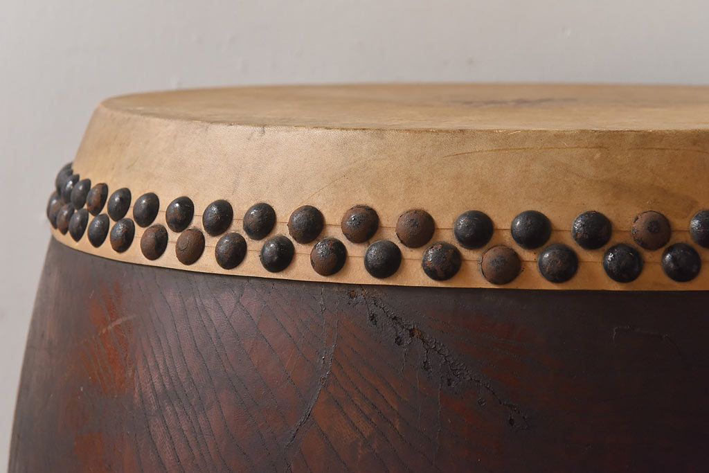 ラフジュ工房> 骨董・美術品> 和楽器 > アンティーク雑貨 時代物 欅刳り貫き胴 明治大正期の和太鼓(1尺6寸)