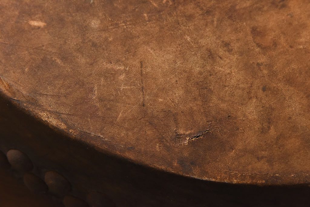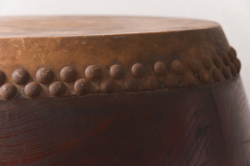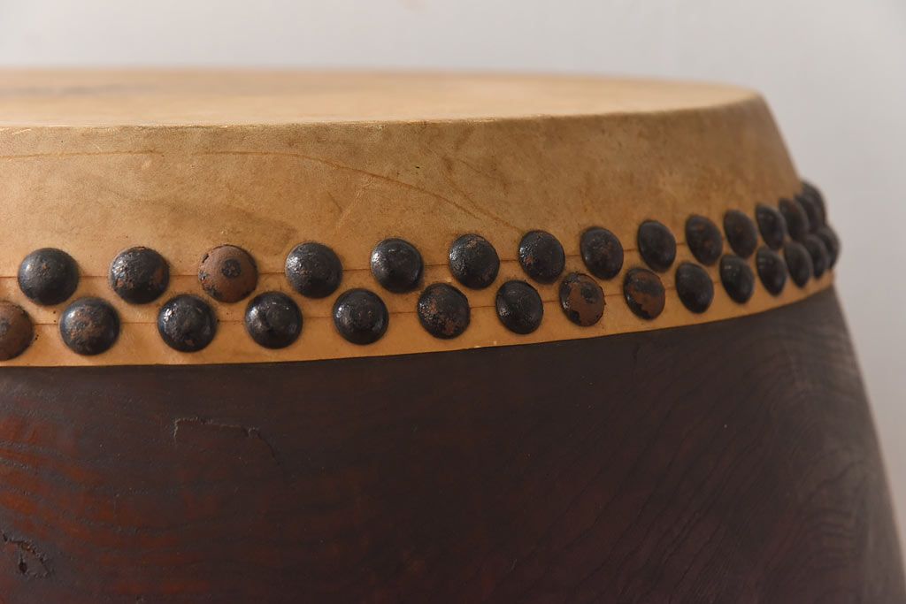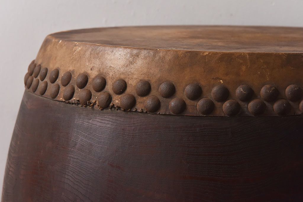 ラフジュ工房> 骨董・美術品 > アンティーク雑貨 時代物 欅刳り貫き胴 明治大正期の和太鼓(1尺6寸)