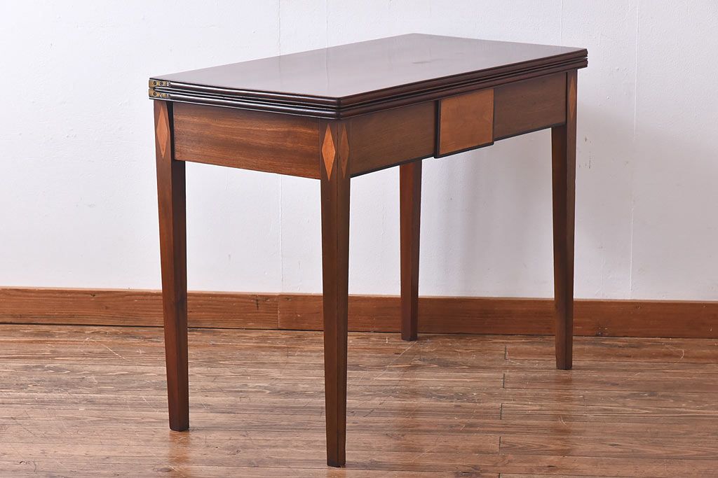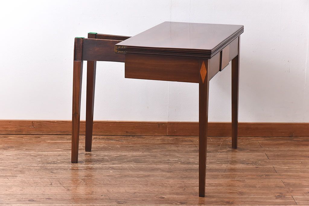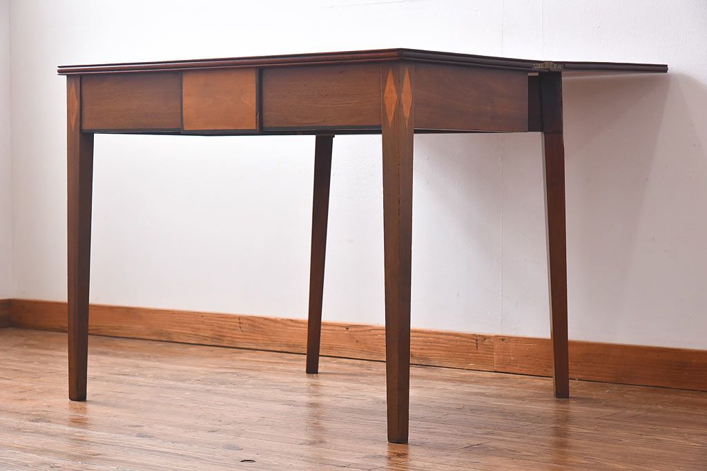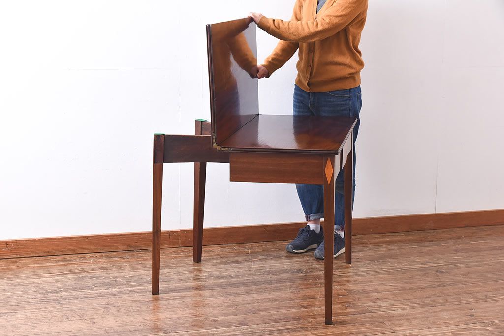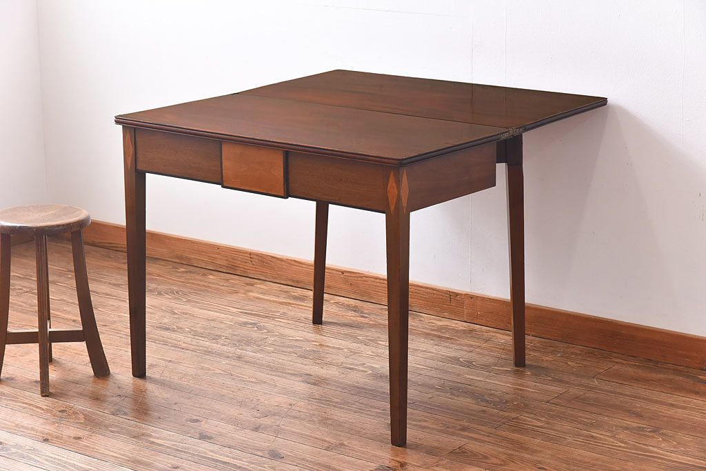 アンティーク家具 アンティーク マホガニー材 象嵌がお洒落なサイドテーブル(コンソールテーブル 、折りたたみ机)