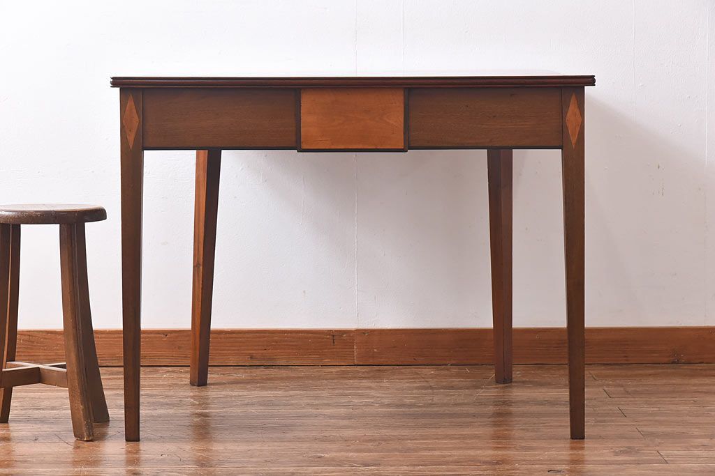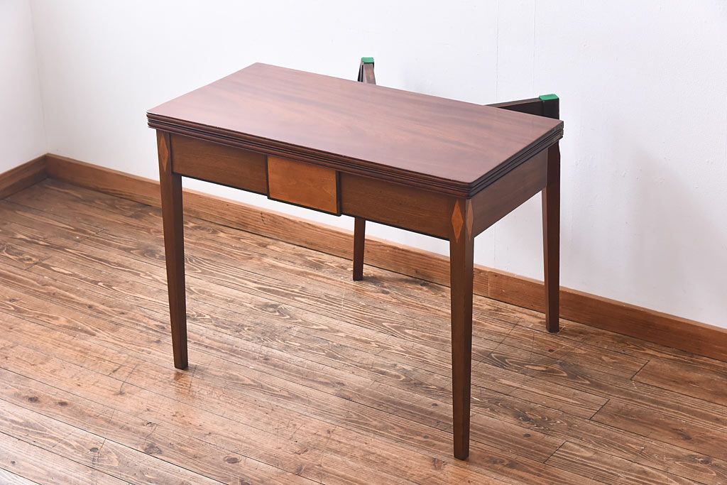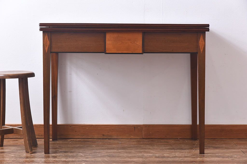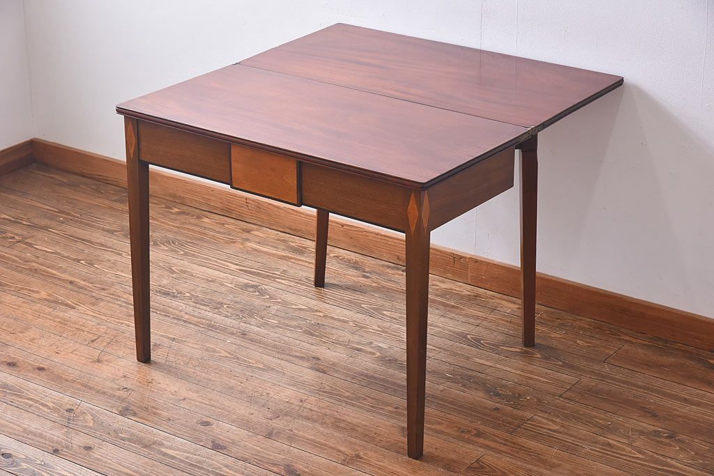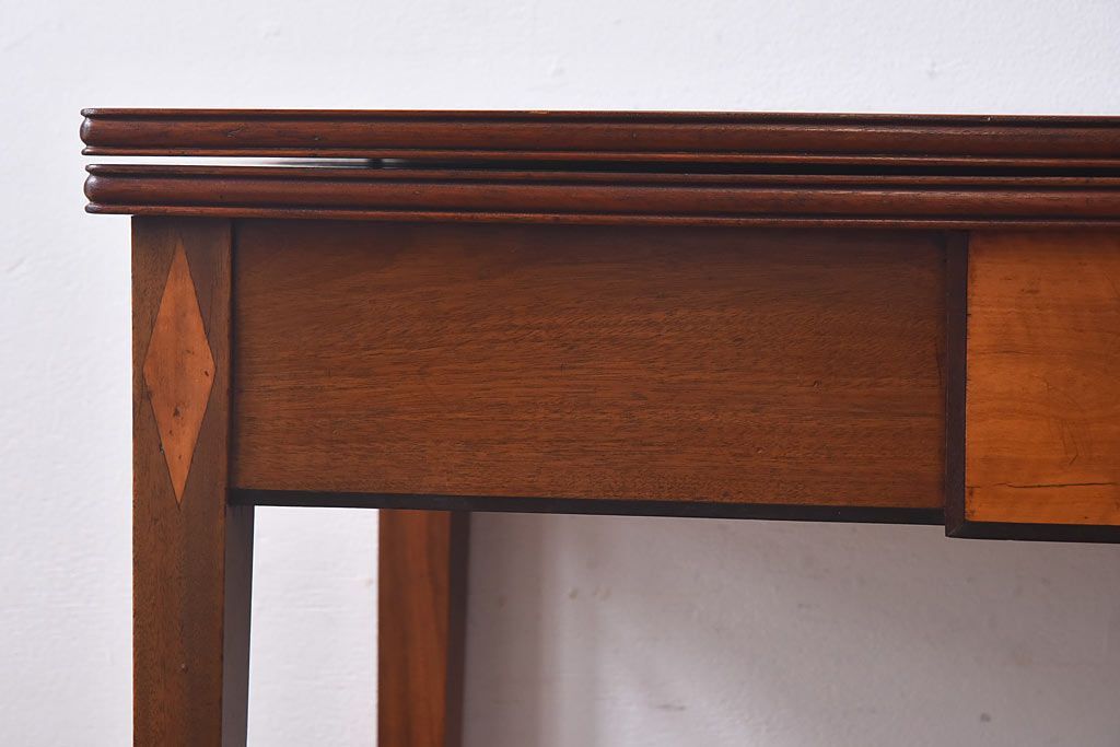 アンティーク家具 アンティーク マホガニー材 象嵌がお洒落なサイドテーブル(コンソールテーブル 、折りたたみ机)