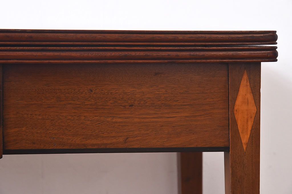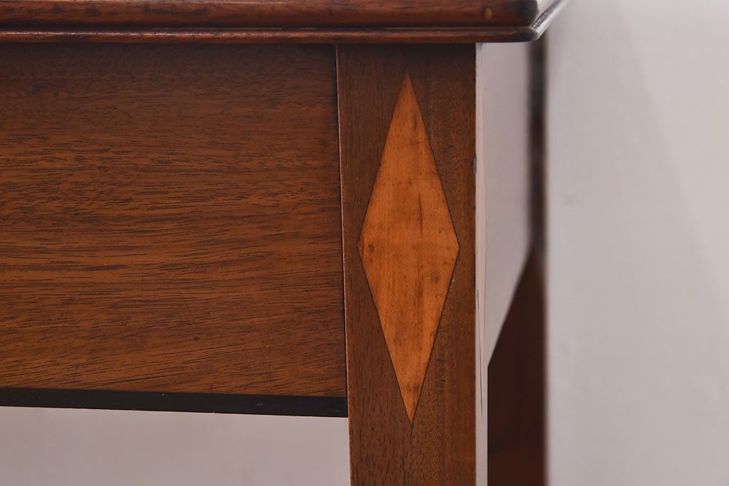 ラフジュ工房> テーブル> サイドテーブル > アンティーク家具 アンティーク マホガニー材 象嵌がお洒落なサイドテーブル(コンソールテーブル 、折りたたみ机)