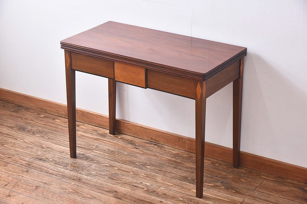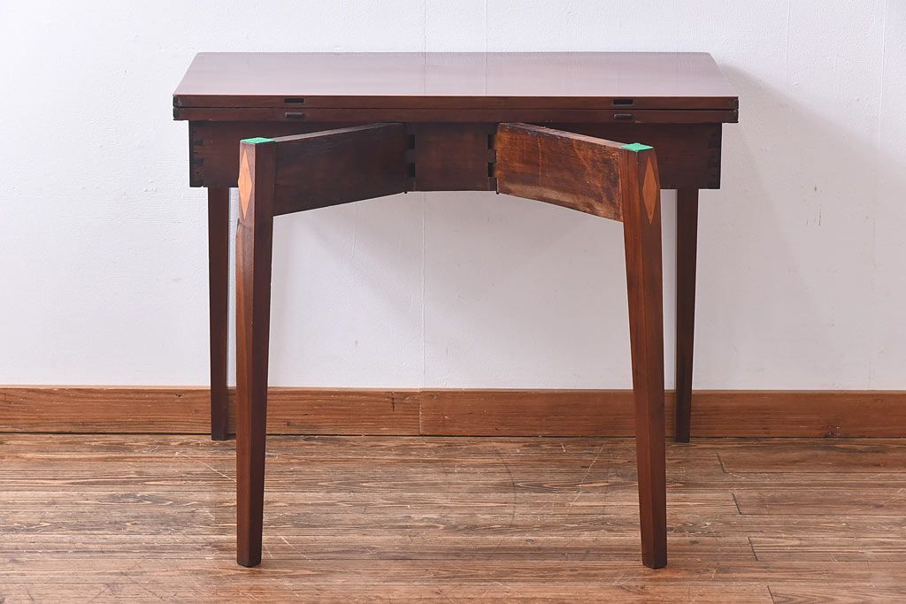 ラフジュ工房> テーブル> おりたたみテーブル > アンティーク家具 アンティーク マホガニー材 象嵌がお洒落なサイドテーブル(コンソールテーブル 、折りたたみ机)