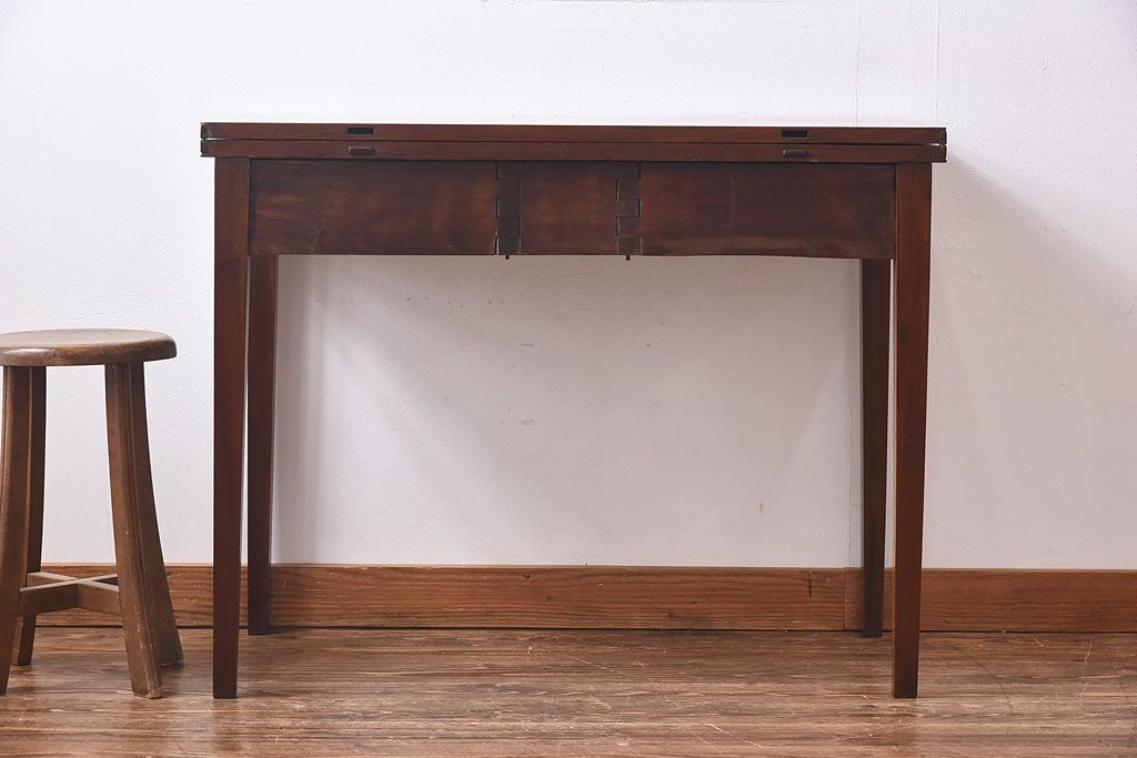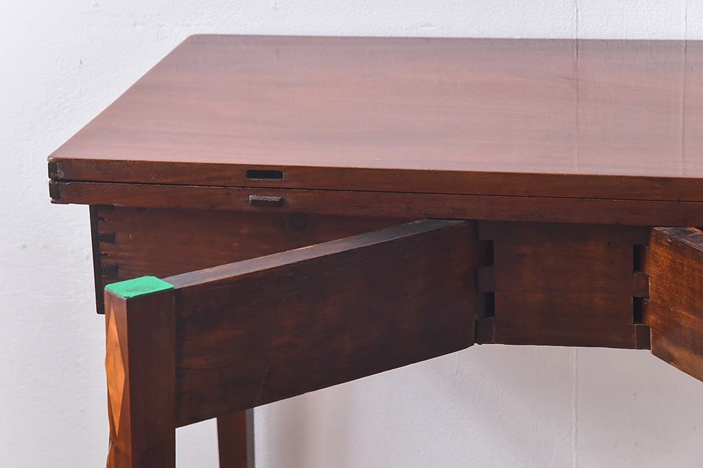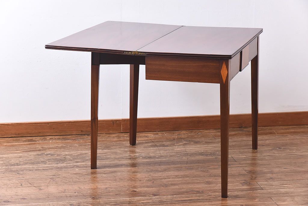 ラフジュ工房> テーブル> エクステンションテーブル > アンティーク家具 アンティーク マホガニー材 象嵌がお洒落なサイドテーブル(コンソールテーブル 、折りたたみ机)