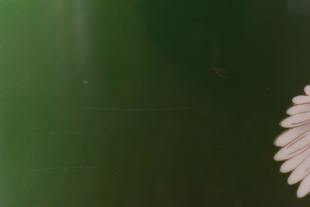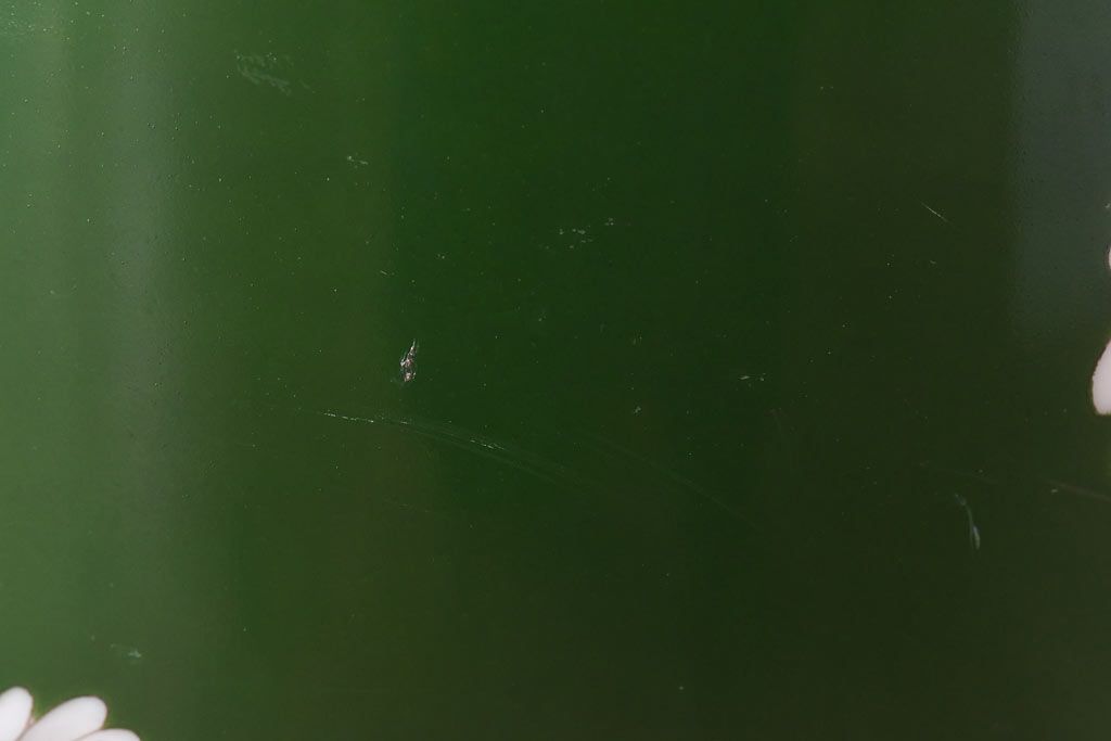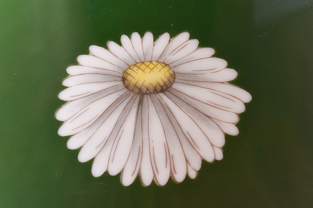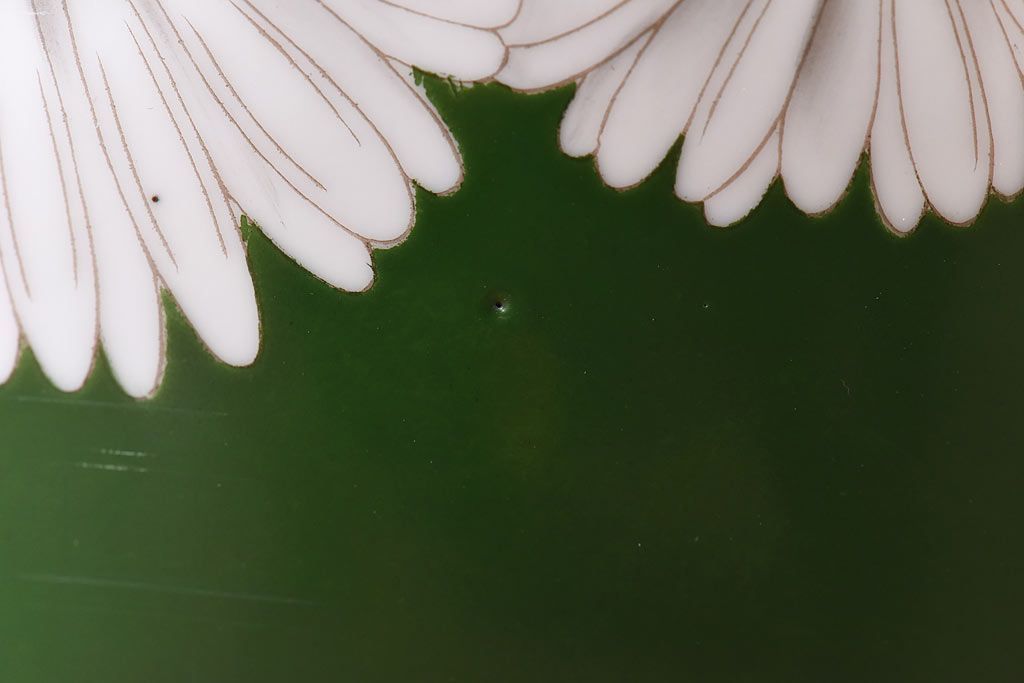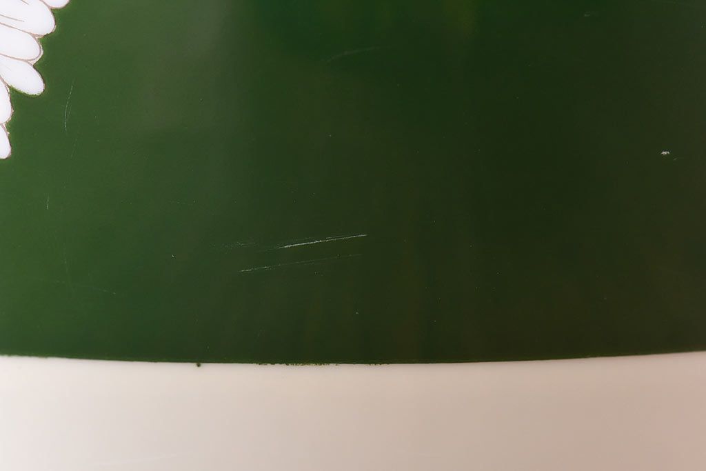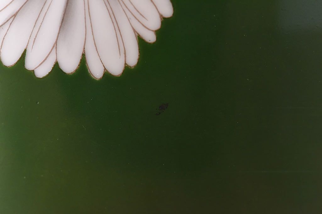 火鉢> 瀬戸火鉢 > アンティーク雑貨 オールドノリタケ・則武(日陶) 緑地 白菊文様 バイカラーがおしゃれな壱型火鉢(手あぶり、鉢カバー、傘立て)