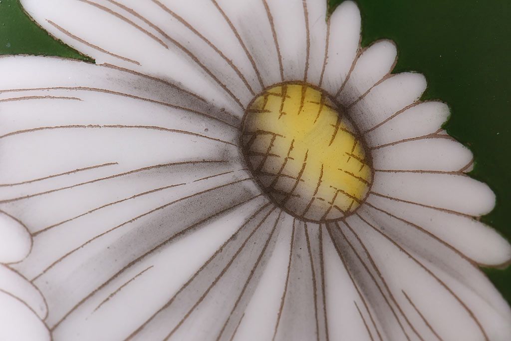 オールドノリタケ・則武(日陶) 緑地 白菊文様 バイカラーがおしゃれな壱型火鉢(手あぶり、鉢カバー、傘立て)です。