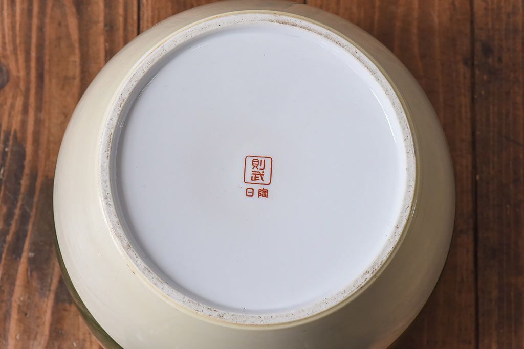 アンティーク雑貨 オールドノリタケ・則武(日陶) 緑地 白菊文様 バイカラーがおしゃれな壱型火鉢(手あぶり、鉢カバー、傘立て)