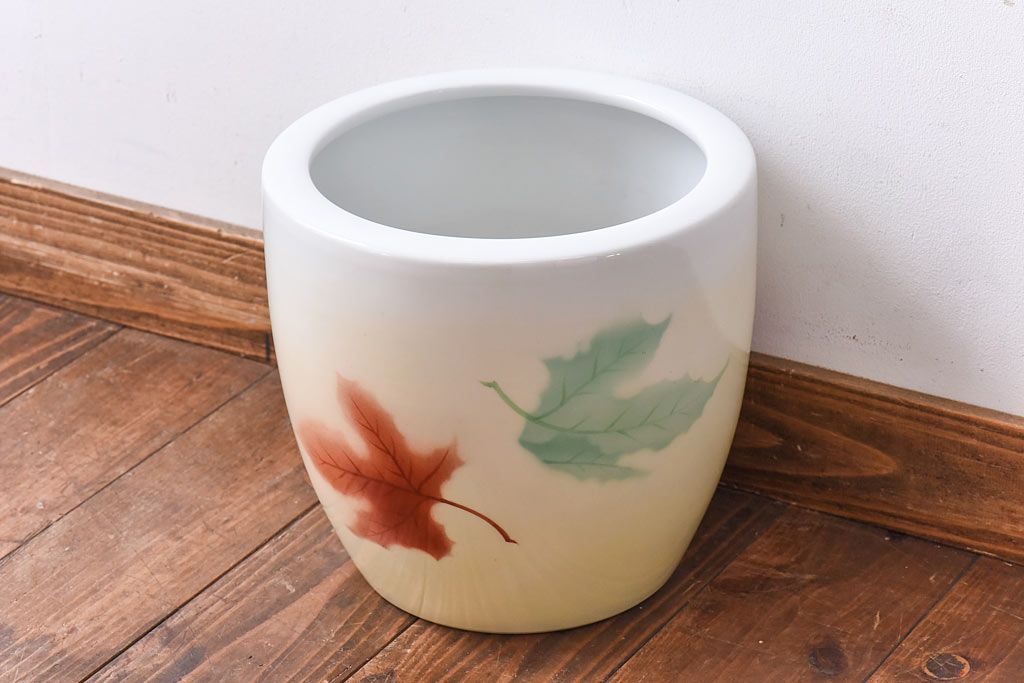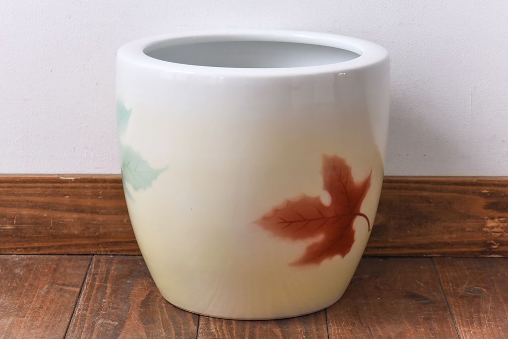 火鉢> 瀬戸火鉢 > アンティーク雑貨 ノリタケ・則武(日陶) 楓の図 シンプルなデザインの火鉢(手あぶり、鉢カバー)